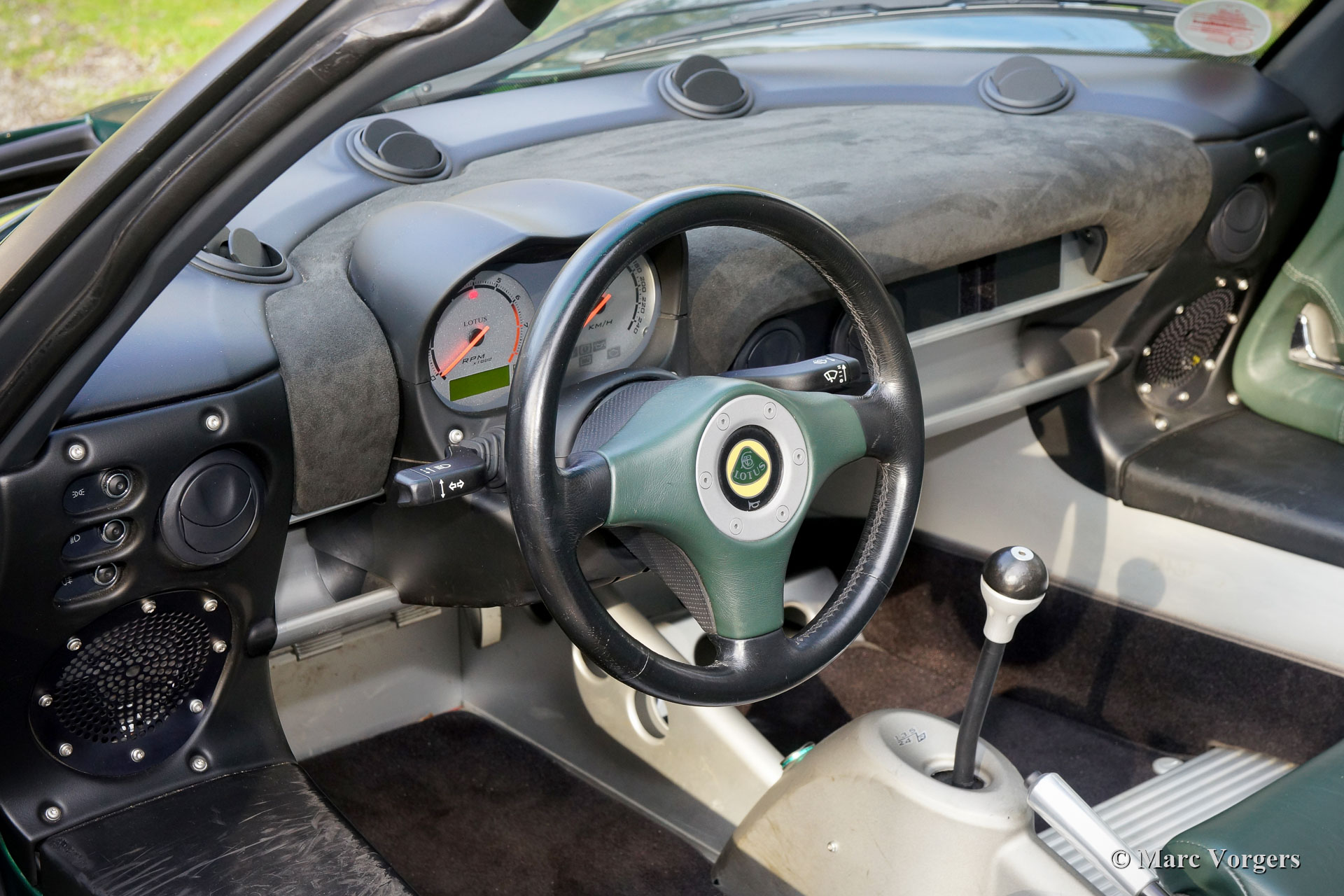 Lotus Elise 111S série 2, année 2003. Couleur vert foncé métallisé associé à un intérieur cuir / alcantara gris / vert foncé. Cette magnifique Lotus Elise à conduite à gauche (LHD) fut vendue neuve par Auto König à Munich, en Allemagne. Du nouveau cette voiture de sport légère et très attrayante a parcouru 46.000 kilomètres. La voiture vient d'un véritable enthousiaste, la voiture est très bien soignée et elle a fait l'objet d'un entretien ponctuel. Toutes les factures de service sont présentes. Cette belle Lotus Elise est en excellente état d'origine sans accident ! Les seules améliorations sont des amortisseurs spéciaux Öhlins. Cette voiture de sport agile et très légère de 160 ch est très excitante à conduire ! Le nouveau propriétaire aura le sourire aux lèvres tout en conduisant ce bijou !
