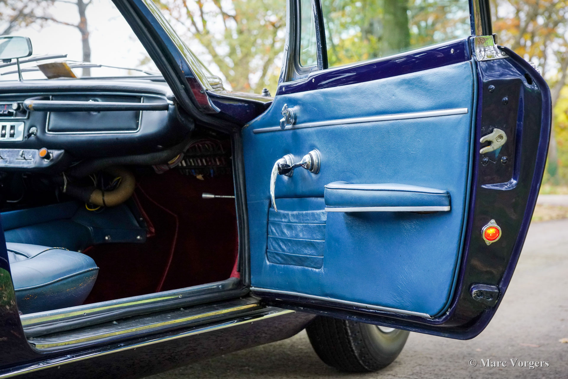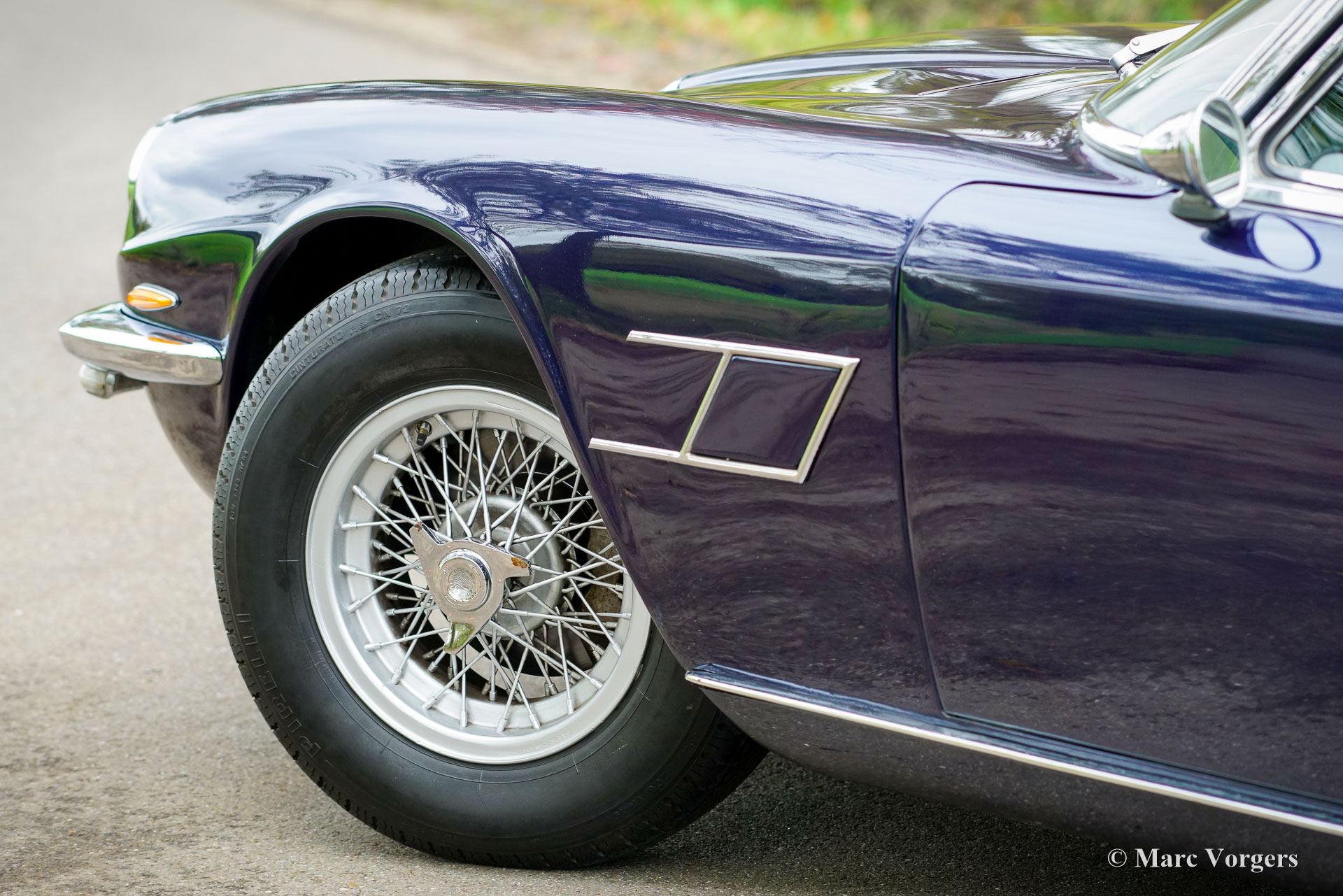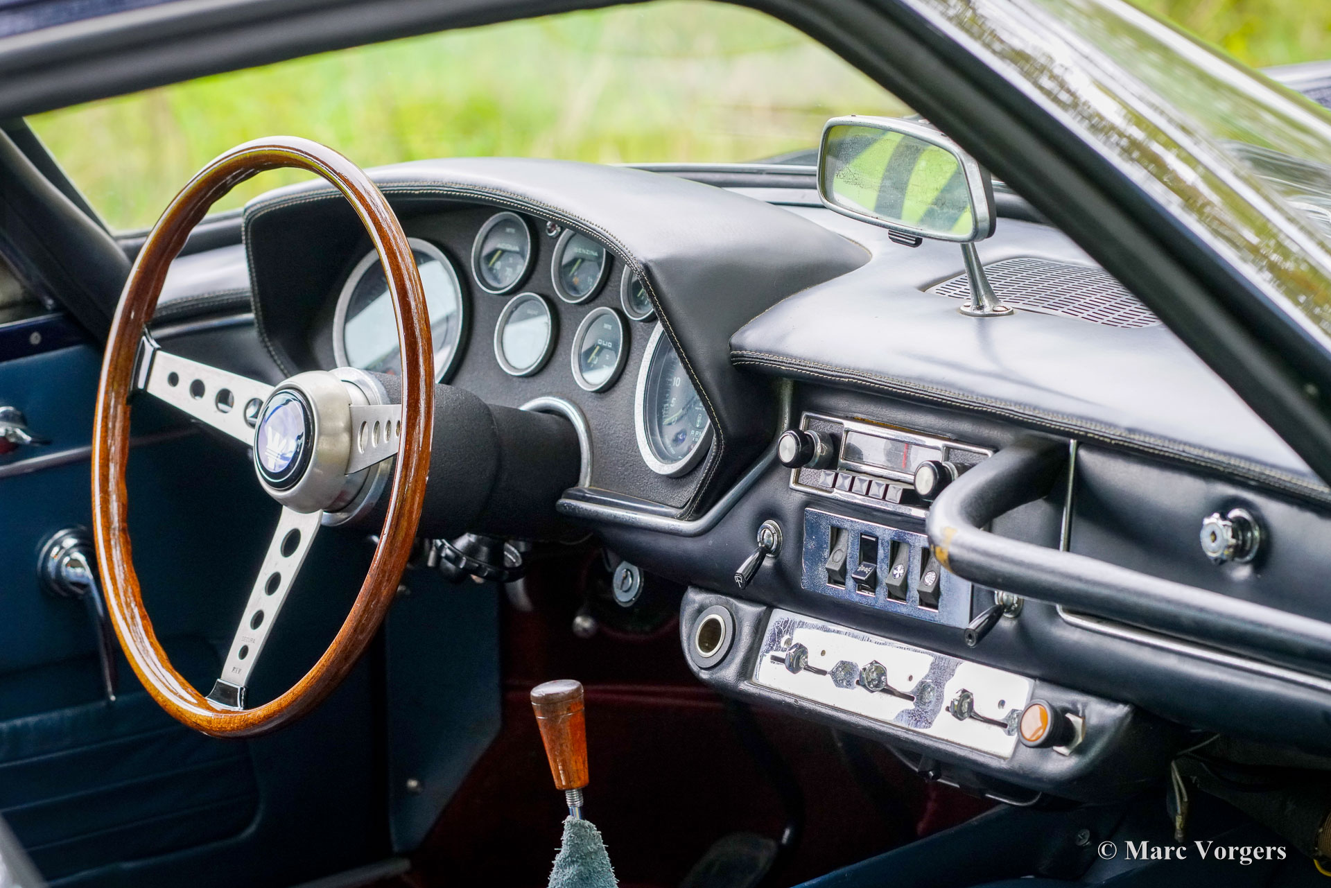 Maserati Mistral Coupé 4 litres Injection, année 1966. Numéro de châssis AM109/A1/724. Ce véhicule, dont les numéros de série correspondent, possède un moteur, une boîte de vitesses et un essieu arrière d'origine, provenant directement de l'usine et appartenant au châssis et à la carrosserie. Sa teinte bleu foncé métallisé (Blu Pervinca 106AR357) s'harmonise avec un intérieur en cuir bleu rehaussé de moquette rouge. Cette magnifique Maserati a été construite le 9 mai 1966 et alors livrée à son premier propriétaire à Vérone, en Italie. Elle a ensuite rejoint l'Allemagne, chez M. Hans Haemer, qui l'a vendue en 1982 au père de l'actuel propriétaire. La famille possède et chérit ce véhicule d'exception depuis 43 ans ! Le coupé Maserati Mistral a été lancé en 1963 et seulement 844 exemplaires furent produits, équipés de moteurs six cylindres en ligne de 3,5, 3,7 et 4,0 litres à double allumage (deux bougies par cylindre) et injection mécanique Lucas. En 1966, le moteur haut de gamme de 4,0 litres développant 265 ch est devenu disponible en option. Le superbe design GT de Pietro Frua se distinguait par une harmonieuse combinaison de lignes fluides et courbes et d'arêtes vives, ainsi que par un grand hayon vitré conférant à la voiture une allure à la fois sportive et pratique. Ce coupé Mistral 4 litres haut de gamme est sorti d'usine en teinte argent métallisé (Argento Auteuil) avec son intérieur d'origine, toujours en parfait état. Lors de son acquisition en 1982, sa carrosserie était bleu clair, puis repeinte en bleu foncé (Blu Pervinca). Dans les années 1990, la voiture a fait l'objet d'une restauration et d'une révision complètes. La voiture a ensuite reçu sa peinture actuelle, Blu Pervinca, qui commence à présenter quelques craquelures sur les flancs arrière et à l'arrière. En 2022, la culasse fut entièrement révisée. De nouvelles soupapes et de nouveaux ressorts furent installés, ainsi que les injecteurs. De plus, de nouveaux amortisseurs réglables furent montés. Cette Maserati Mistral haut de gamme est une voiture de pilote en bon, voire très bon état, offrant une conduite, une tenue de route et une sonorité exceptionnelle ! Elle est équipée de jantes à rayons Borrani peintes en argent et d'une roue de secours Borrani dans le coffre. Avec ses numéros de série concordants et un intérieur d'origine encore magnifique, cette Maserati Mistral est une véritable capsule temporelle. Un fleuron du patrimoine automobile italien, ayant appartenu à une seule famille pendant de longues années, qui ne demande qu'à être apprécié et vécu par un passionné d'automobile !