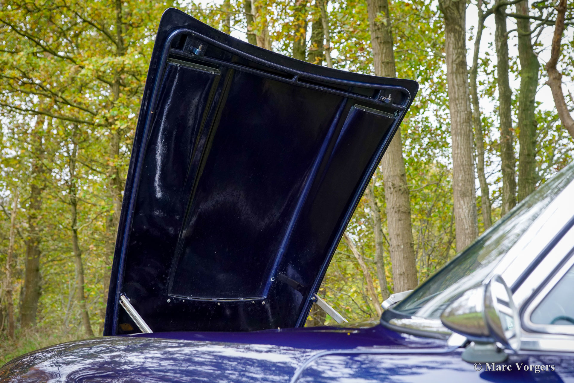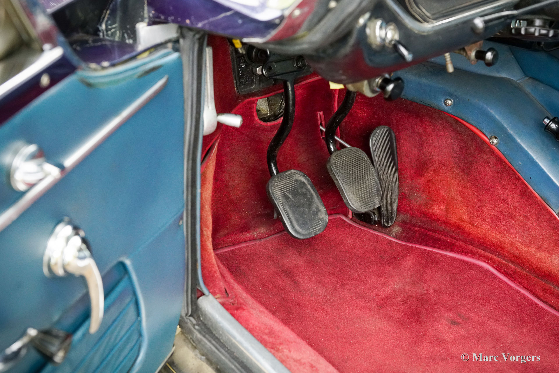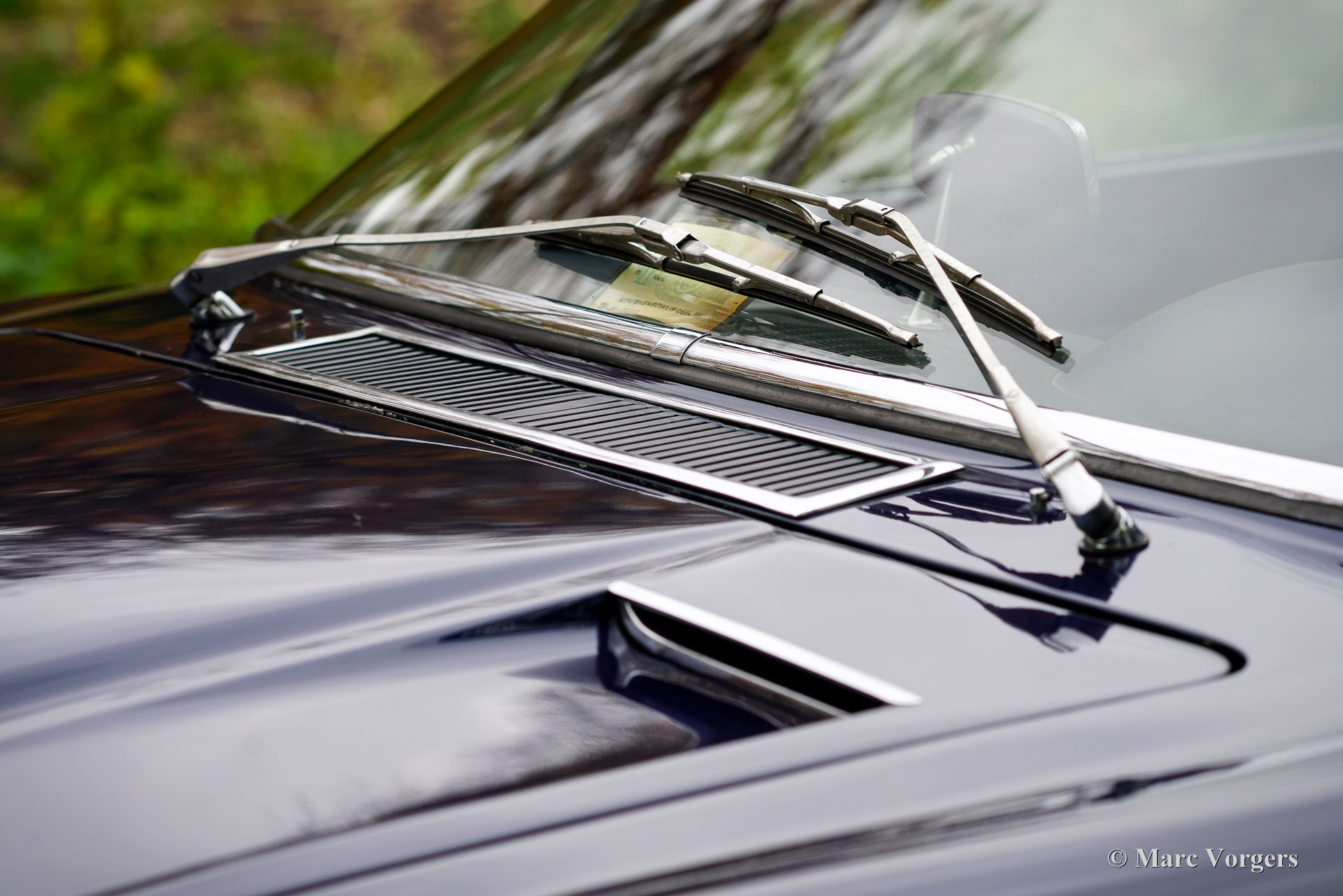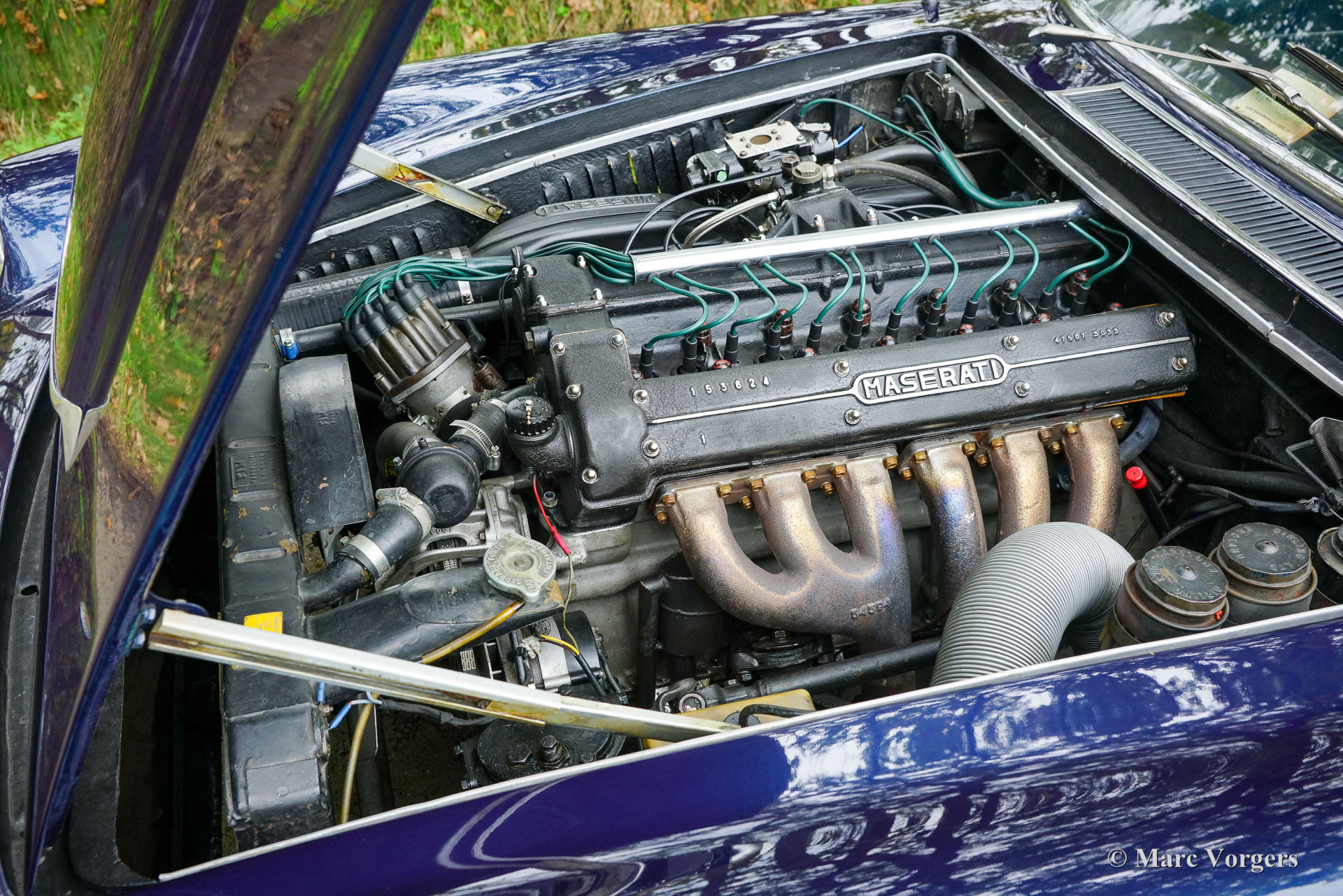 Maserati Mistral Coupé 4 litres Injection, année 1966. Numéro de châssis AM109/A1/724. Ce véhicule, dont les numéros de série correspondent, possède un moteur, une boîte de vitesses et un essieu arrière d'origine, provenant directement de l'usine et appartenant au châssis et à la carrosserie. Sa teinte bleu foncé métallisé (Blu Pervinca 106AR357) s'harmonise avec un intérieur en cuir bleu rehaussé de moquette rouge. Cette magnifique Maserati a été construite le 9 mai 1966 et alors livrée à son premier propriétaire à Vérone, en Italie. Elle a ensuite rejoint l'Allemagne, chez M. Hans Haemer, qui l'a vendue en 1982 au père de l'actuel propriétaire. La famille possède et chérit ce véhicule d'exception depuis 43 ans ! Le coupé Maserati Mistral a été lancé en 1963 et seulement 844 exemplaires furent produits, équipés de moteurs six cylindres en ligne de 3,5, 3,7 et 4,0 litres à double allumage (deux bougies par cylindre) et injection mécanique Lucas. En 1966, le moteur haut de gamme de 4,0 litres développant 265 ch est devenu disponible en option. Le superbe design GT de Pietro Frua se distinguait par une harmonieuse combinaison de lignes fluides et courbes et d'arêtes vives, ainsi que par un grand hayon vitré conférant à la voiture une allure à la fois sportive et pratique. Ce coupé Mistral 4 litres haut de gamme est sorti d'usine en teinte argent métallisé (Argento Auteuil) avec son intérieur d'origine, toujours en parfait état. Lors de son acquisition en 1982, sa carrosserie était bleu clair, puis repeinte en bleu foncé (Blu Pervinca). Dans les années 1990, la voiture a fait l'objet d'une restauration et d'une révision complètes. La voiture a ensuite reçu sa peinture actuelle, Blu Pervinca, qui commence à présenter quelques craquelures sur les flancs arrière et à l'arrière. En 2022, la culasse fut entièrement révisée. De nouvelles soupapes et de nouveaux ressorts furent installés, ainsi que les injecteurs. De plus, de nouveaux amortisseurs réglables furent montés. Cette Maserati Mistral haut de gamme est une voiture de pilote en bon, voire très bon état, offrant une conduite, une tenue de route et une sonorité exceptionnelle ! Elle est équipée de jantes à rayons Borrani peintes en argent et d'une roue de secours Borrani dans le coffre. Avec ses numéros de série concordants et un intérieur d'origine encore magnifique, cette Maserati Mistral est une véritable capsule temporelle. Un fleuron du patrimoine automobile italien, ayant appartenu à une seule famille pendant de longues années, qui ne demande qu'à être apprécié et vécu par un passionné d'automobile !