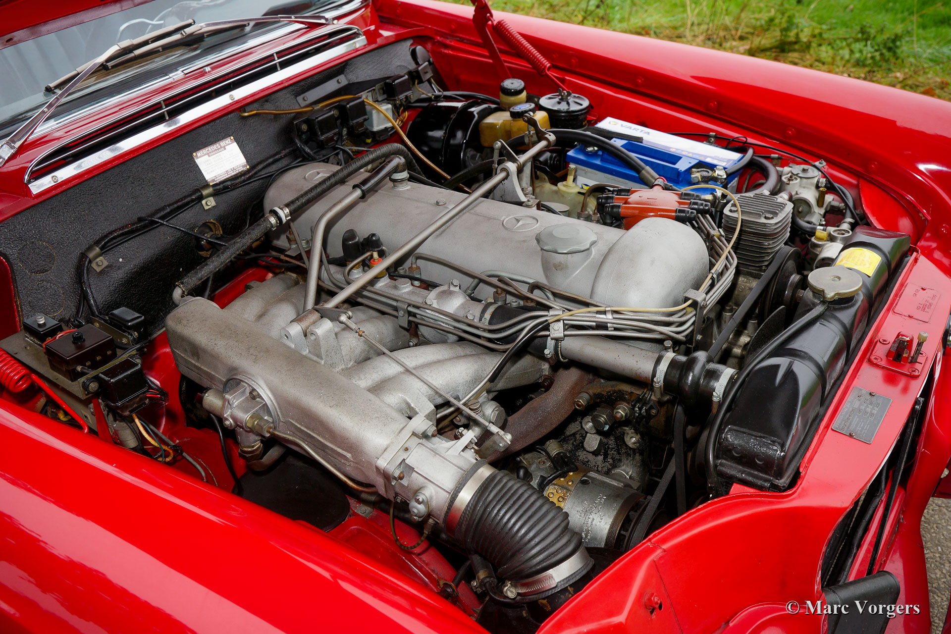 Mercedes-Benz W112 300 SE décapotable, année 1966. Couleur rouge Mercedes-Benz combinée avec un intérieur en cuir noir et un tapis noir. Capuche et couvre-capote en mohair noir. Cette magnifique décapotable Mercedes-Benz 300SE fut vendue neuve à un soldat américain stationné en Europe. En 1967, le propriétaire fit expédier la Mercedes aux États-Unis. En 2016, l'automobile fut vendue aux Pays-Bas, où elle a été intégrée à une collection de voitures classiques. La W112 300 SE décapotable est l’un des modèles haut de gamme de la marque Mercedes-Benz. Une automobile très luxueuse et confortable dotée d'une suspension pneumatique à nivellement automatique sur les roues arrière, d'un moteur à six cylindres en ligne qui fonctionne silencieux et puissant, de vitres électriques et, bien sûr, d'une construction magnifique. Cette Mercedes 300 SE décapotable est en excellente état et la voiture roule parfaitement. La carrosserie montre un ajustement précis des panneaux, une belle peinture et un chrome parfait. L'intérieur et le capot sont en excellent état. La salle des machines est magnifiquement détaillée. La voiture est équipée de pneus à flancs blancs et d'une radio Becker Europa AM / FM d'époque correcte. Cette Mercedes-Benz peut être importée / exportée dans le monde entier. Ceci est un exemple très souhaitable !