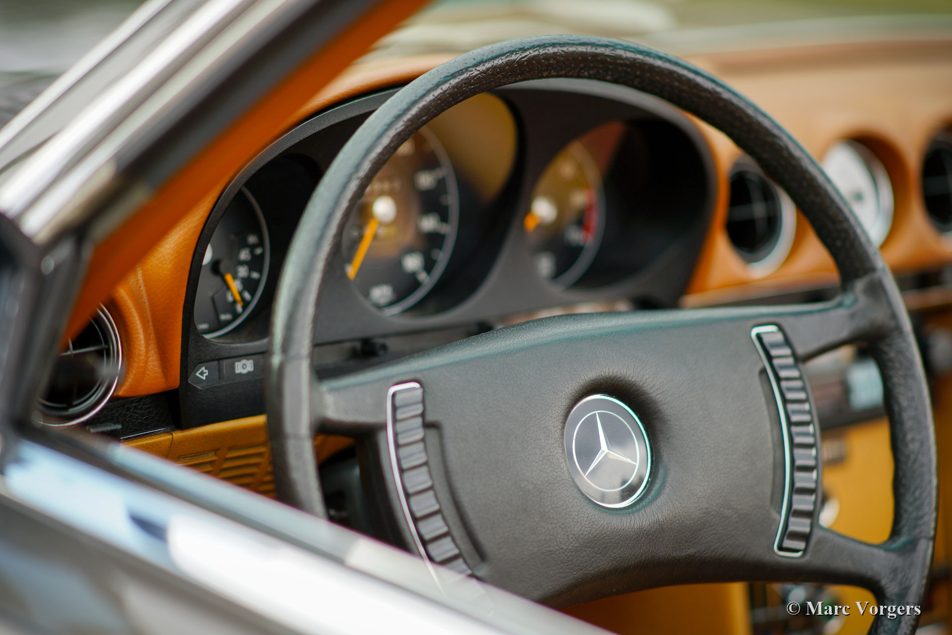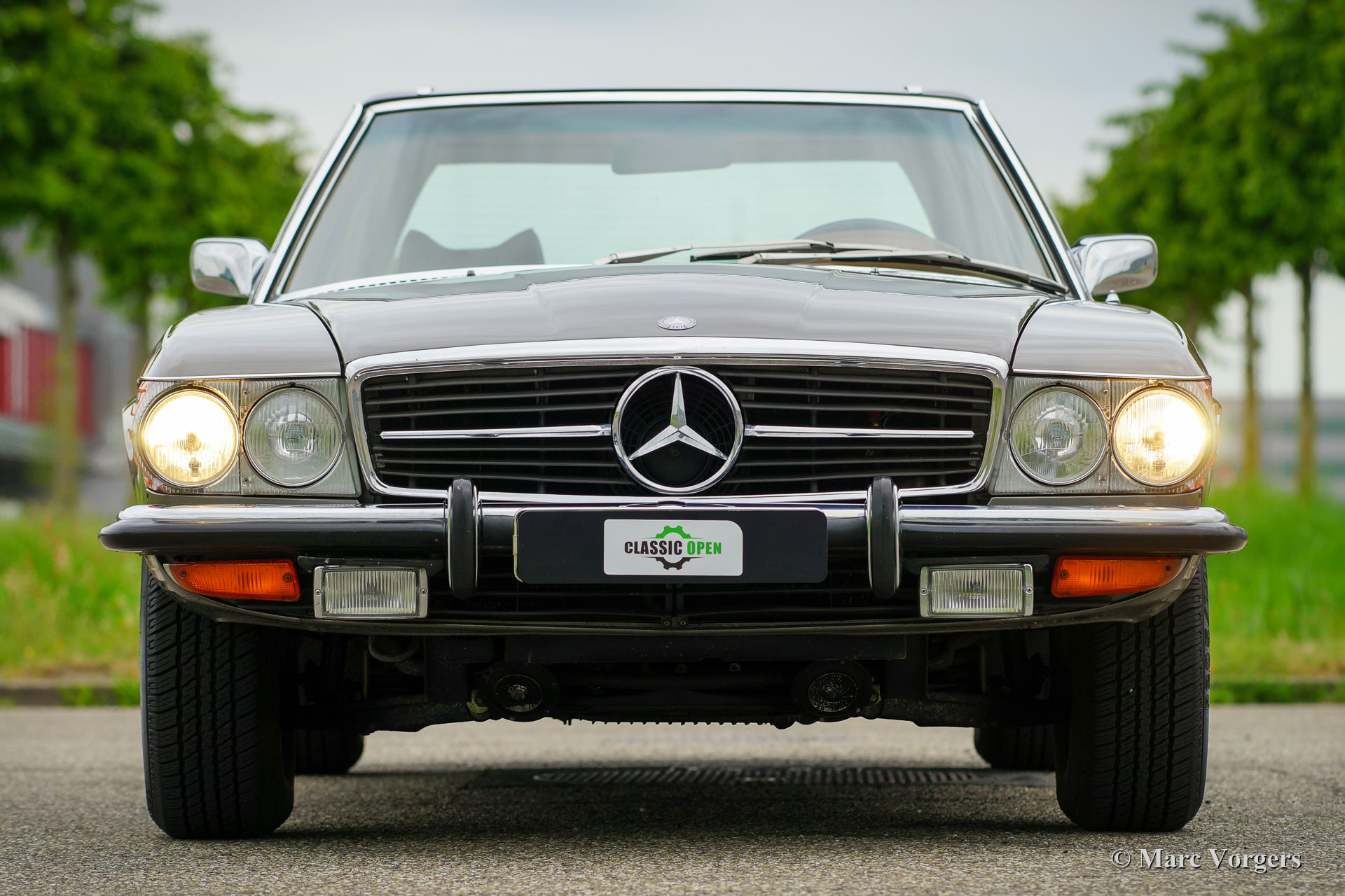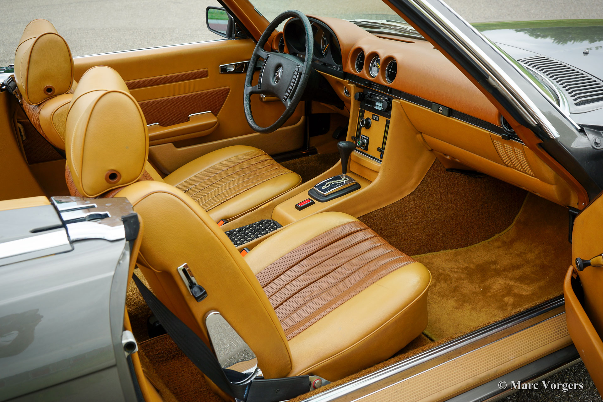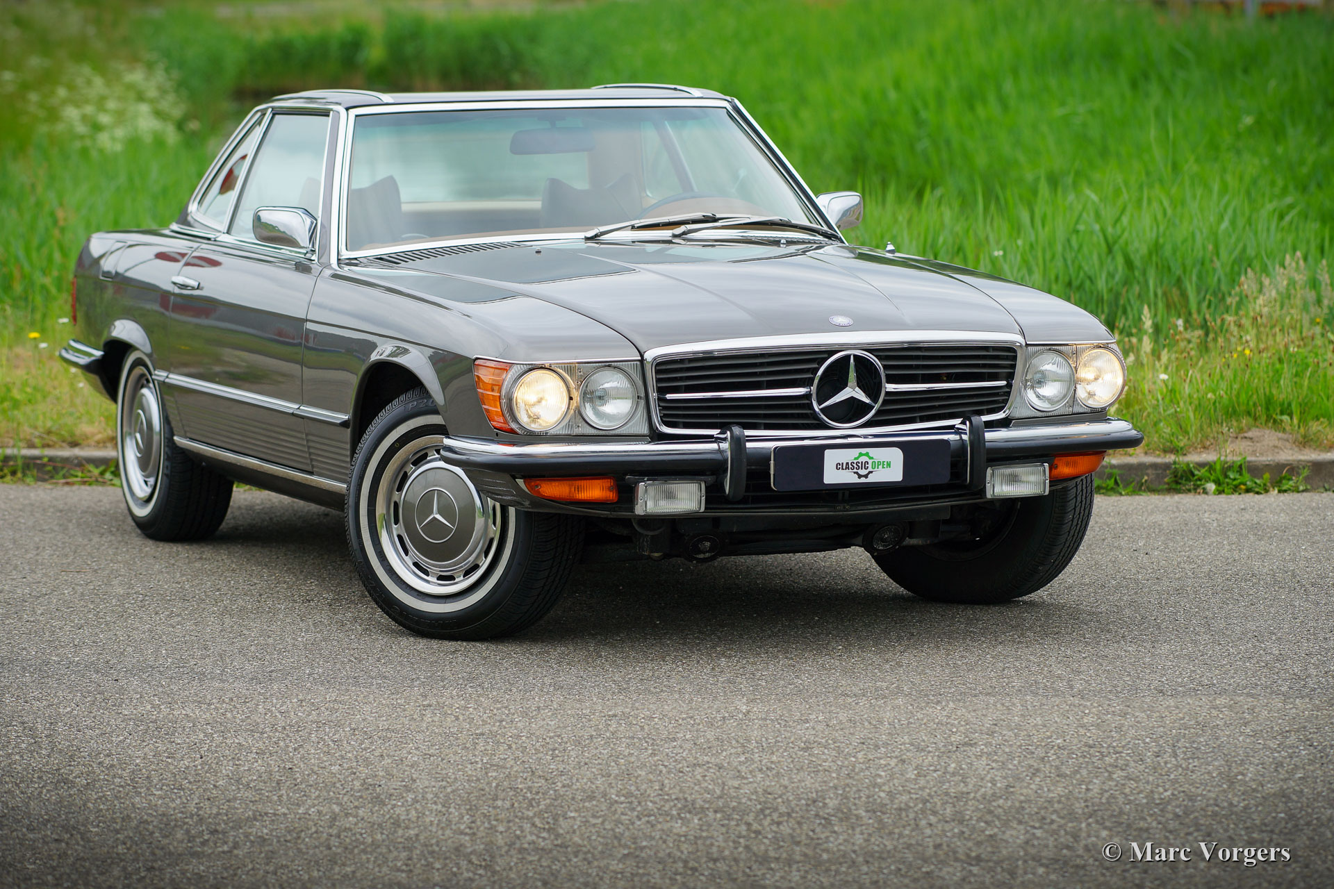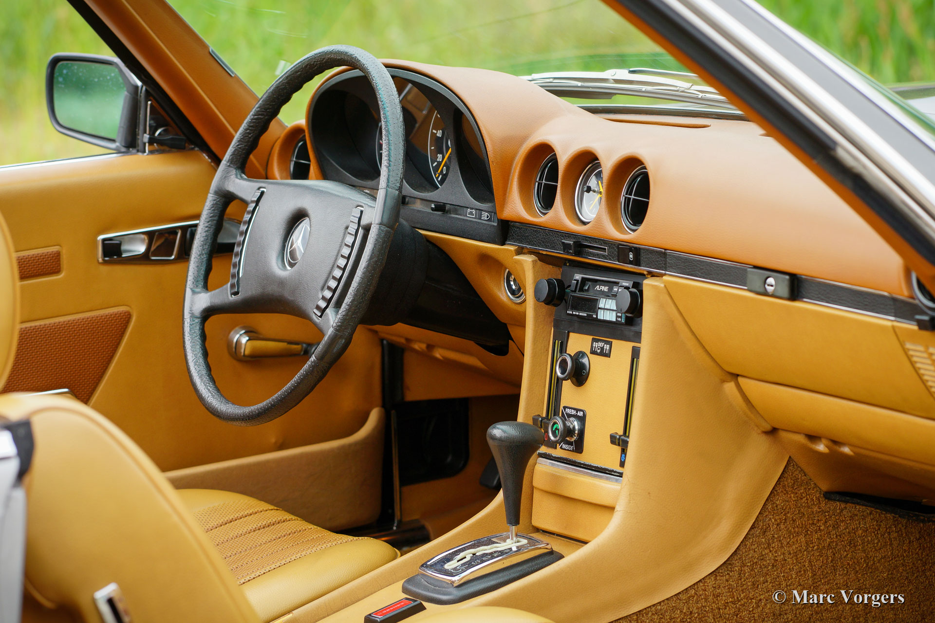 The Mercedes 280 SL, 350 SL and 450 SL are the successors of the 230 SL, 250 SL and 280 SL as we know under the nickname "Pagoda". The "Pagoda was built from the year 1963 until the year 1971, the year the new SL generation was presented to the market. Again Mercedes-Benz achieved to create a timeless design with slick, proper lines. In this shape the SL was sold for over twenty years. The "new" generation Mercedes SL is bigger, wider and heavier than its predecessor but again it was a perfect car considering construction, road holding and driving-comfort. The Mercedes-Benz SL was built with several engines. the buyer had to choose between a V8 with 3.5 or 4.5 liter cylinder capacity or a six cylinder engine with a cylinder capacity of 2.8 liter. The SL was standard equipped with a soft-top which could neatly be stowed away under a lid fully integrated in the car. Optionally the SL could be fitted with a hard-top. The hardtop can easily be fitted to the car, in a couple of minutes, with the soft-top down in place.