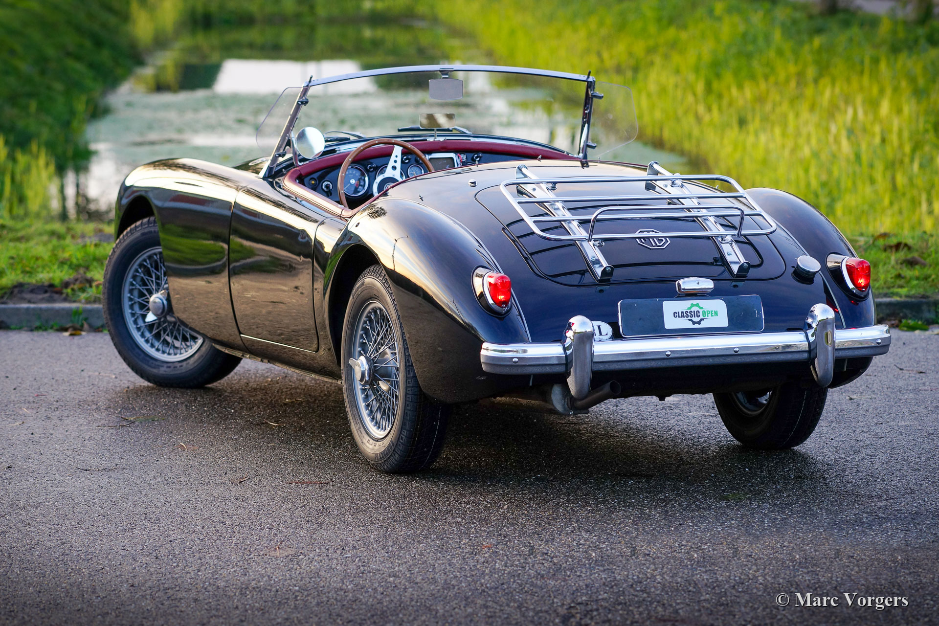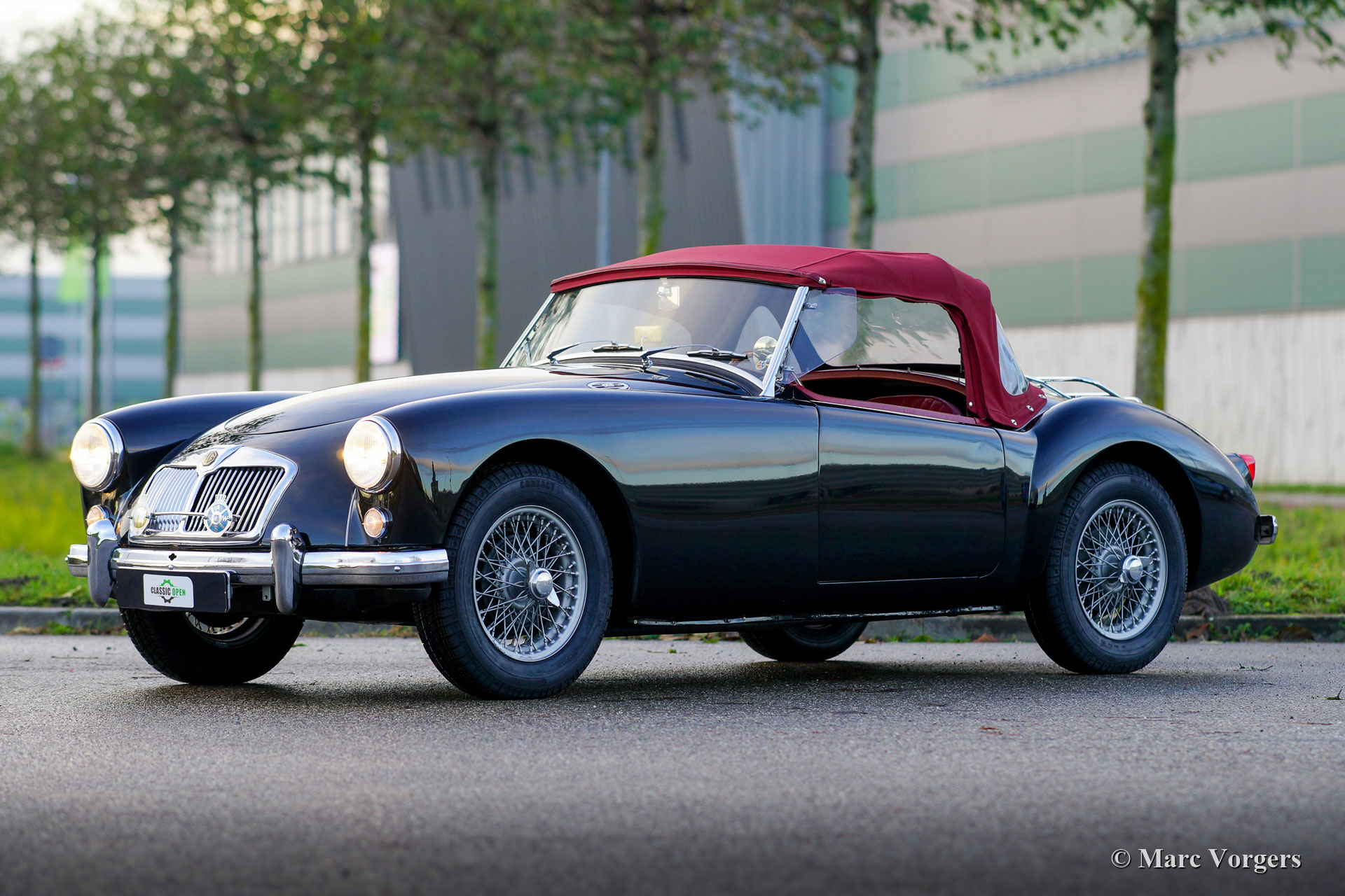 The year 1955 saw the introduction of the MGA. With this design the MG broke new grounds. After its predecessors MG TD and MG TF, which were largely based on the pre-war MG TB, it was a roadster with a very modern sporty design. Like its predecessors, the MGA was a great success and, like before, the greater part was sold in America. Until 1959, the MGA was equipped with a 1459 cc four-cylinder engine. From that year, the car was fitted with a 1588 cc four-cylinder. A 1622 cc four-cylinder engine replaced the 1588 cc. engine in 1961. The early MGA versions had very good drum brakes until 1959, but after that year, the MG A was equipped with disc brakes on the front wheels. The year 1962 saw the production of the MGA, the A 1600 Mk II. The MGB replaced this very popular British sports car, and was to develop the success of the MG A even further.