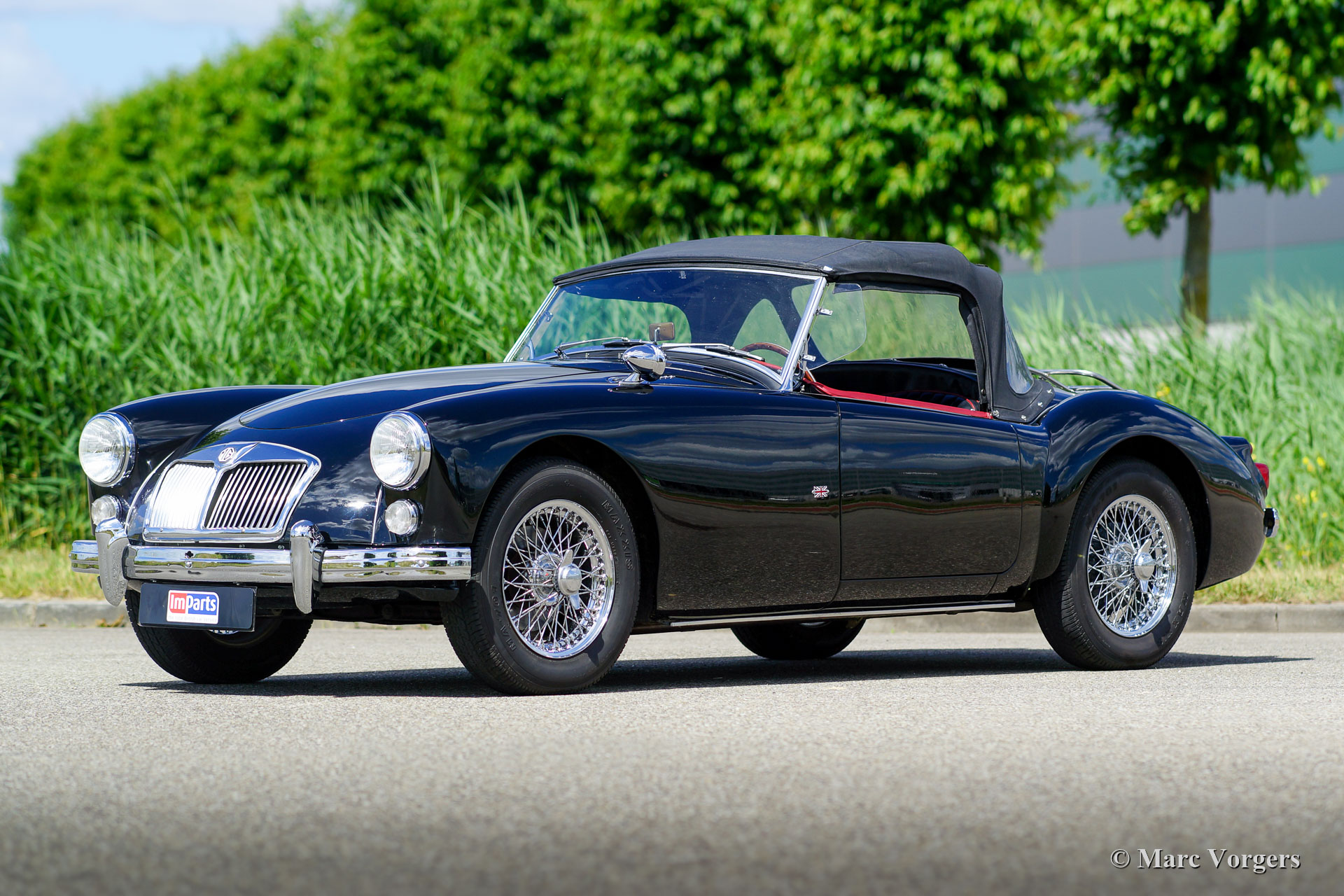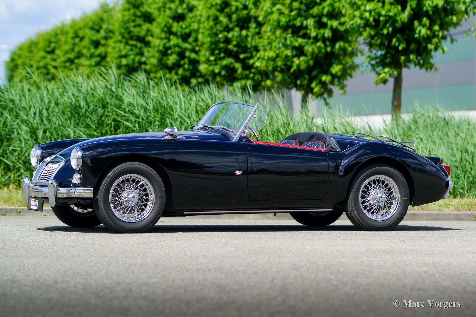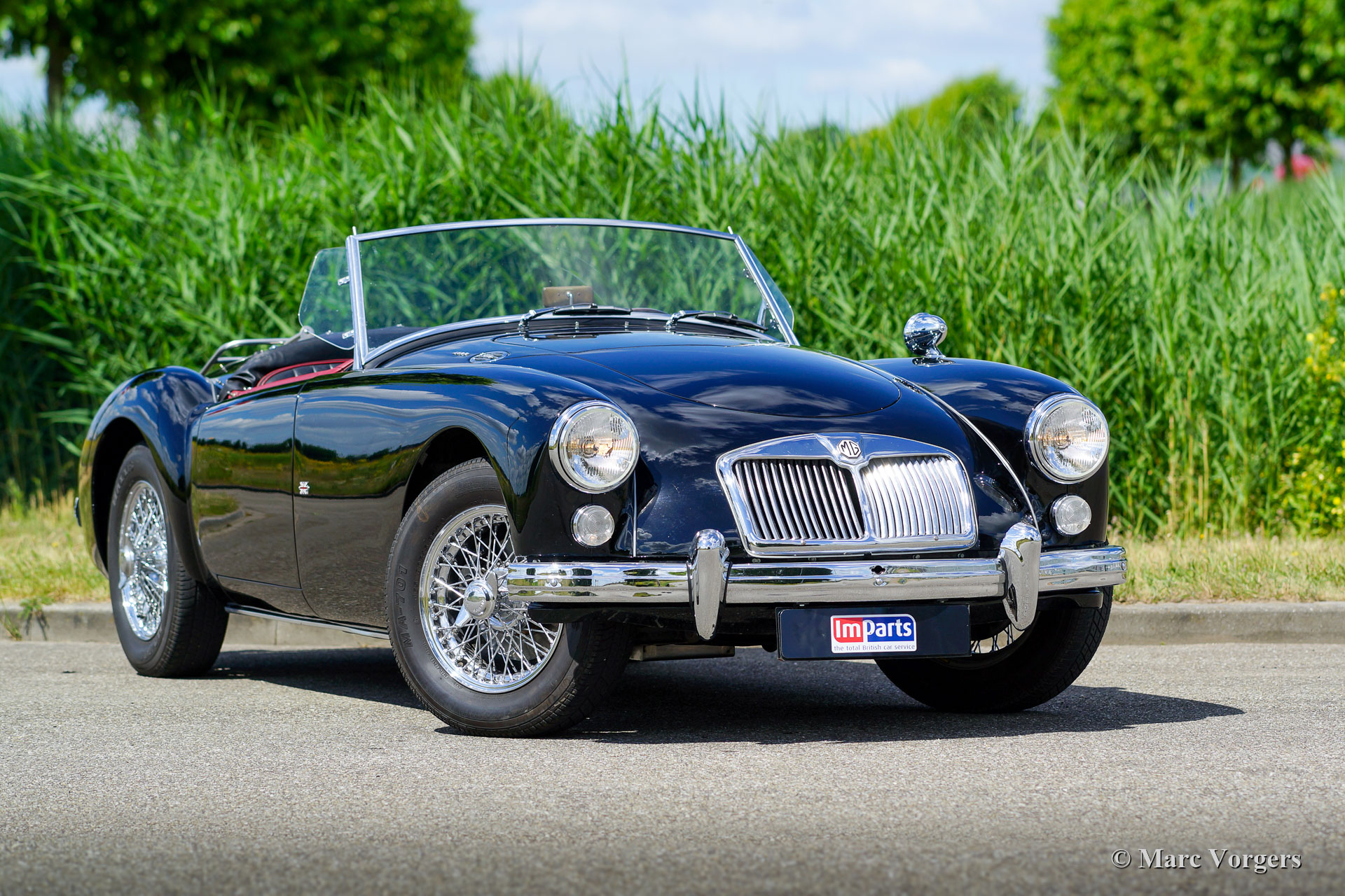 The year 1955 saw the introduction of the MGA. With this design the MG broke new grounds. After its predecessors MG TD and MG TF, which were largely based on the pre-war MG TB, it was a roadster with a very modern sporty design. Like its predecessors, the MGA was a great success and, like before, the greater part was sold in America. Until 1959, the MGA was equipped with a 1459 cc four-cylinder engine. From that year, the car was fitted with a 1588 cc four-cylinder. A 1622 cc four-cylinder engine replaced the 1588 cc. engine in 1961. The early MGA versions had very good drum brakes until 1959, but after that year, the MG A was equipped with disc brakes on the front wheels. The year 1962 saw the production of the MGA, the A 1600 Mk II. The MGB replaced this very popular British sports car, and was to develop the success of the MG A even further.