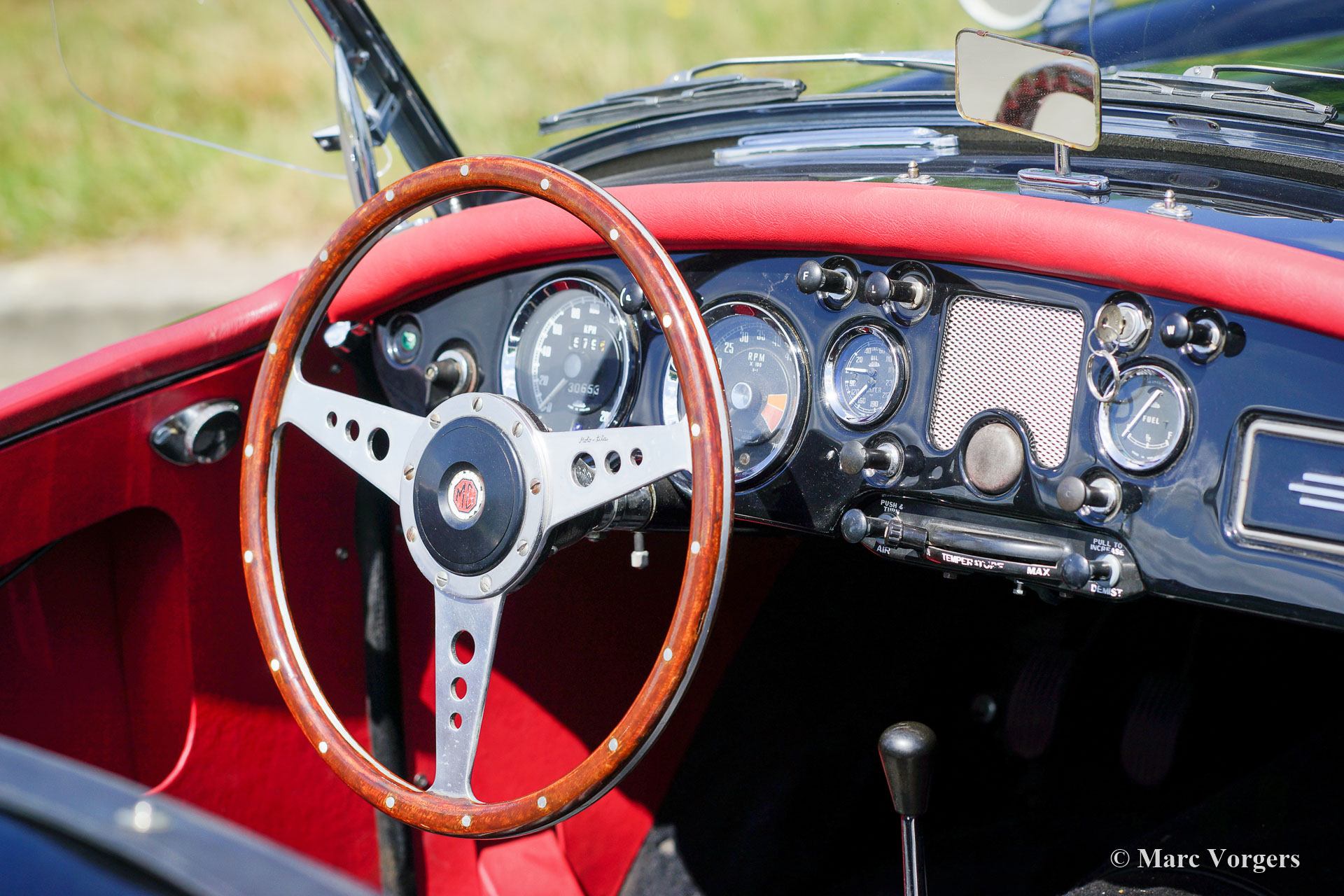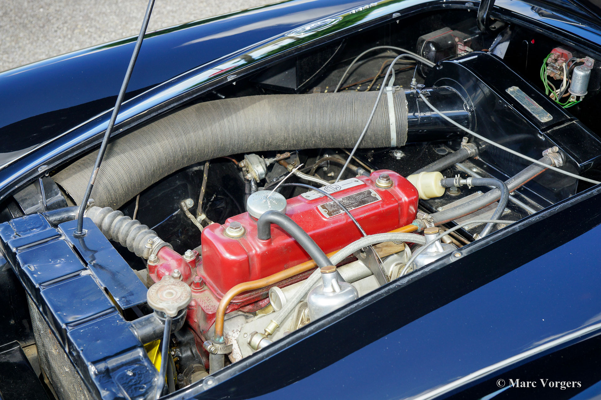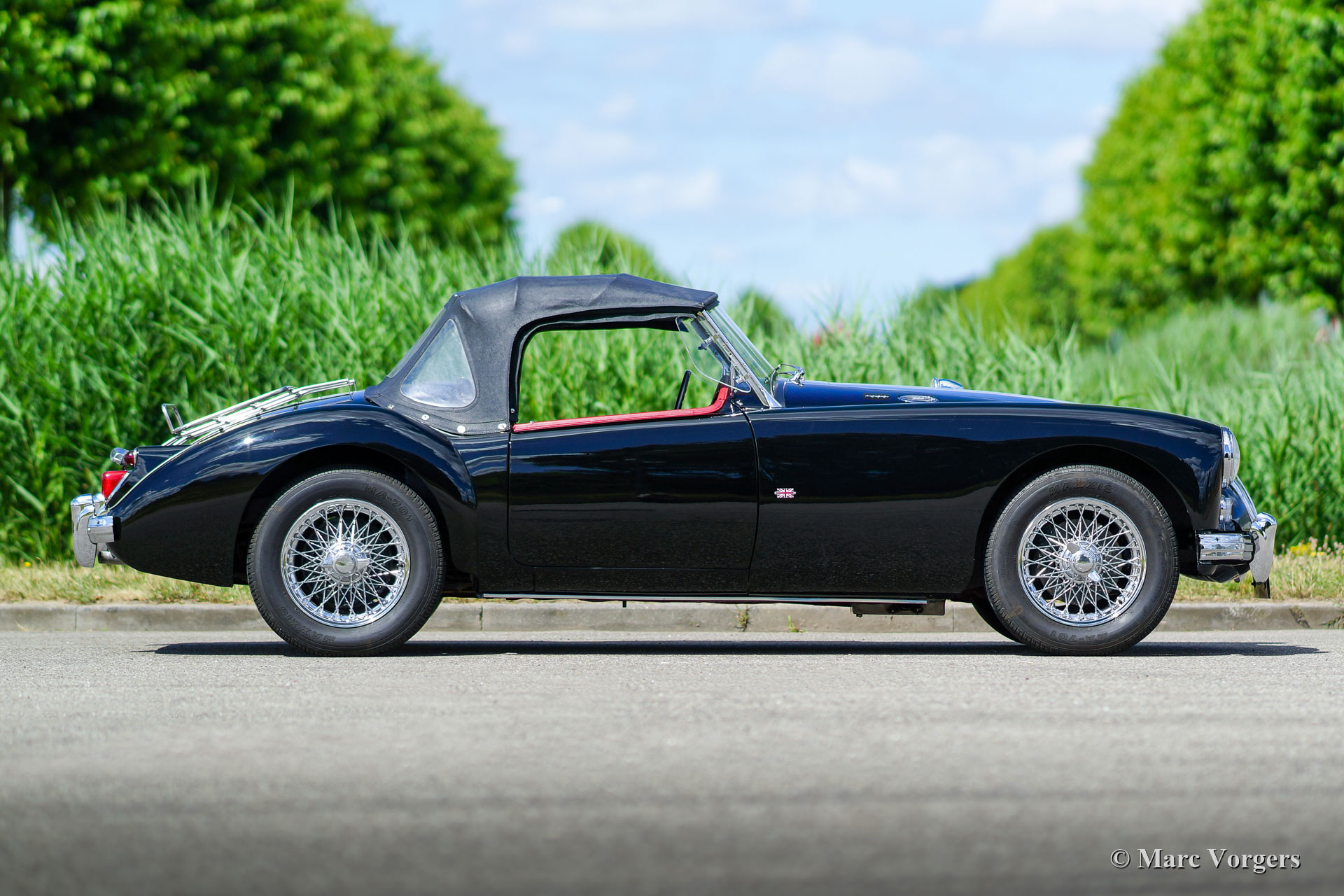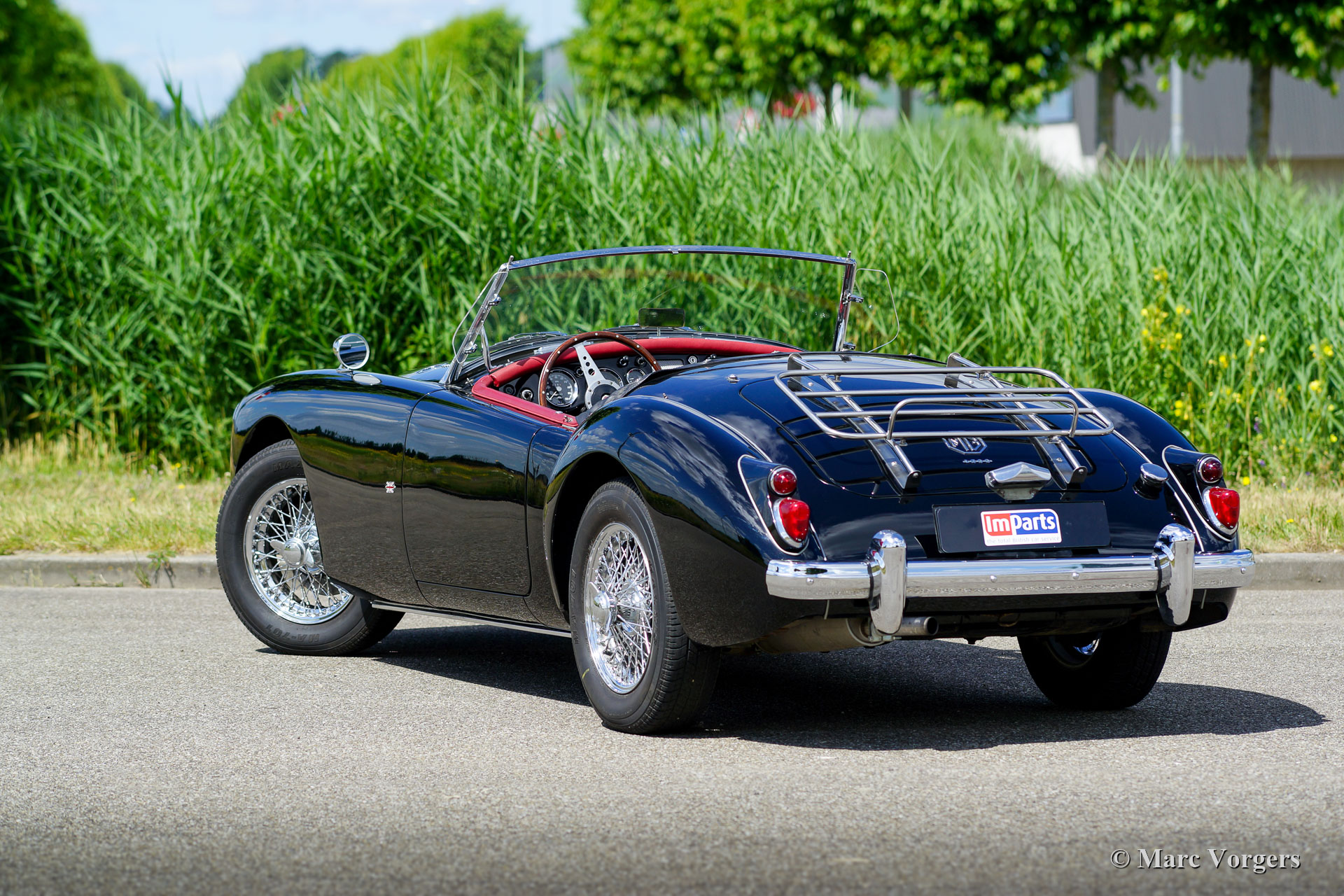 The year 1955 saw the introduction of the MGA. With this design the MG broke new grounds. After its predecessors MG TD and MG TF, which were largely based on the pre-war MG TB, it was a roadster with a very modern sporty design. Like its predecessors, the MGA was a great success and, like before, the greater part was sold in America. Until 1959, the MGA was equipped with a 1459 cc four-cylinder engine. From that year, the car was fitted with a 1588 cc four-cylinder. A 1622 cc four-cylinder engine replaced the 1588 cc. engine in 1961. The early MGA versions had very good drum brakes until 1959, but after that year, the MG A was equipped with disc brakes on the front wheels. The year 1962 saw the production of the MGA, the A 1600 Mk II. The MGB replaced this very popular British sports car, and was to develop the success of the MG A even further.