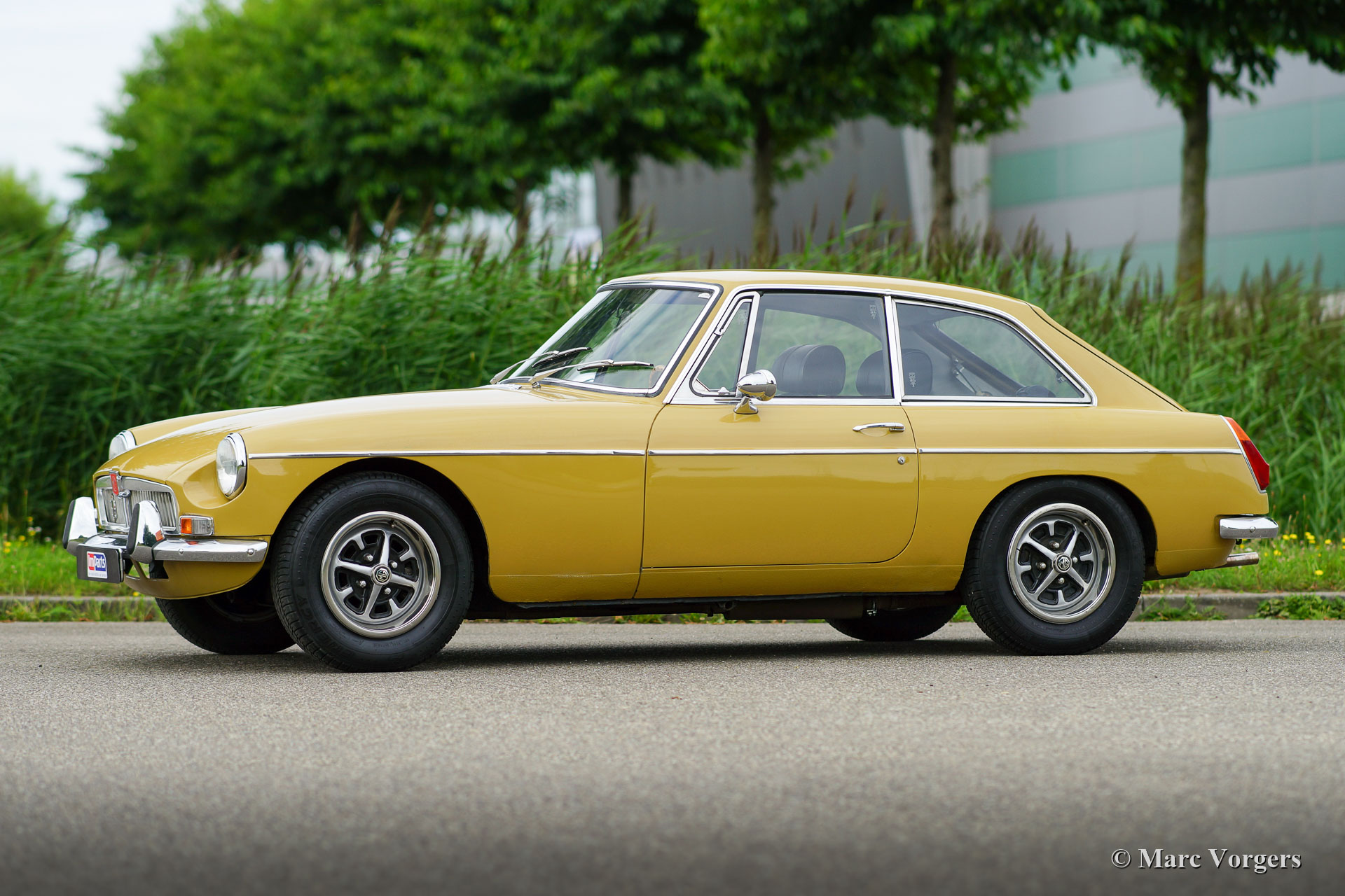 MG MGB GT, année 1973. Couleur beige (Harvest gold) combiné avec un intérieur noir. Sièges en cuir noir et tapis noir. Cette merveilleuse MGB GT est un modèle européen original doté du tableau de bord métallique souhaitable. La voiture a été importée aux Pays-Bas en 1999. L'automobile montre tous les détails d'origine et la voiture est en très bon état avec de légères traces d'utilisation. Ce MGB roule et gère parfaitement et le moteur fonctionne superbement. La mécanique était bien entretenue mais malheureusement le compartiment moteur n'a pas été nettoyée selon les mêmes normes. La voiture est équipée de superbes roues « Rostyle » chromées / noires, de l'OVERDRIVE, de freins assistés et d'une superbe direction assistée électrique de la marque EZ. C'est une voiture de pilote fantastique!