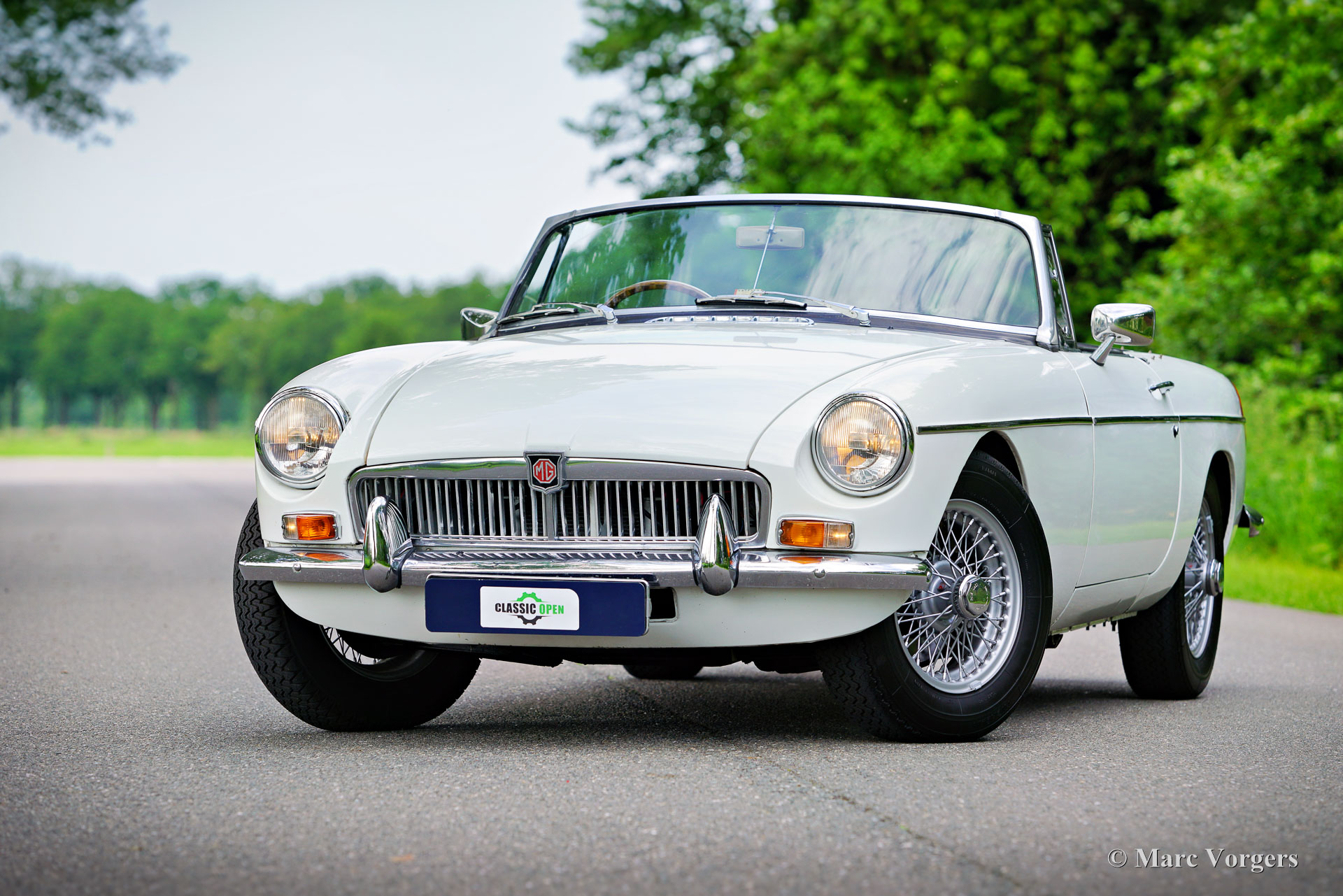 MG MGB Roadster, année 1970. Couleur blanc associé à un intérieur en cuir noir, garni de passepoil blanc et de tapis noir. Capote noire. Ce magnifique roadster MGB à conduite à droite fut vendu neuf au Royaume-Uni. La voiture se trouve maintenant aux Pays-Bas et fut restaurée détaillée il y a quelques années. Ce charmant roadster MGB est dans un très bon état ! Cette MGB est dotée du précieux tableau de bord en métal noir d'origine, d'un overdrive, de roues à rayons chromés et d'un volant sport avec une jante en bois. Si vous le souhaitez, nous pouvons convertir cette MGB en conduite à gauche dans notre atelier moyennant des frais supplémentaires. Le roadster MGB est une voiture de sport britannique ouverte, désirable et polyvalente, une machine à voyager dans le temps à apprécier lors des belles soirées d'été, des week-ends et des vacances. Conduire sur des routes sinueuses, explorer des villages historiques et visiter des B&B de campagne en Europe ou au Royaume-Uni. Le moteur quatre cylindres de 90 ch semble chaleureux et sportif et l'intérieur offre beaucoup d'espace. La puissance du moteur et l’accélération sont suffisantes pour se mêler confortablement au trafic moderne !