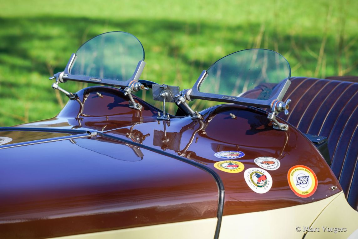 MG TA ‘Cream Cracker’, année 1936. Couleur marron foncé sur crème (beige) combinée à un intérieur en cuir marron et un couvre tonneau en mohair marron. Ici, nous avons une reconstitution d'une célèbre voiture de l'équipe de travail MG « Cream Cracker ». Les « Cream Cracker » de la MG TA ont été couronnés de succès lors des compétitions d'essai au Royaume-Uni à la fin des années 1930. La MG TA de 1936 présentée fut importée aux Pays-Bas en 2000 et n'a connu depuis qu'un seul propriétaire néerlandais. La voiture est livrée avec un historique entièrement documenté, tous les propriétaires précédents sont connus. La MG TA fut modifiée selon les spécifications de la compétition par un spécialiste MG aux Pays-Bas, les pièces d'origine comme le pare-brise et le cadre de capot souple d'origine sont toujours présentes. Aucun coût ni effort n'ont été épargnés pour construire une récréation MG TA « Cream Cracker » vraiment compétitive, nos essais routiers ont été des expériences impressionnantes ; c'est l'un des types de MG T à aspiration naturelle les mieux réglés que nous ayons jamais conduits ! Voici une liste des modifications et mises à jour les plus importantes : Un moteur MG XPAG réglé fut monté. Le moteur est doté d'un vilebrequin Phoenix en acier à billettes et d'un arbre à cames sport, de deux S.U. Carburateurs HS4 1 ½ pouce, une culasse Laystall airflow en aluminium et un collecteur d'échappement « free-flow ». D'autres mises à jour mécaniques sont une boîte de vitesses Ford à 5 vitesses et des freins à tambour en aluminium Alfin. La voiture est équipée de roues à rayons de 19 pouces chaussées de pneus Blockley 4,50x19, de bulles aérodynamiques Brooklands, d'amortisseurs Hartford et de roues de secours jumelles montées à l'arrière. Pour éviter toute confusion avec les vraies voitures de l'équipe « Cream Cracker », cette récréation souhaitable affiche les mots « Cream Crackered » sur le capot. Cette MG TA roule parfaitement et l'expérience de conduite, ainsi que le son du moteur sont vraiment exaltants ! Cette MG TA peut être importée / exportée vers n'importe quel pays du monde. De nombreuses pièces de rechange sont disponibles pour être acquises séparément.