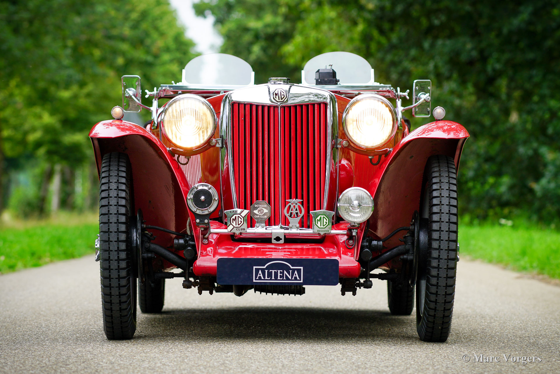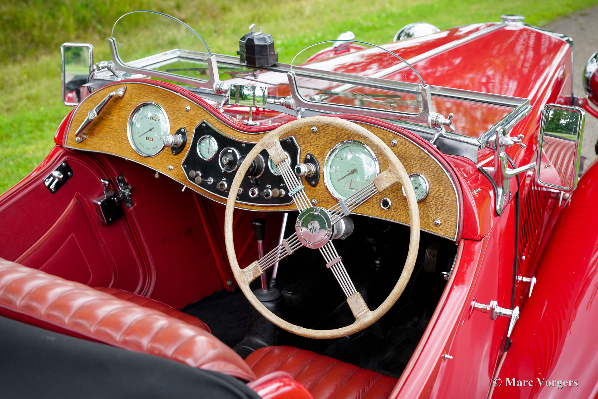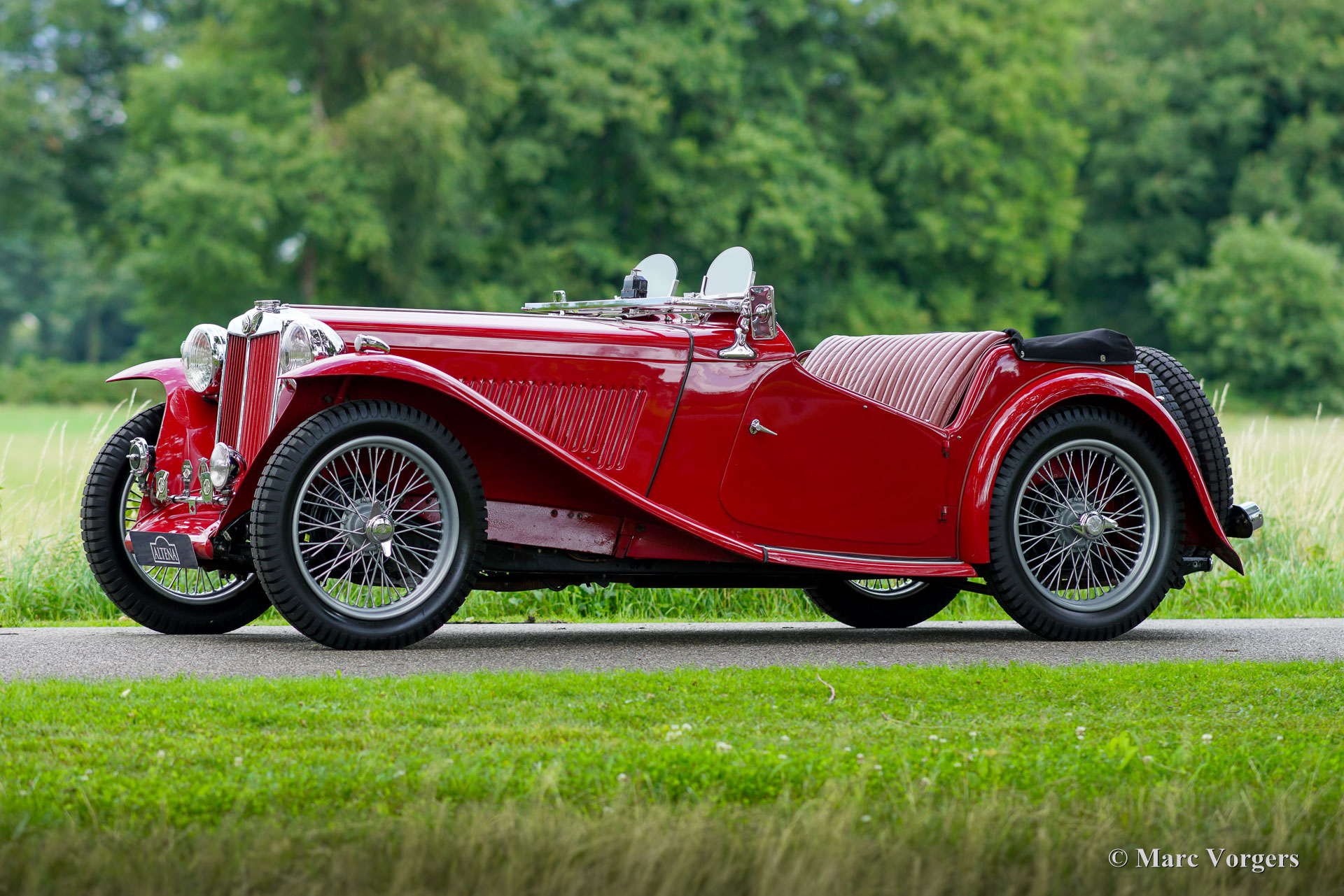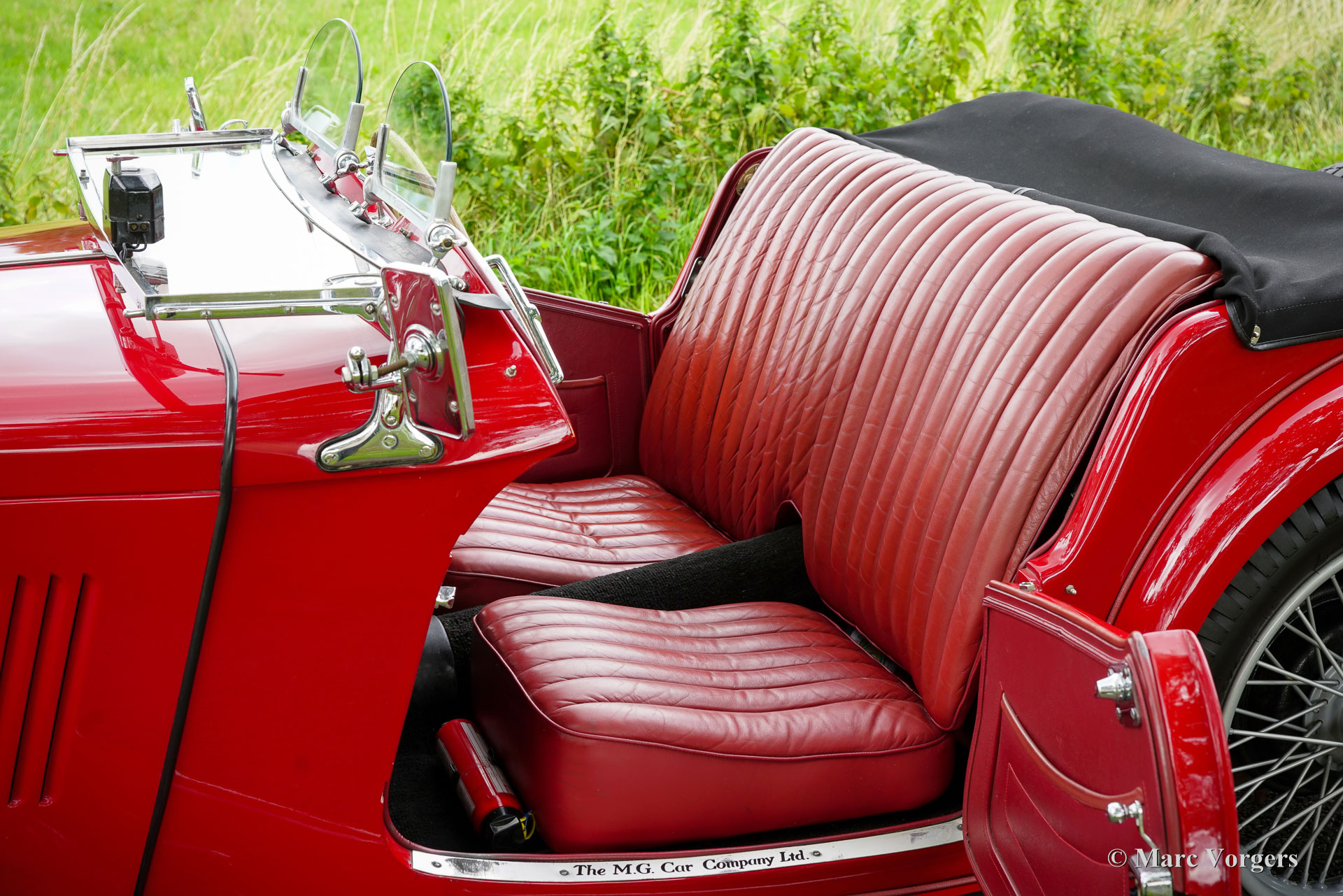 MG TC, année 1946. Couleur rouge foncé combinée à un intérieur en cuir rouge foncé assorti, garni de moquette noire. Capote, couvre-capote et couvre-tonneau en mohair noir, cadres d'écrans latéraux noirs. Cette magnifique MG TC fut vendu neuve au Royaume-Uni. La voiture est immatriculée au registre MG-T. Dans les années 2008 à 2010, la MG TC fut restaurée détaillée selon les spécifications d'usine au Royaume-Uni. Les coûts et les efforts n'ont pas été épargnés pour rendre la voiture parfaite. La restauration est superbement documentée, un album photo montrant la restauration complète est présent ainsi qu'un dossier avec toutes les factures ! Cette MG TC affiche tous les détails d'origine et est équipée de roues de secours jumelées montées à l'arrière. Depuis l'achèvement de la restauration, la MG TC a apporté à l'ancien propriétaire de nombreux moments inoubliables sur les routes sinueuses de la campagne britannique. La voiture fut parfaitement entretenue et choyée par le propriétaire. Cette MG TC est dans un excellent état ne montrant que de légères traces d'utilisation antérieure. La voiture fut récemment importée du Royaume-Uni dans un pays de l'UE, cette MG super originale peut être importée et immatriculée dans n'importe quel pays du monde. Cette superbe MG TC est prête à être appréciée au maximum !