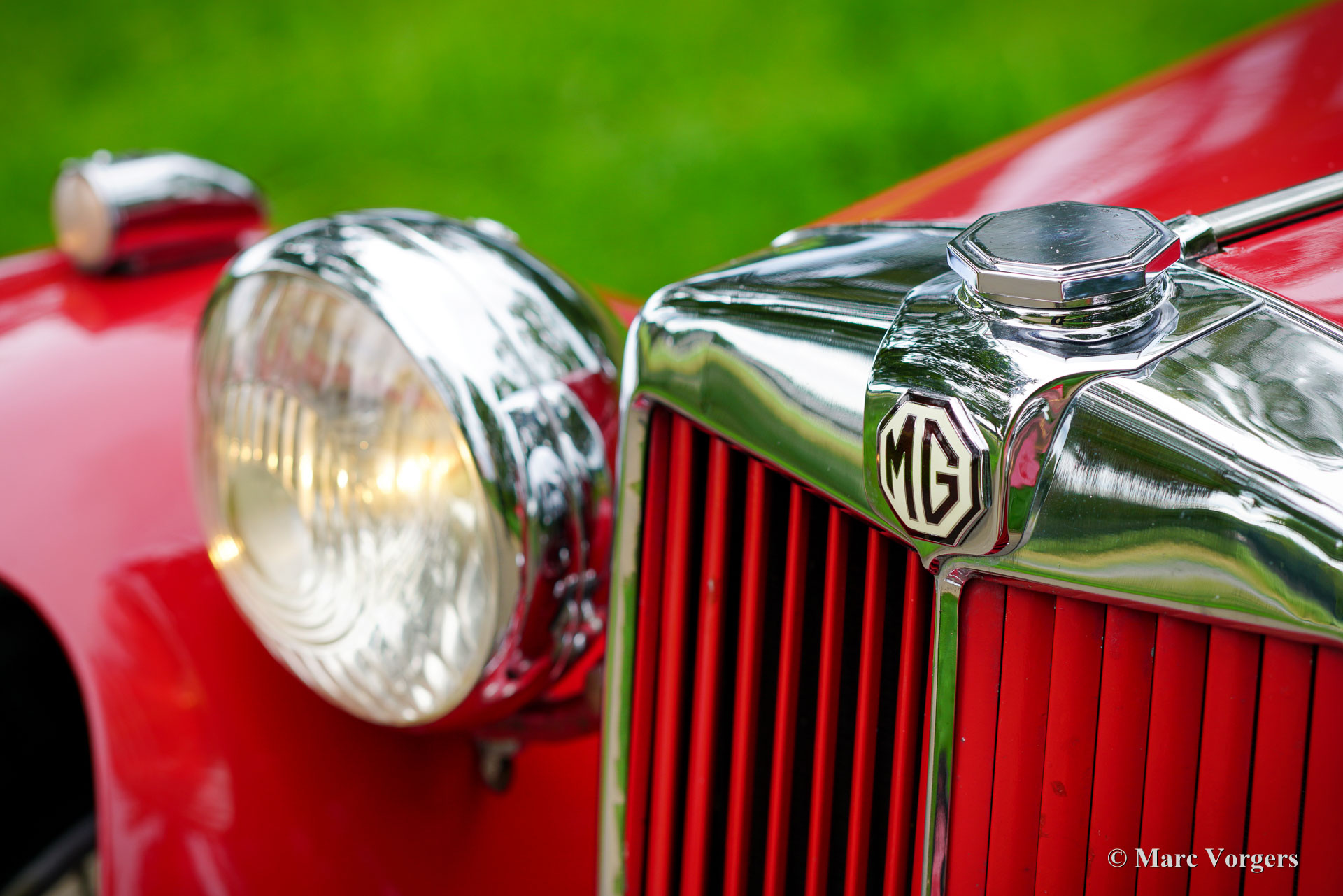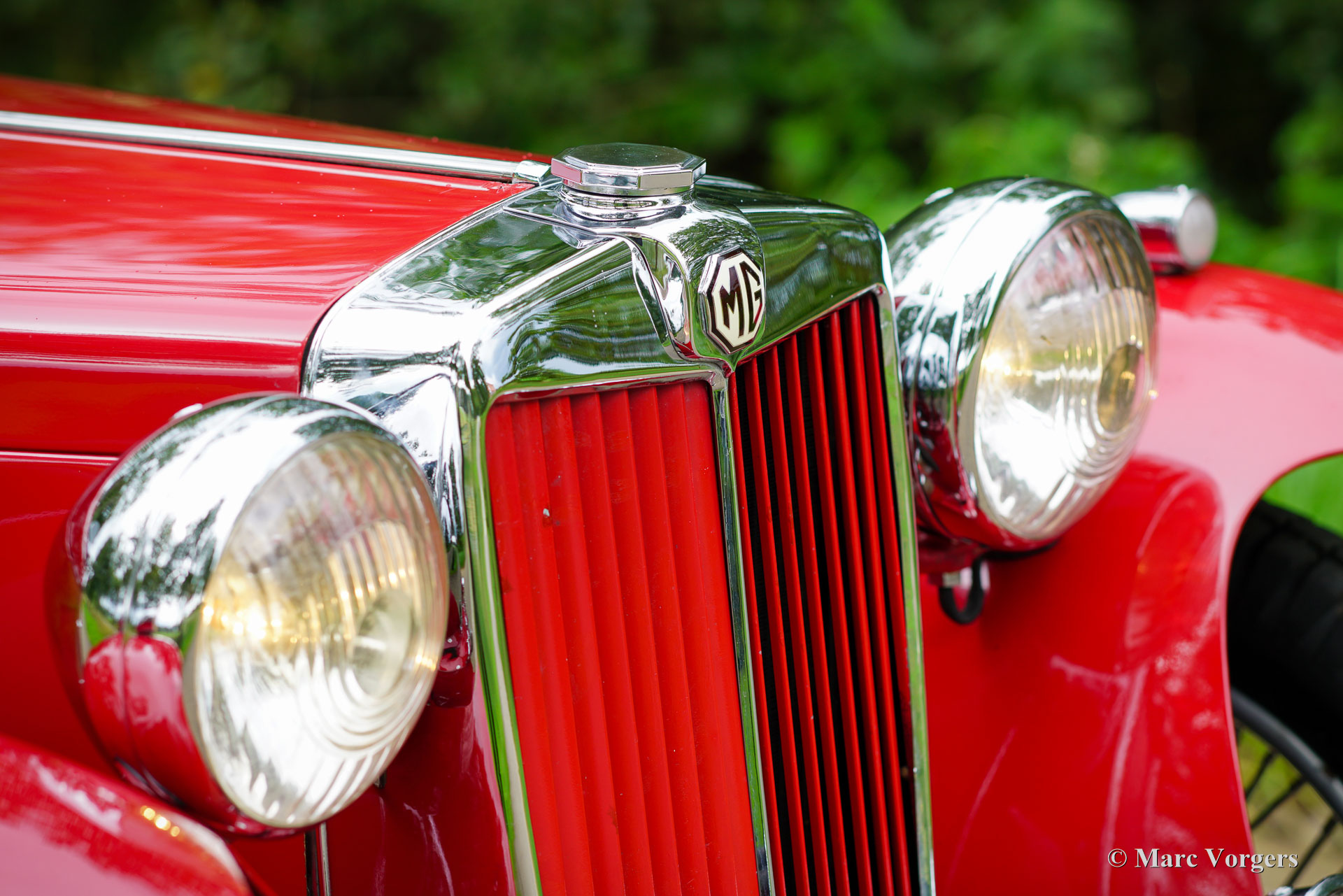 The MG TC was the first new post-war MG. The TC was introduced in 1945, and based on the pre-war TB, it was very similar. A major improvement to the TC was the larger interior, which was increased by 10 cm. The design was similar to the pre-war TB, with swept separate wings, large 19-inch wire wheels and a folding windshield. The MG TB/TC series were much admired by the American soldiers who were on the point of returning to America; this type of small sports car with its smooth handling, was not yet known in America. As a result, many TBs and TCs were shipped to America, and also the MG TC was in great demand at the other side of the pond. All TCs had right-hand steering, leaf springs all around and a 54 bhp four-cylinder engine. In 1950, the MG TC was succeeded by the MG TD.