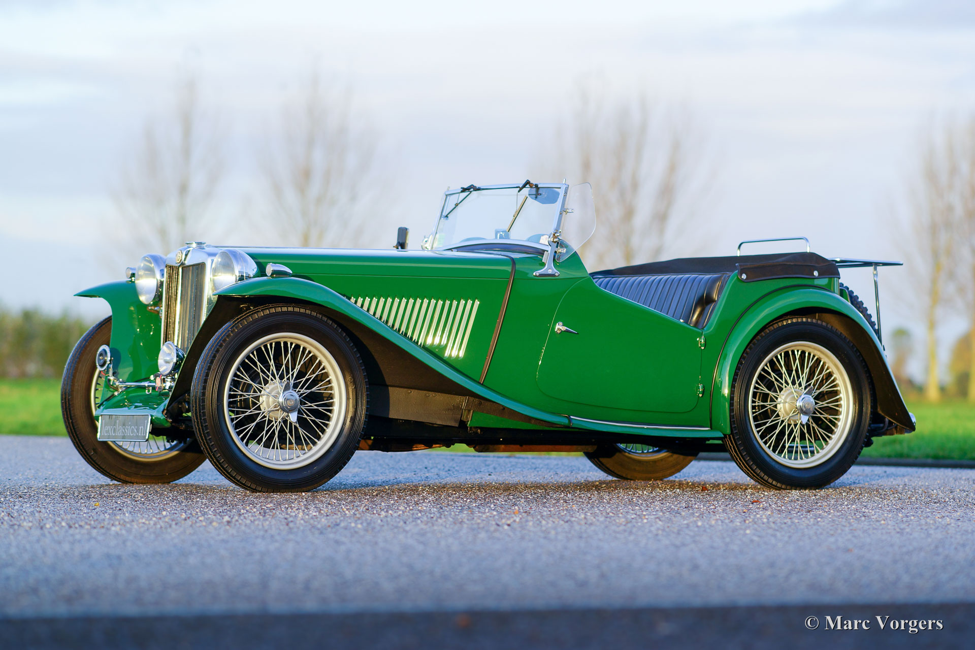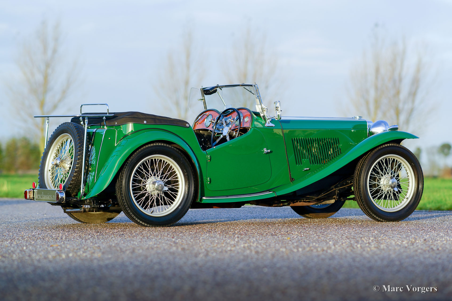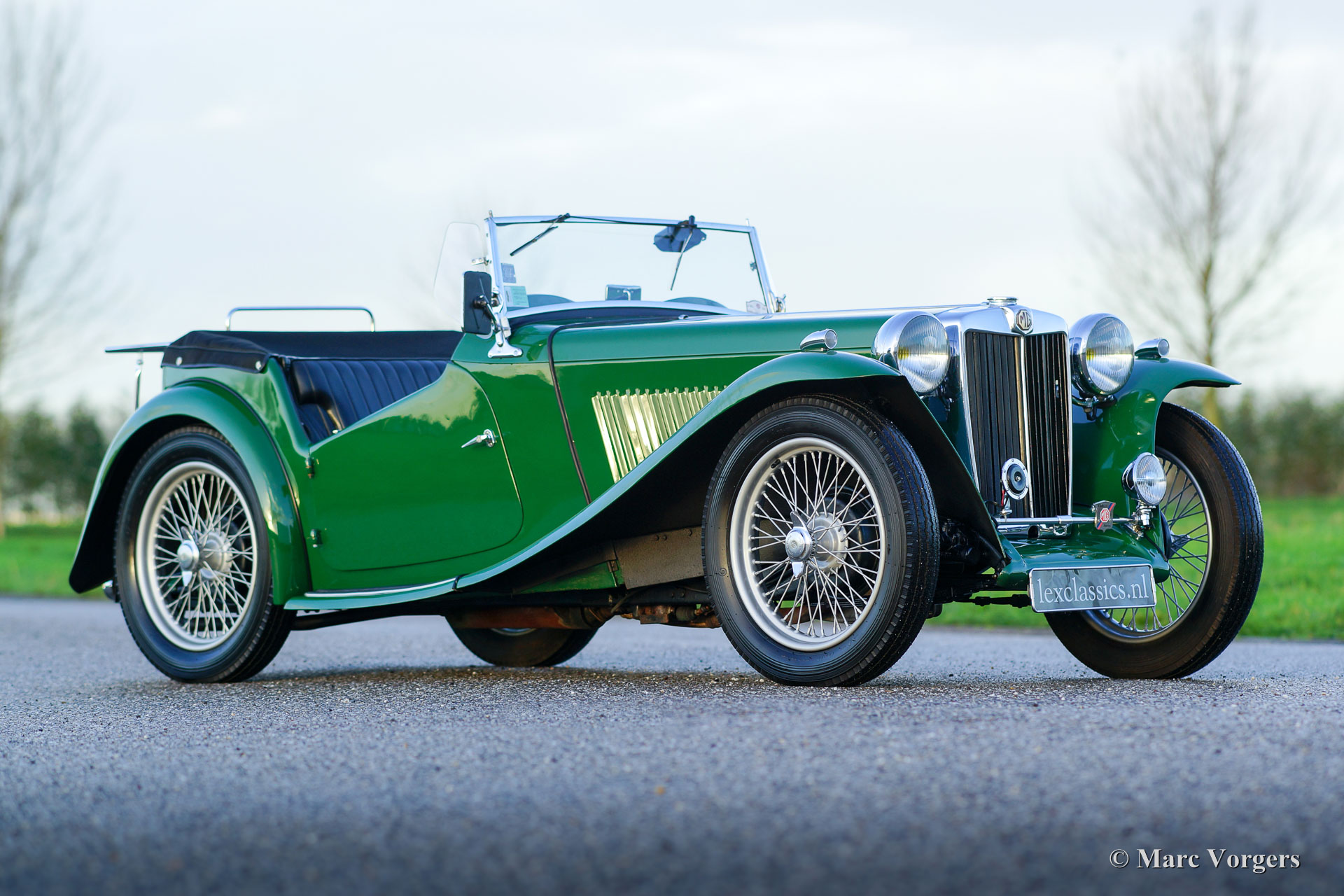 The MG TC was the first new post-war MG. The TC was introduced in 1945, and based on the pre-war TB, it was very similar. A major improvement to the TC was the larger interior, which was increased by 10 cm. The design was similar to the pre-war TB, with swept separate wings, large 19-inch wire wheels and a folding windshield. The MG TB/TC series were much admired by the American soldiers who were on the point of returning to America; this type of small sports car with its smooth handling, was not yet known in America. As a result, many TBs and TCs were shipped to America, and also the MG TC was in great demand at the other side of the pond. All TCs had right-hand steering, leaf springs all around and a 54 bhp four-cylinder engine. In 1950, the MG TC was succeeded by the MG TD.
