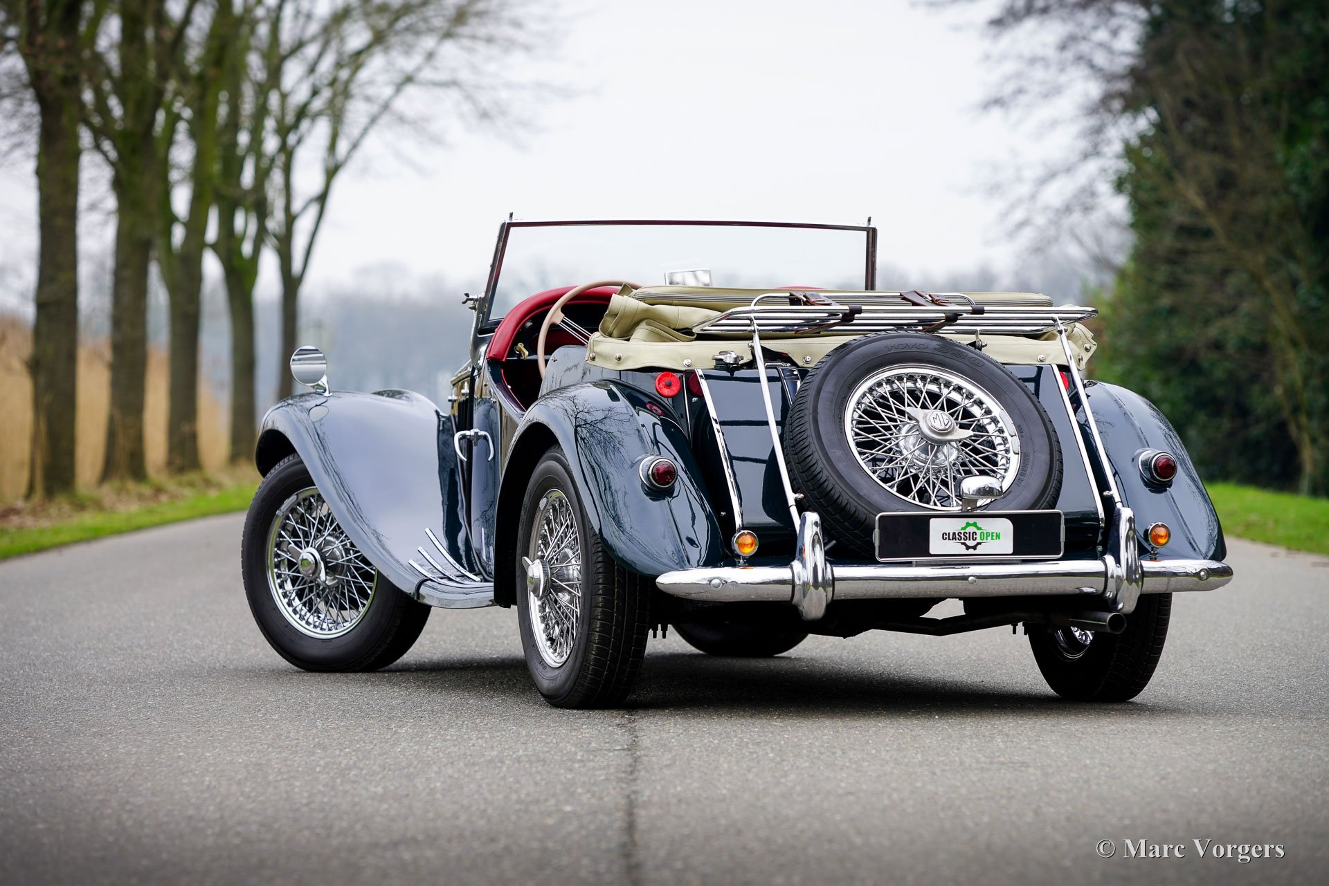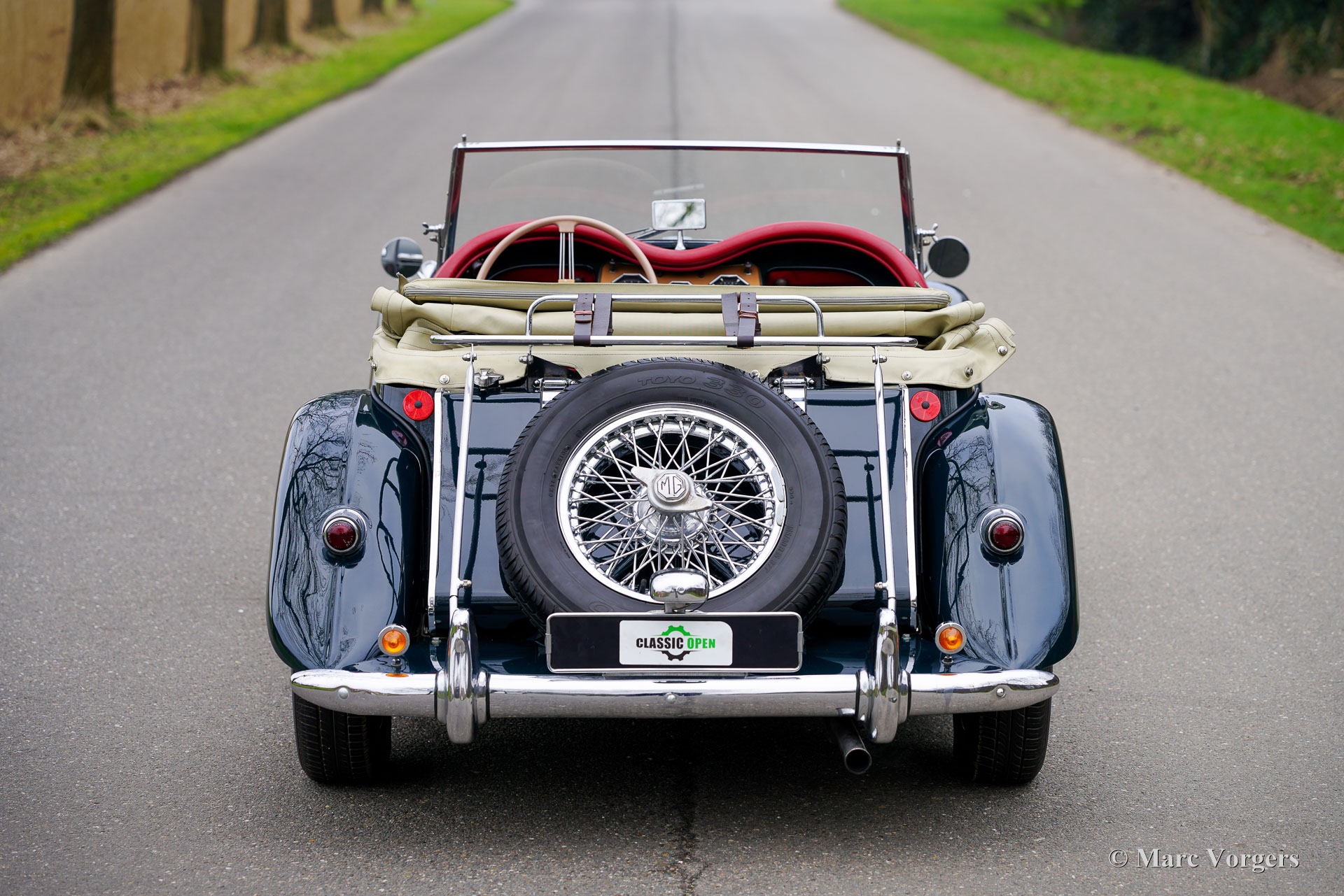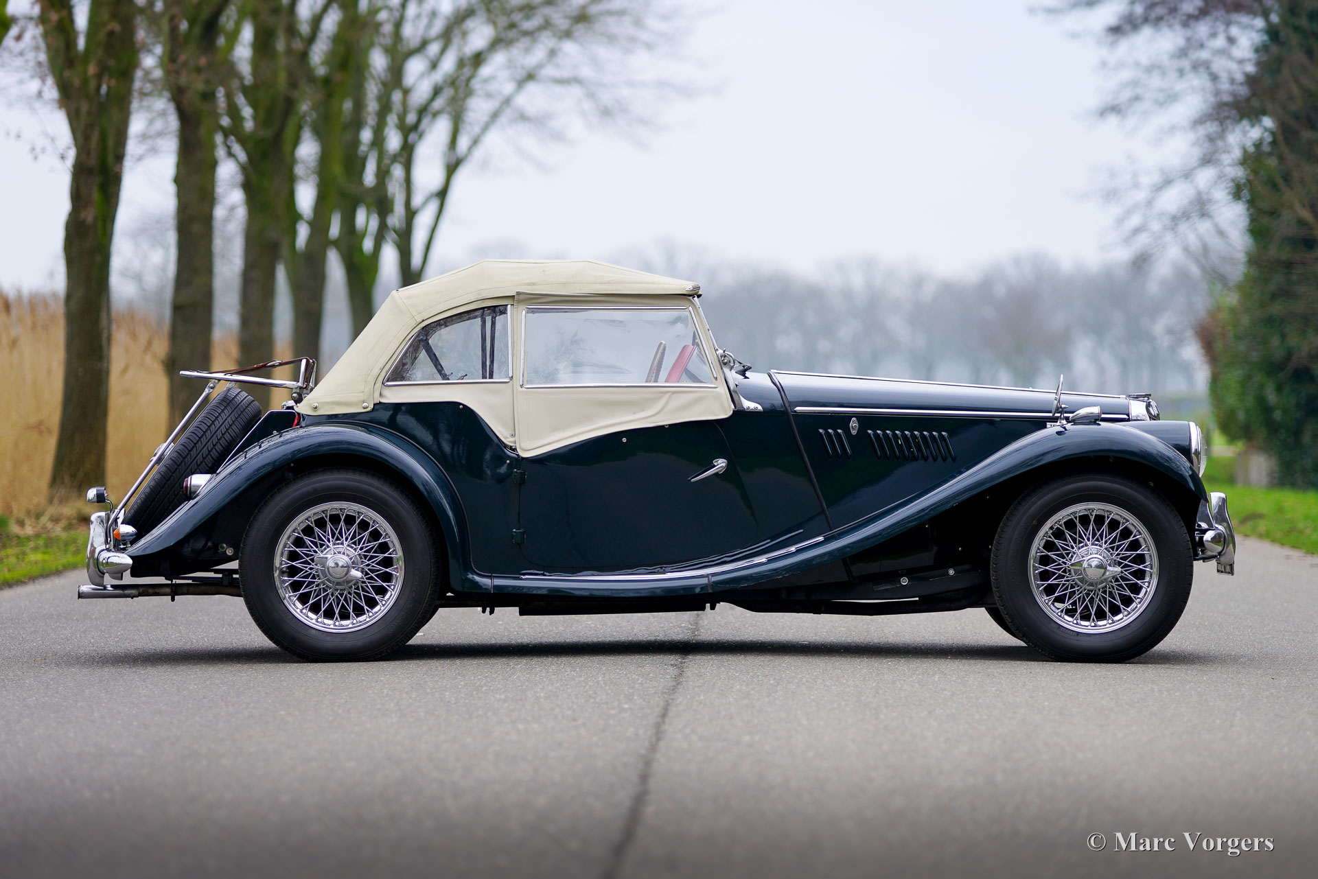 MG TF 1500, année 1955. Couleur vert foncé associée à un intérieur en cuir rouge foncé garni de tapis en caoutchouc noir. Capote et écrans latéraux blanc cassé (Magnolia). La MG TF 1500 est la version finale et ultime de la série MG T qui a commencé avec la MG TA en 1936. La MG TF 1500 est le modèle MG TF le plus rare, seulement 3400 voitures furent produites avec le moteur 1500 de 65 ch. La MG TF était le dernier effort de MG pour maintenir vivante la tradition des voitures de sport britanniques ouvertes d'après-guerre. Comparée à la MG TD, la MG TF semble beaucoup plus élégante, plus rapide et raffinée. Les phares sont intégrés dans les ailes avant et l'intérieur offre plus d'espace et de confort. Une belle touche de design est que les jauges du tableau de bord ont la forme du logo octogonal MG. Cette magnifique MG TF 1500 fut restaurée détaillée dans le passé. La voiture est en très bon état et roule à merveille. Le moteur fut récemment révisé. Ce fantastique roadster britannique classique est équipé de roues à rayons chromées, d'un porte-bagages chromé et d'un chauffage intérieur (rare !). Cette MG TF 1500 est une merveilleuse voiture vintage à chérir dans votre garage et à emporter pour de délicieuses balades au printemps, en été et en automne sur des routes de campagne sinueuses. Prenez ce panier de pique-nique et passez un moment splendide avec votre partenaire ou ami(e) !