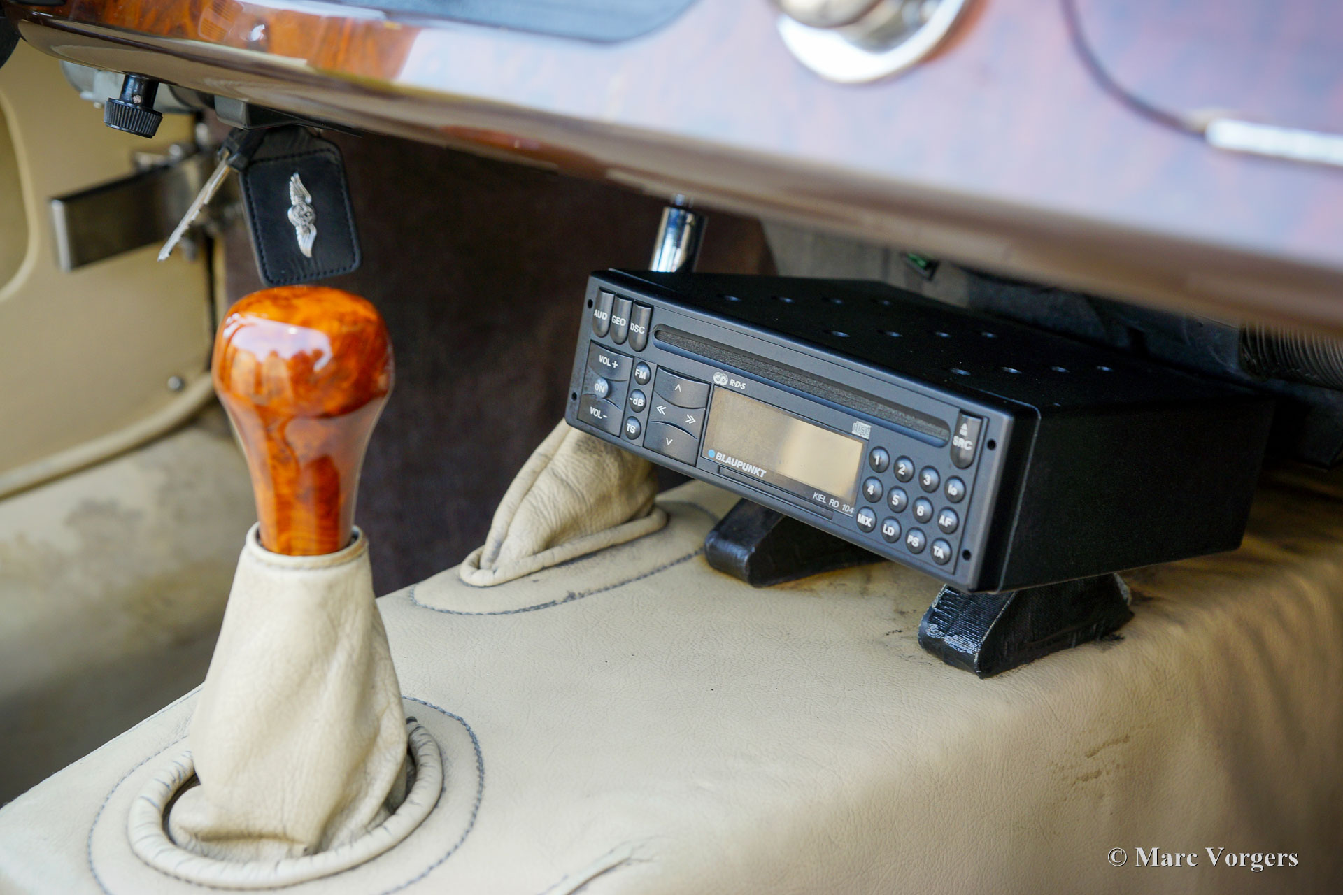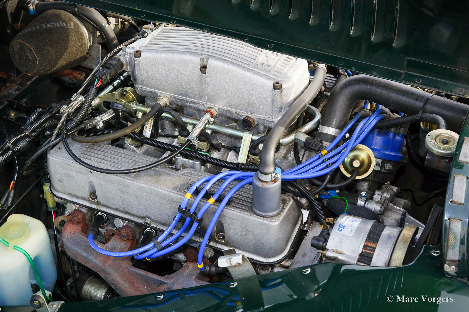 Morgan +8 3,9 Litre, année 1994. Couleur vert foncé (Connaught Green) associée à un intérieur en cuir beige (Stone) garni d'un tapis noir. Capot noir, couvre-tonneau noir et cadres des écrans latéraux en aluminium. Cette magnifique Morgan +8 fut vendue neuve en Allemagne. La voiture fut immatriculée le 4 février 1994. En octobre 2001, la voiture fut importée aux Pays-Bas. De 2001 à 2024, la voiture a connu un propriétaire passionné ! La voiture fut entretenue ponctuellement par des spécialistes professionnels. Le dernier service fut réalisé par Louwman Exclusive, partenaire officiel de Morgan, à Utrecht, aux Pays-Bas. Cette belle Morgan est accompagné d'un historique (et de service) complet. Le Morgan +8 est une étape importante dans l’histoire de Morgan ; le +8 est le Morgan classique le plus impressionnant jamais construit. Lorsque Triumph a abandonné le moteur Triumph TR 4, Morgan a trouvé un formidable remplaçant dans le légendaire Rover V8 3500 qui vient d'être introduit dans les voitures de luxe Rover P5 et P6. Le V8 en aluminium avait à peu près le même poids que le moteur 4 cylindres en fonte TR4 et offrait une augmentation de puissance de 33 % pour 55 ch. ! Le moteur à injection de 3,9 litres fut introduit en 1990 avec une puissance de 172 ch. et un couple de 300 Nm ! Le puissant moteur V8 a fait de la Morgan +8 légère (950 kilogrammes) une impressionnante voiture de sport avec une accélération de 0 à 100 km/h en seulement 5,5 secondes ! Cette merveilleuse Morgan +8 3,9 litres est dans un bon à très bon état et présente des traces normales d'utilisation. L'intérieur, le compartiment moteur et la peinture présentent des traces d'utilisation et d'âge. La voiture présente tous les détails d'origine, y compris les magnifiques jantes en alliage d'origine) et est équipée de plusieurs extras comme un porte-bagages, un tableau de bord en noyer, un volant sport avec jante gainée de cuir et un autoradio Blaupunkt Kiel RD 104 avec lecteur CD. Il s'agit d’un Morgan +8 3,9 litres désirable et impressionnante !