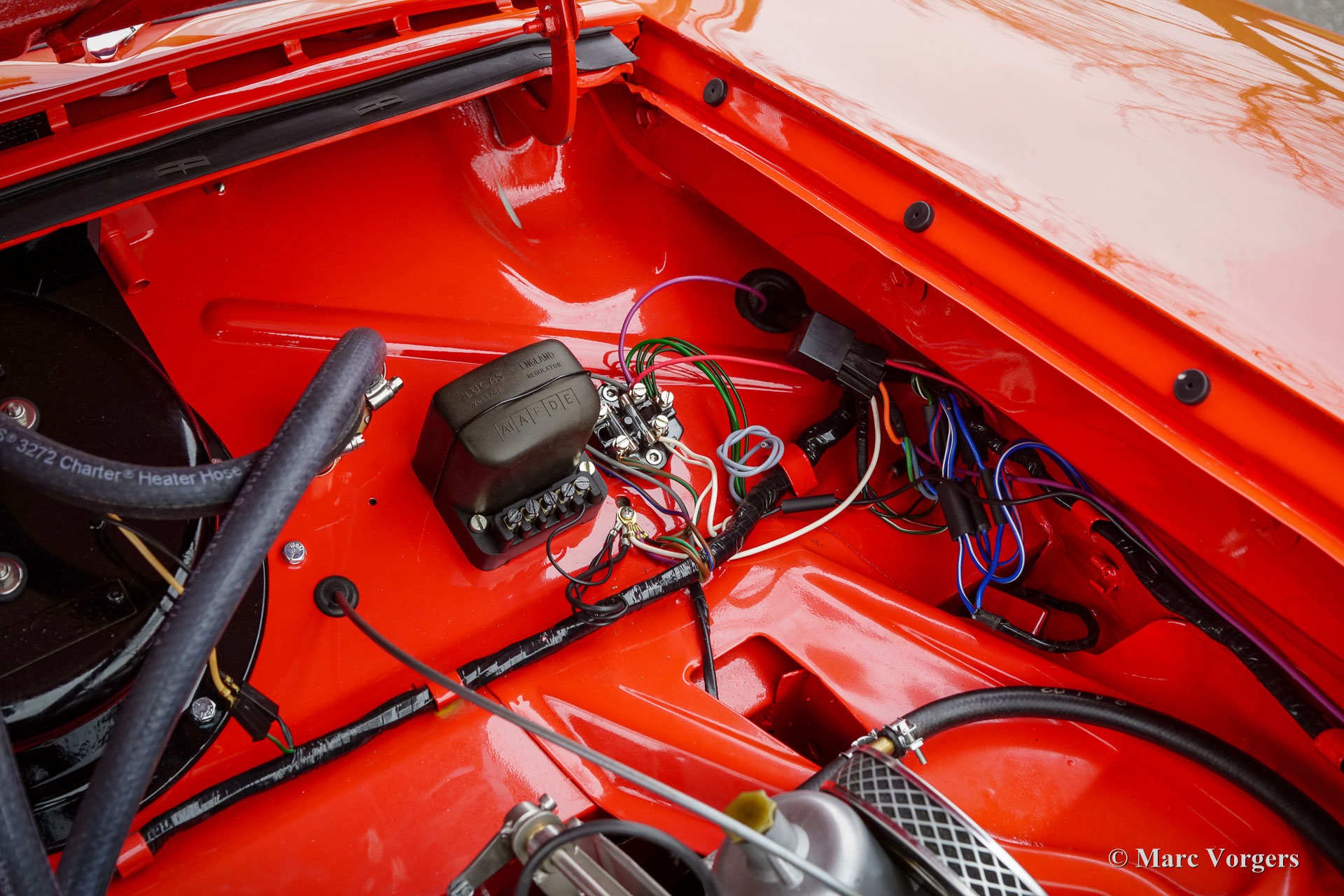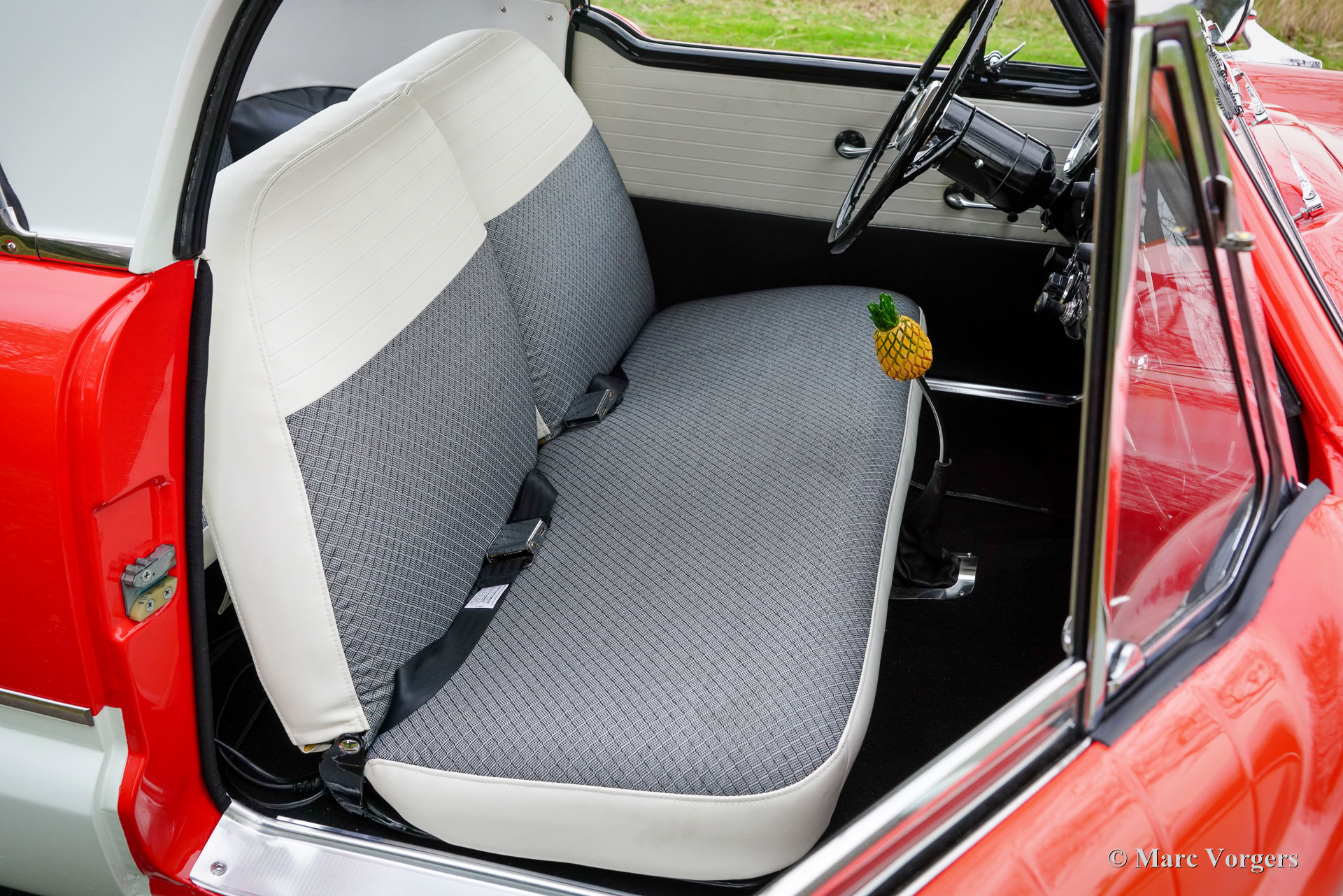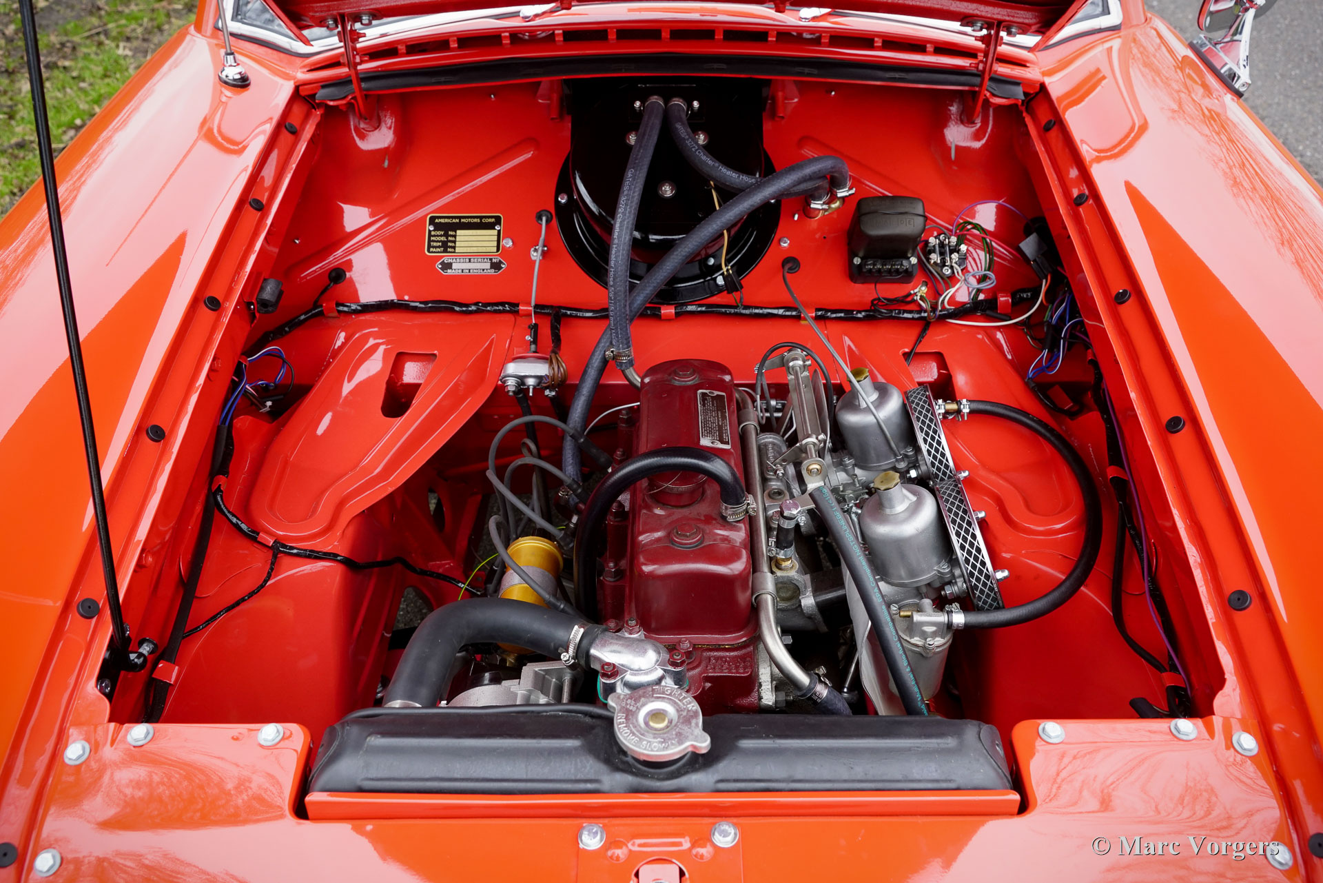 Nash Metropolitan, année 1959. Couleur rouge sur blanc crème, combiné avec un intérieur en tissu/vinyle gris/blanc garni d'un tapis noir. La Nash Metropolitan est une automobile américaine assemblée en Angleterre et commercialisée de 1953 à 1961. Environ 60 000 voitures furent produites au cours de cette période. Le Nash Metropolitan est équipé du célèbre moteur série A de 1 500 cm3 de la MG MGA. Ce magnifique exemplaire fut entièrement restauré, la voiture est dans un état TOP et la voiture roule parfaitement. Les coûts et les efforts n'ont pas été épargnés pour viser la perfection. La voiture fut modifiée et améliorée sur plusieurs points ; des freins à disque étaient installés sur les roues avant et une boîte de vitesses Ford à 5 vitesses, un allumage électronique et un alternateur étaient installés. La Nash Metropolitan montre beaucoup de caractère et les nombreux détails merveilleux ne cessent d'apparaître sur la voiture. La Nash Metropolitan est une voiture anglo-américaine qui trouve une place de choix dans les collections de voitures britanniques et américaines. C'est un SUPERBE exemple !