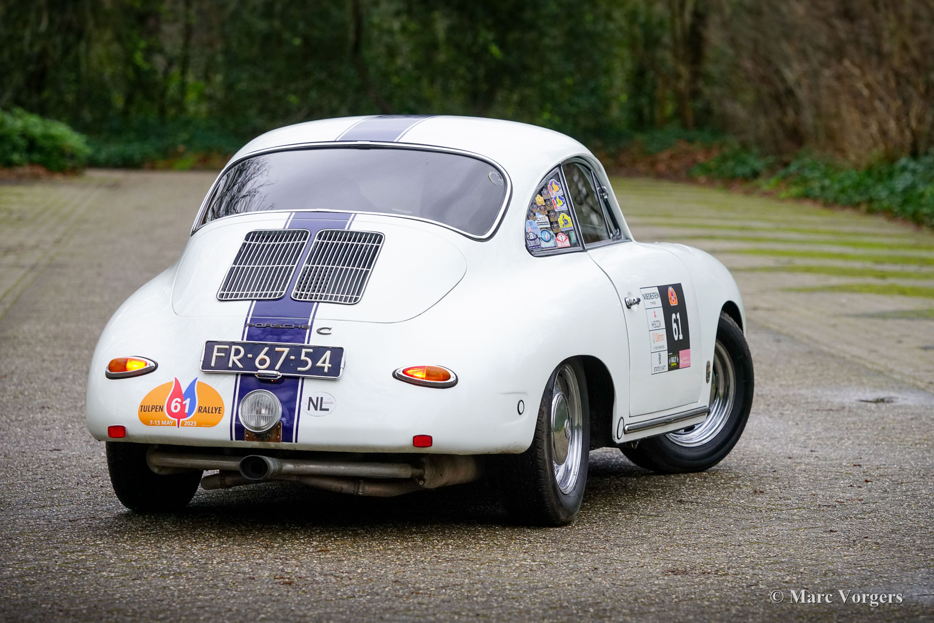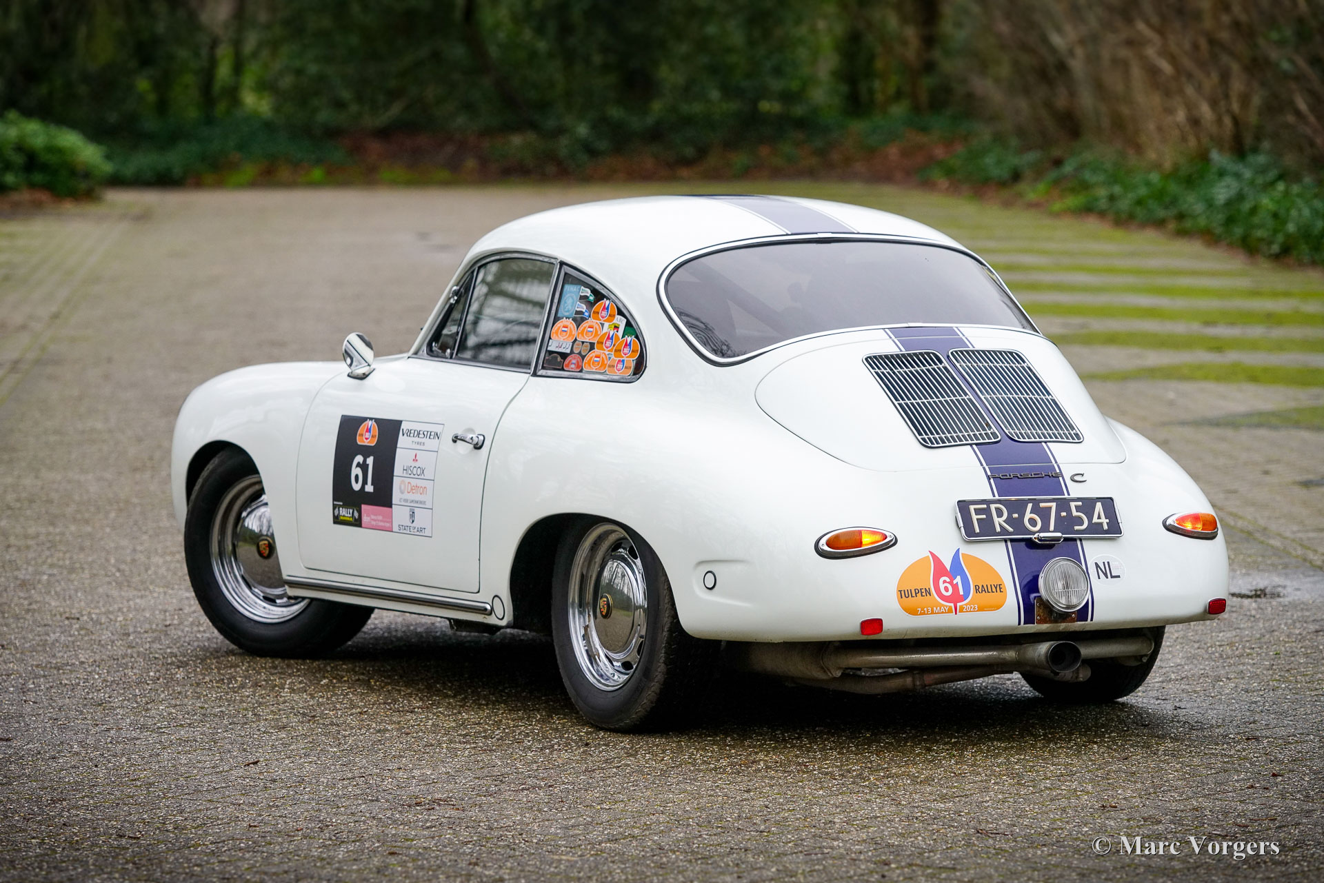 Porsche 356 1600 C Coupé voiture de rallye, année 1965. Première immatriculation le 5 mars 1965. Couleur extérieure blanche associée à un intérieur rallye noir. Ce coupé sportif Porsche 356 fut vendu neuf aux Pays-Bas. La voiture fut appréciée par le propriétaire actuel depuis 2009 et elle fut entretenue par Classic Job pendant de nombreuses années. La voiture a participé à des dizaines d'événements de rallye historiques depuis les années 1960. Le plus ancien autocollant « Tulpen Rallye » sur la lunette arrière gauche date de 1968 ! La voiture a participé à huit éditions de « Tulpen Rallye » (jusqu'en 2023), au rallye Spa-Sofia-Liège et à de nombreux événements nationaux (touring/régularité). La voiture est en bon état et solide, montrant des signes évidents d'utilisation et de vieillissement. La carrosserie est très saine et la mécanique est prête pour les prochains défis ! Ce robuste coupé Porsche 356 C est entièrement préparé avec des instruments de rallye et des lampes auxiliaires. Cette voiture de rallye Porsche 356 est votre ticket pour participer à n'importe quel événement historique (rallye). Une voiture de rallye très fiable qui apportera joie et excitation à son ou ses nouveaux propriétaires aventureux !