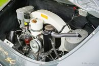 The Porsche 356-001 was built using a chassis with tubular framework covered with aluminium body panels. Mechanically the car was based on Volkswagen components. The Porsche 356-001 was equipped with a center mounted engine located just in front of the rear axle.