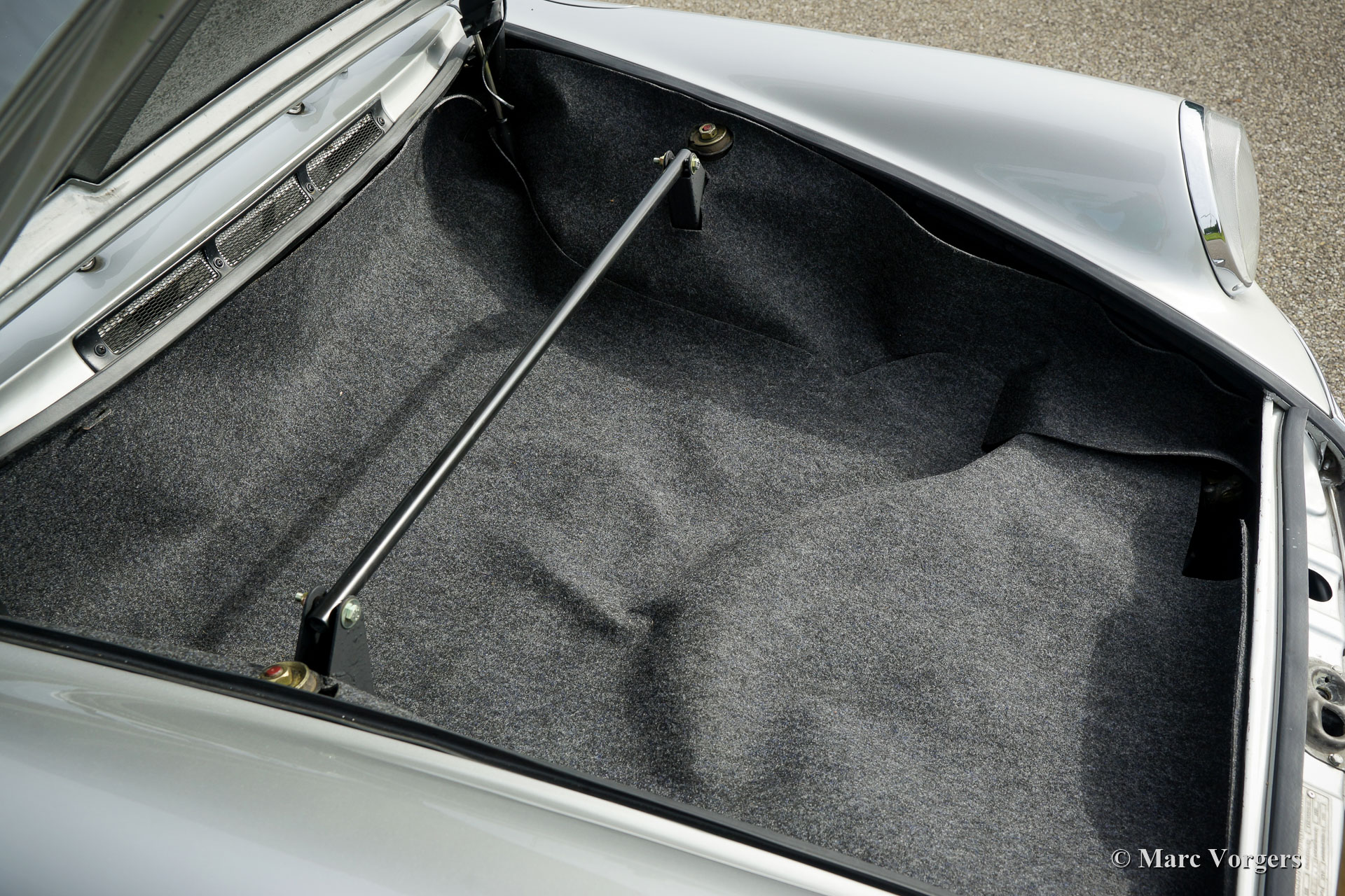 The Porsche 911 was designed with a steel unitary bodywork construction in which the engine was located behind the rear axle. The 911 engine is a air-cooled six cylinder "boxer" engine. The suspension of the Porsche 911 was independent from the start as was a five speed gearbox with floor shift.