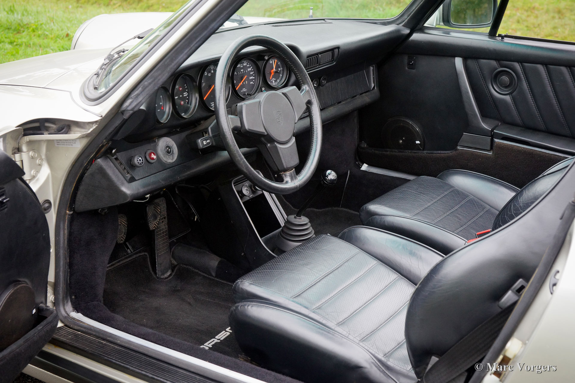 Porsche 911 Carrera 3.2 cabriolet, année 1984. Numéro de châssis WPOZZZ91ZES1707XX avec le moteur d'origine et la boîte de vitesses d’origine : «matching numbers». Couleur 'Zinn Metallic' (code couleur Porsche 956) avec un intérieur en cuir noir et tapis noir. Couleurs originales d'usine. Capot, couvercle de la hotte et couvercle de tonneau en mohair noir. Cette magnifique Porsche 911 Carrera 3.2 fut vendue neuve aux USA. En 1997, la voiture fut importée aux Pays-Bas où elle fut adaptée aux spécifications européennes, y compris l'installation d'un compteur kilomètre et de vitesse km/h. De neuf cette amende 911 a conduit 105.000 miles. Il s'agit d'une Carrera 3.2 1984 en très bonne à excellente condition d'origine ! La voiture fut entretenue ponctuellement par des spécialistes Porsche au fil des ans. Toutes les factures et le livret de service sont présents. La voiture est très originale ; les autocollants d'usine sont toujours en place, tout comme les sièges d'origine 911 Turbo. Récemment, les jantes en alliage léger Fuchs furent superbement restaurées ! La voiture est équipée d'un système d'alarme certifié. C'est une Porsche 911 3.2 cabriolet très originale et parfaitement conduite !