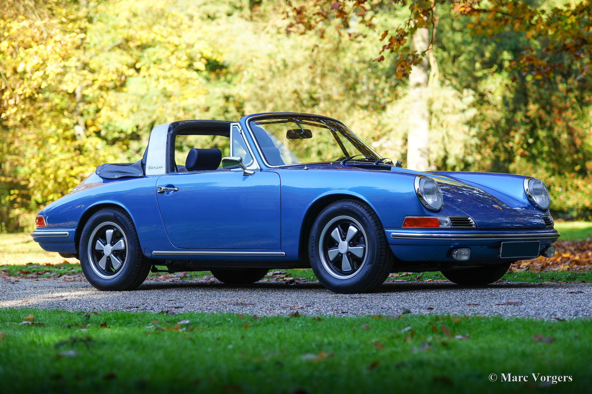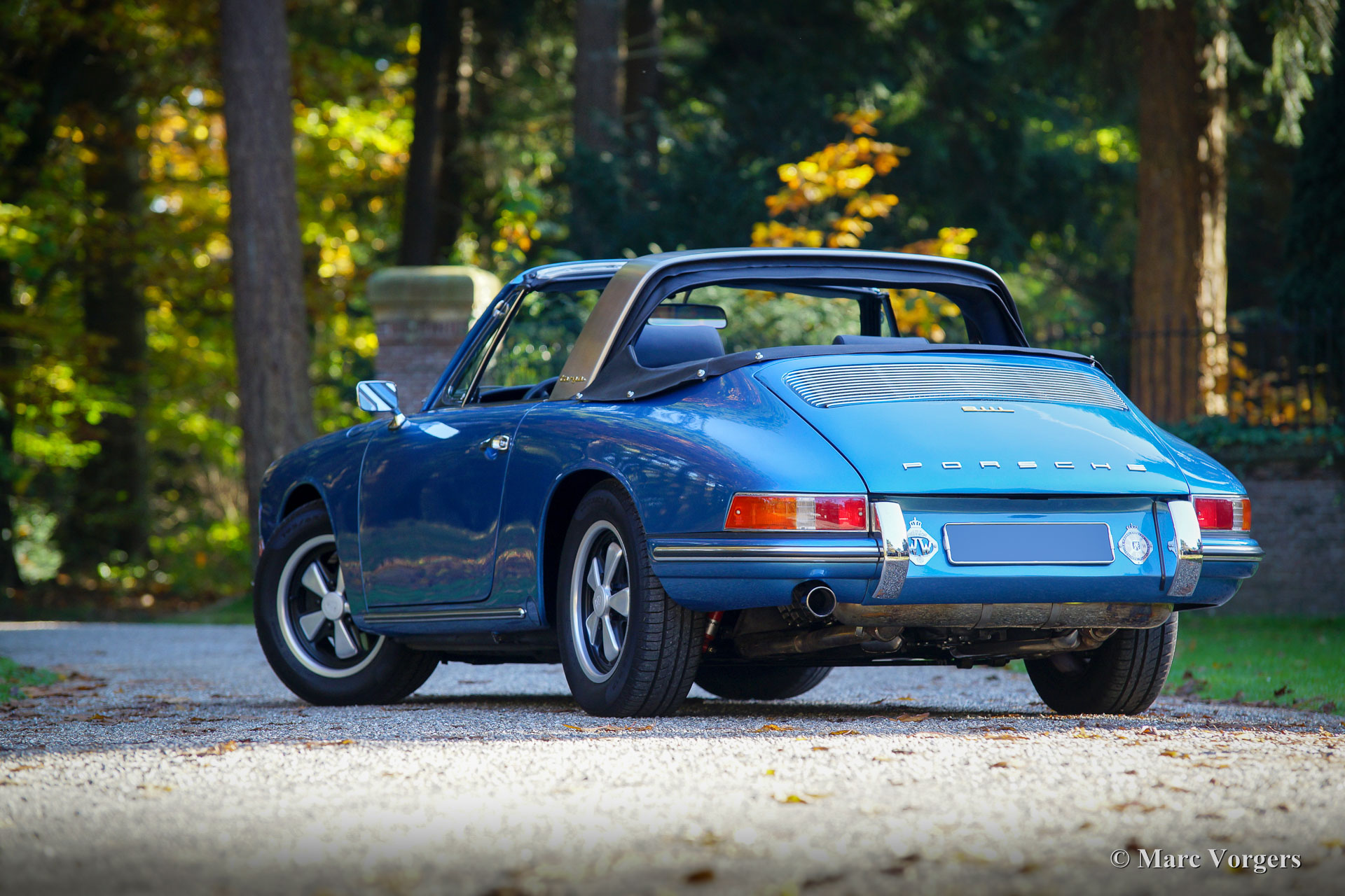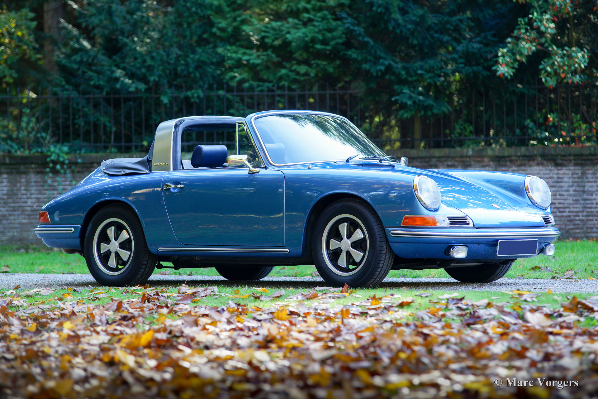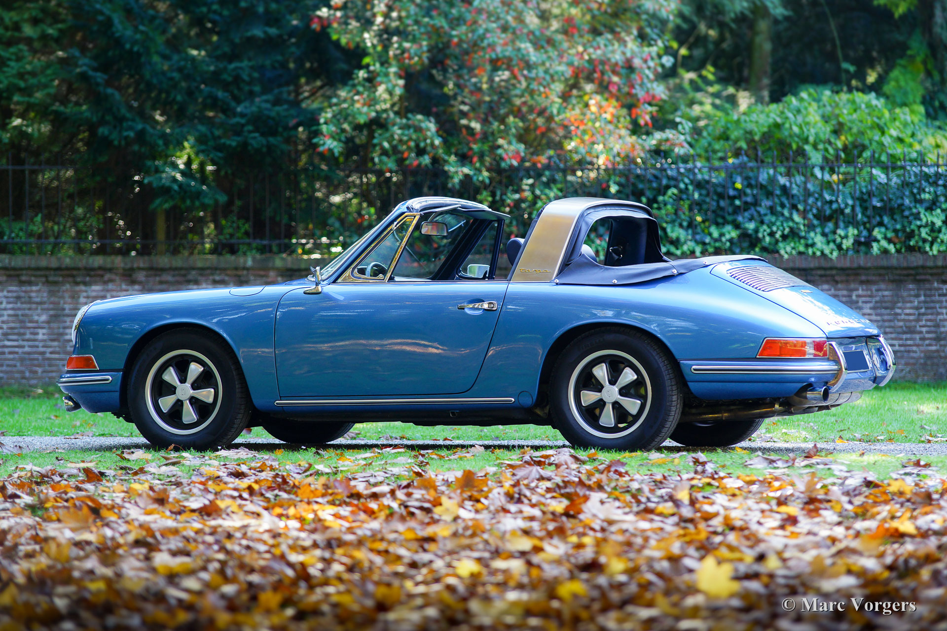 Porsche 911 L 2.0 Targa 'soft window', année 1968. 'Matching numbers'. Couleur bleu métallique avec un intérieur en cuir bleu et tapis bleu. Cette fabuleuse Porsche 911 L est une Targa rare et recherchée tôt 'soft window'. Un véritable objet de collection dont seulement 121 exemplaires ont été construits en 1968. Ce 911 Targa a été restauré et révisé détaillée par la firme spécialisée de Siemerink aux Pays-Bas. Le moteur est équipé de tendeurs de chaîne hydrauliques. Après la fin de la restauration de la voiture a parcouru seulement 3500 km. Cette Porsche 911 est en superbe état TOP; Concours ! La voiture regarde, conduit et se sent NOUVEAU ! Cette belle 911 dispose de roues en alliage Fuchs avec pneus Pirelli Cinturato et d'un système d'alarme. C'est une occasion rare d'acheter une Porsche 911 L 'soft window' Targa.