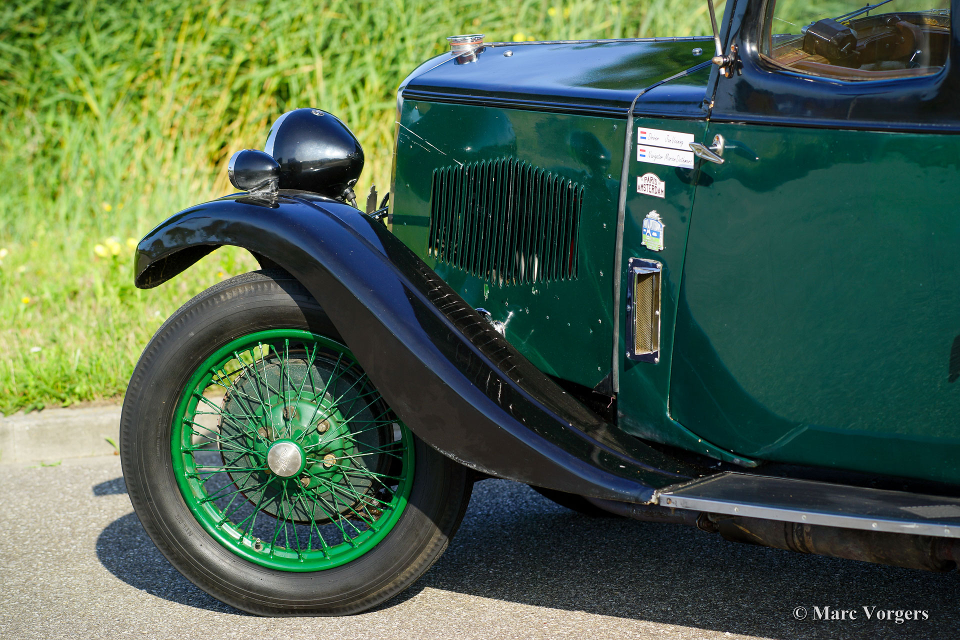 Riley Nine ‘Monaco’, année 1933. Couleur bicolore noir-vert combinée à un intérieur en cuir vert. Cette remarquable Riley « Monaco » berline d’avant-guerre est l’un des tout premiers modèles Riley à carrosserie en aluminium recouvert de carrosserie. Les types précédents comportaient une carrosserie de style Weyman (cadre en bois recouvert d'insonorisation en crin de cheval et couche supérieure en vinyle). Ce riley est dans un état original superbe, montrant des charges de patine (signes d'usure et d'âge) et de très beaux détails originaux. La voiture fut mise à jour mécaniquement et électriquement ; une dynamo à courant alternatif fut installée et la boîte de vitesses fut révisée récemment. La voiture s’est révélée être un compagnon très fiable. La voiture a participé à certains rallyes de voitures d'avant-guerre, notamment le 2018 Paris - Amsterdam. Ce charmant Riley Nine « Monaco » est alimenté par un moteur de 35 ch. quatre cylindres en ligne de 1087 cm3. La voiture est équipée de freins à tambour à câble. Ce Riley est peut-être votre billet d'entrée dans le monde de la conduite de rallye « pre-war » !