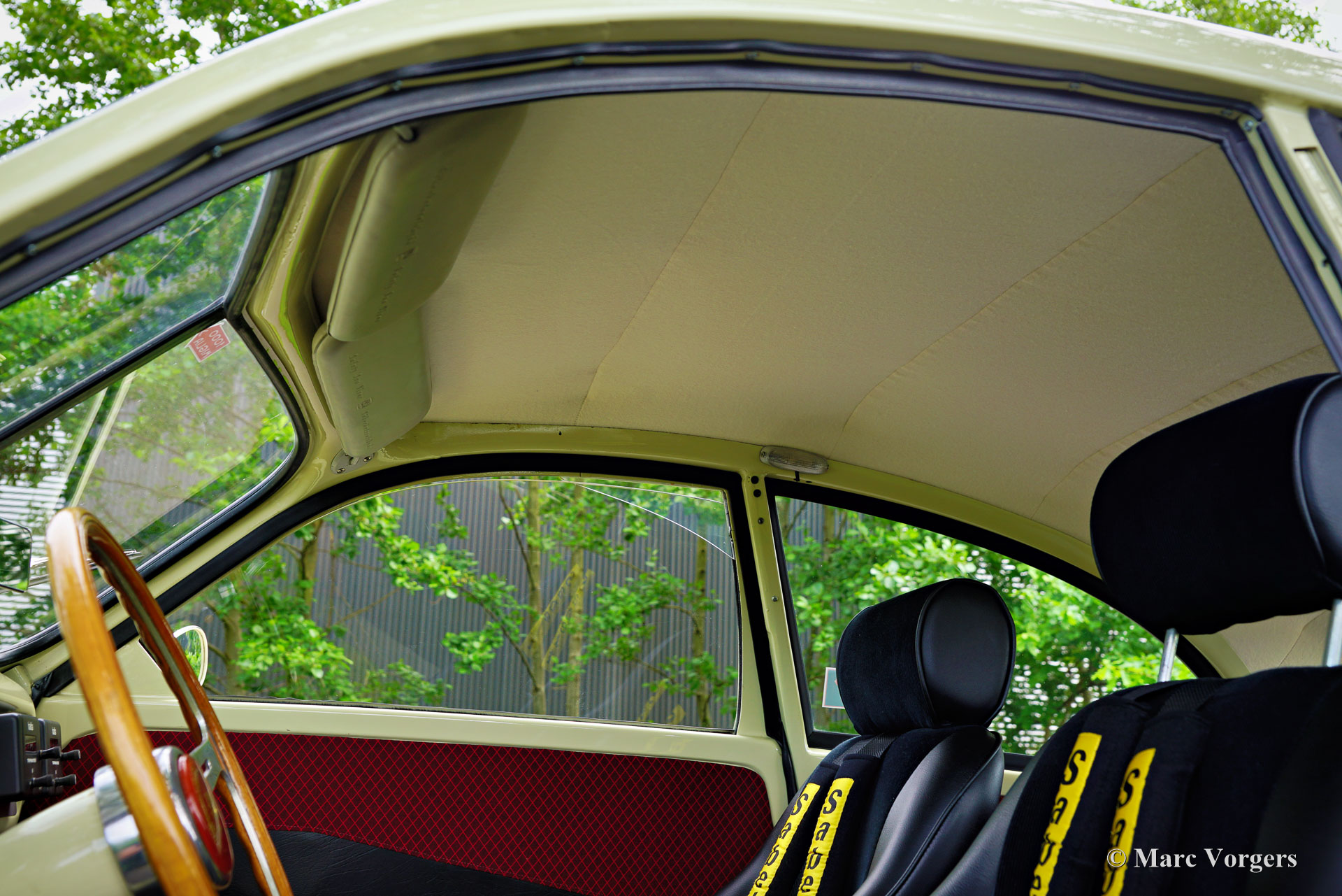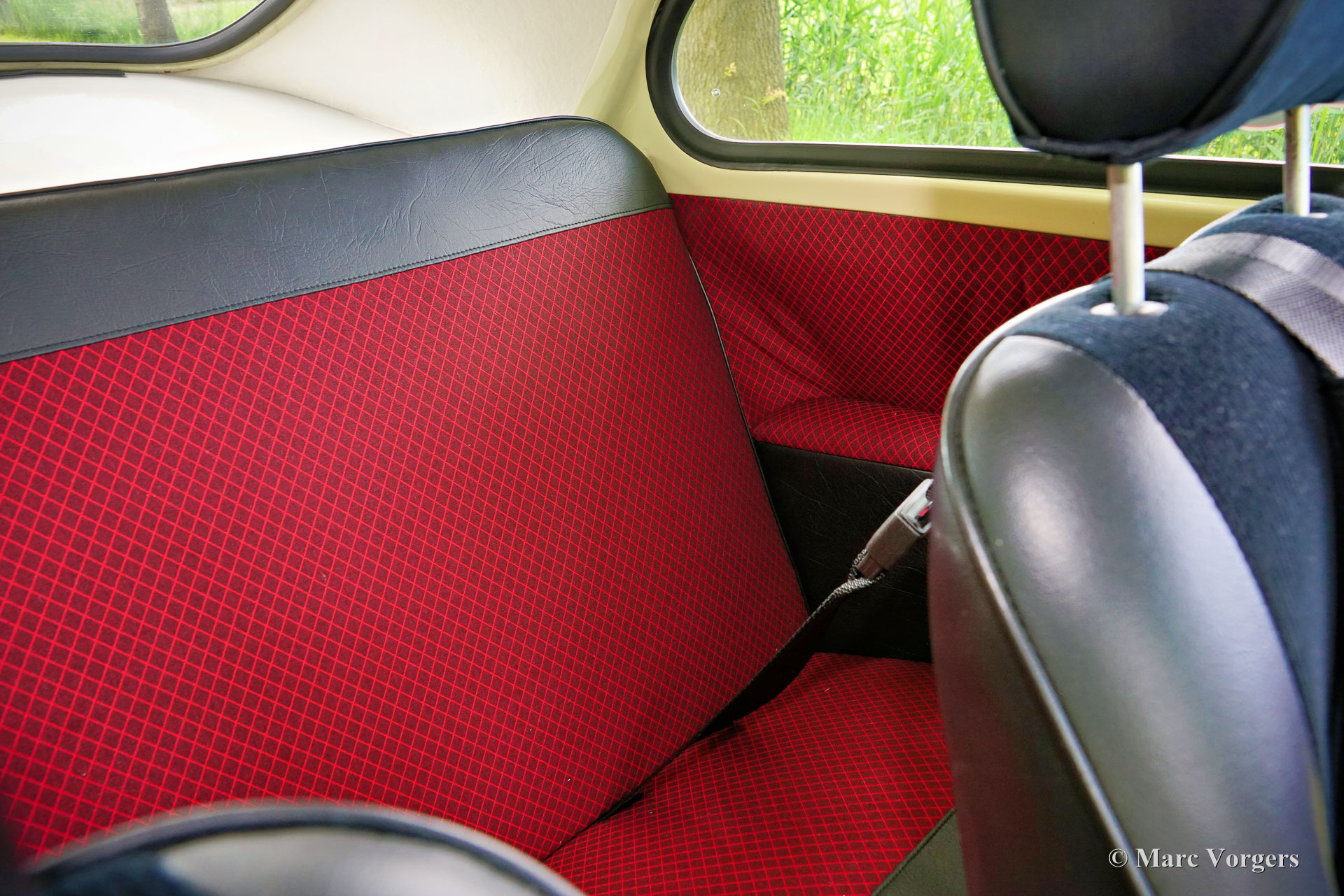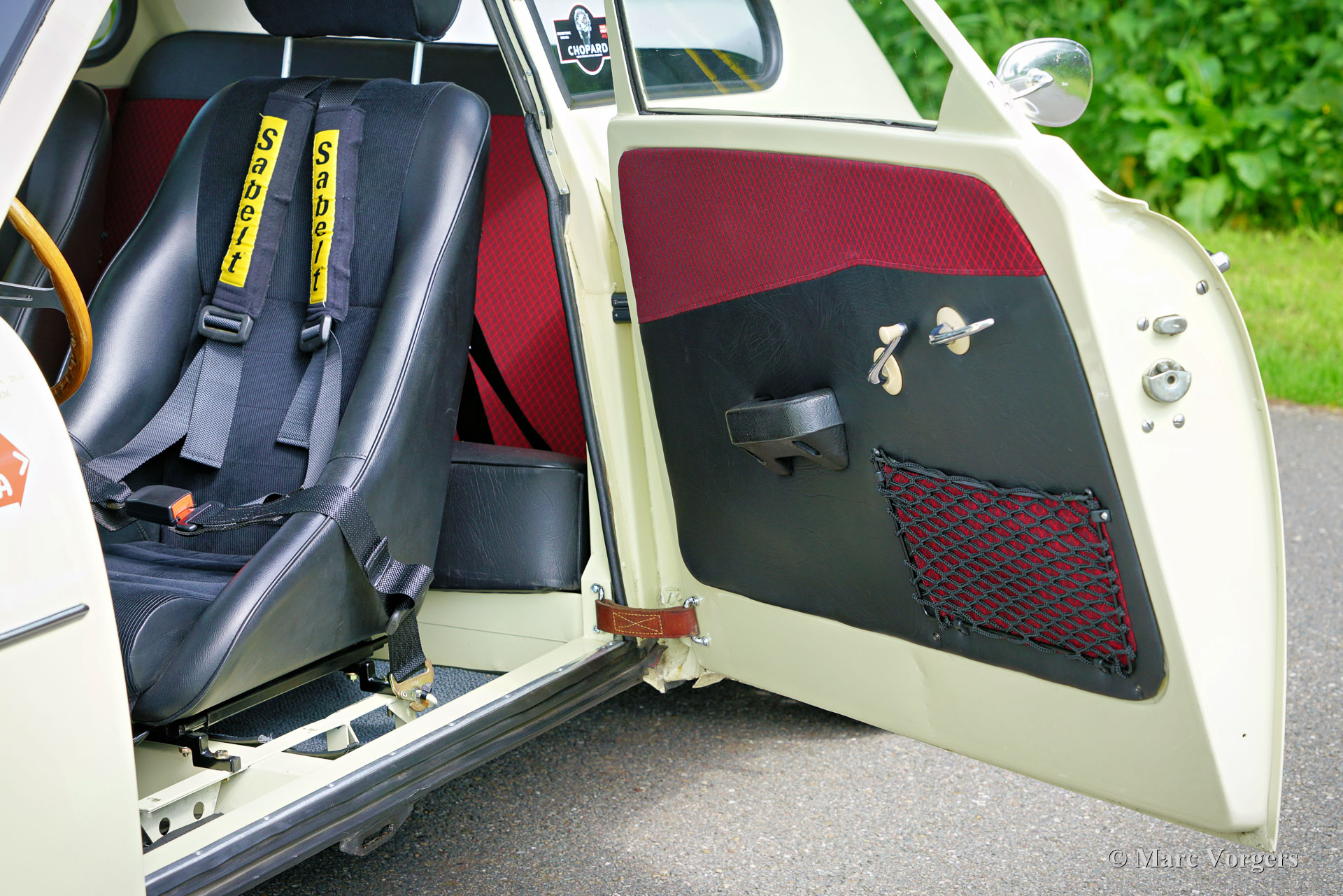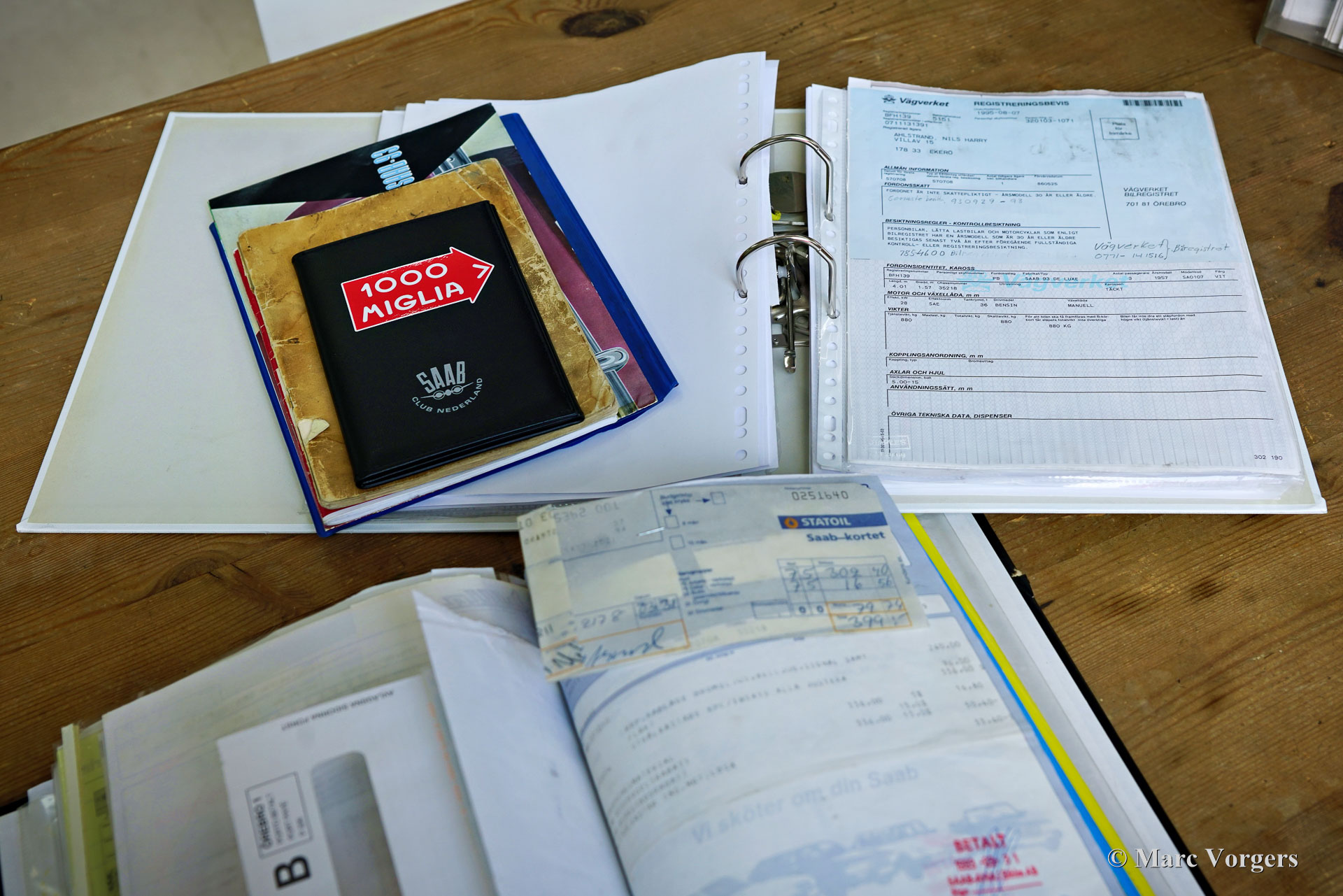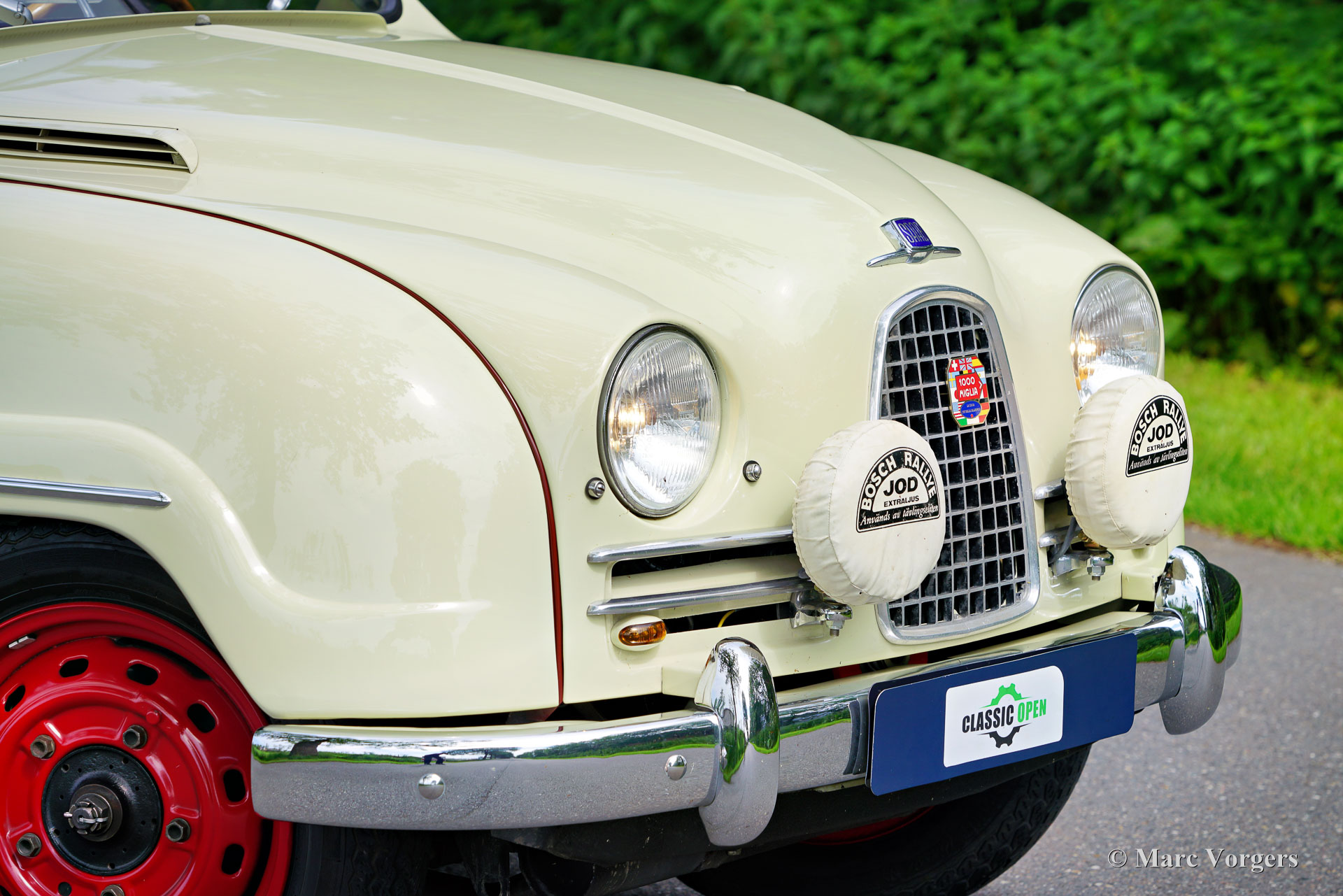 Saab 93A De Luxe, année 1957. Couleur beige combinée à un intérieur bicolore noir-rouge. Cette magnifique Saab 93A De Luxe fut vendue neuve en Suède. En 2012, la voiture fut importée aux Pays-Bas et préparée pour participer aux Mille Miglia (1000 Miglia) 2013 en Italie. Cette magnifique Saab 93 était l'une des 357 voitures historiques autorisées à participer en 2013, et la seule Saab ! Spécialement pour cet événement, la voiture était équipée de deux sièges baquets noirs avec harnais de sécurité Sparco à 4 points, les sièges (et ceintures de sécurité) d'origine sont toujours avec la voiture et peuvent facilement être remis en place. Depuis le premier jour, la voiture a connu quatre propriétaires, l'histoire est entièrement connue et documentée depuis l'origine, la voiture est livrée avec deux dossiers, un manuel d'instructions suédois et néerlandais et une brochure de vente originale. Cette Saab 93A classique est dans un excellent état et la voiture roule et sonne à merveille ! La carrosserie est tout à fait saine et présente une peinture magnifique. L'intérieur est dans un état merveilleux avec seulement les moindres signes d'utilisation antérieure. Les composants mécaniques sont en très bon état et le moteur a été révisé. La Saab 93 est équipée d'un moteur 3 cylindres en ligne à deux temps et d'une boîte de vitesses manuelle à 4 vitesses avec un levier de vitesses sur la colonne de direction. Le moteur Saab à deux temps ne freine pas sur la compression du moteur grâce à une fonction dite de « free wheel ». La Saab 93 était une voiture de rallye très réussie. De 1956 à 1960, la Saab 93 a participé avec succès à de nombreux rallyes et championnats de rallye importants. En 1957, Charlie Lohmander et Harald Kronegård ont participé à la légendaire course sur route italienne 1000 Miglia. (Puis une course épuisante et très dangereuse sur la voie publique, aujourd'hui un rallye touristique de régularité historique rapide mais sûr). Ils ont participé à la course en privé sans que l'usine Saab soit au courant de leur participation. Leur surprenante victoire de classe n’a été connue qu’après leur retour en Suède ! Grâce à cette participation aux 1000 Miglia, la Saab 93 est une automobile « éligible » aux Mille Miglia. Cette magnifique Saab 93A De Luxe présente de merveilleux détails d'origine comme le volant Saab et le grand tachymètre, et la voiture est équipée de compteurs de distance Halda Tripmaster corrects d'époque.