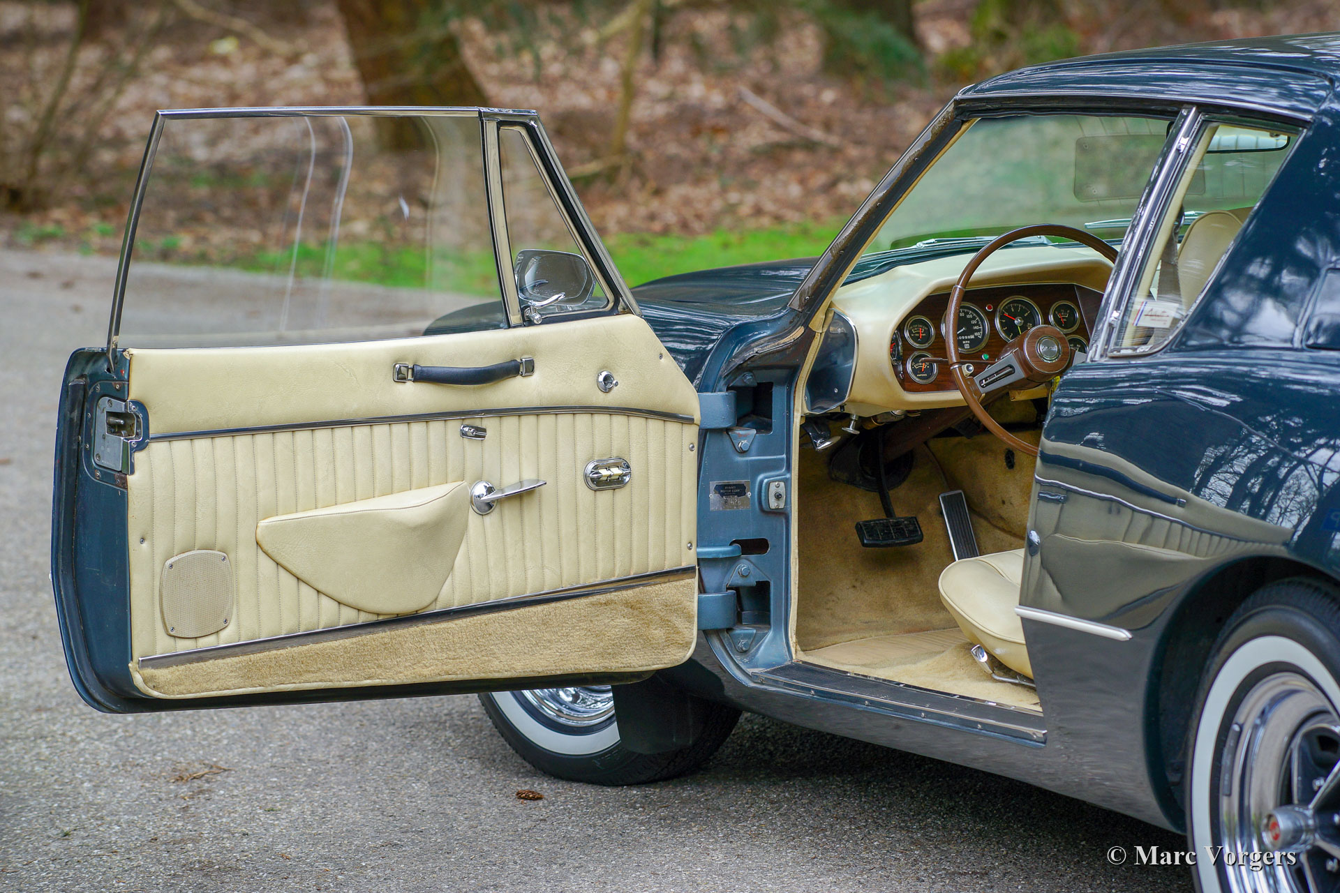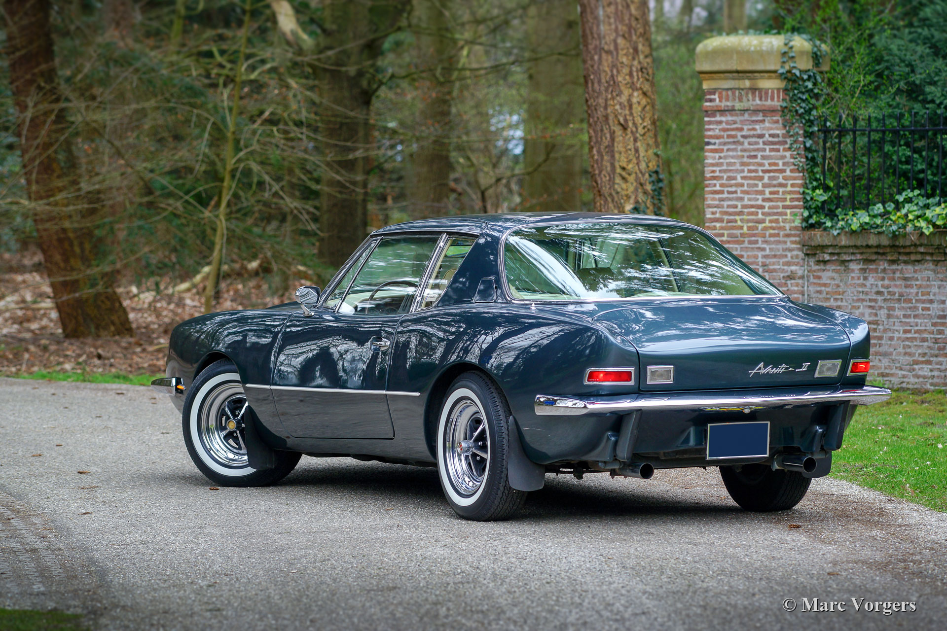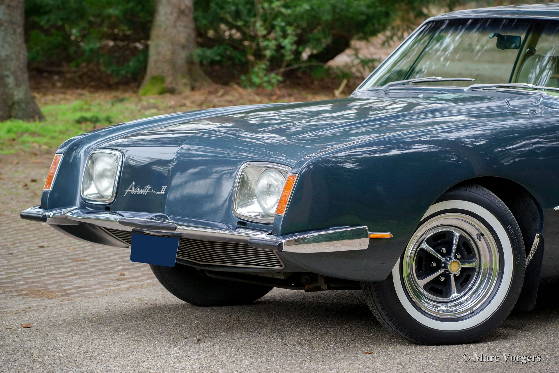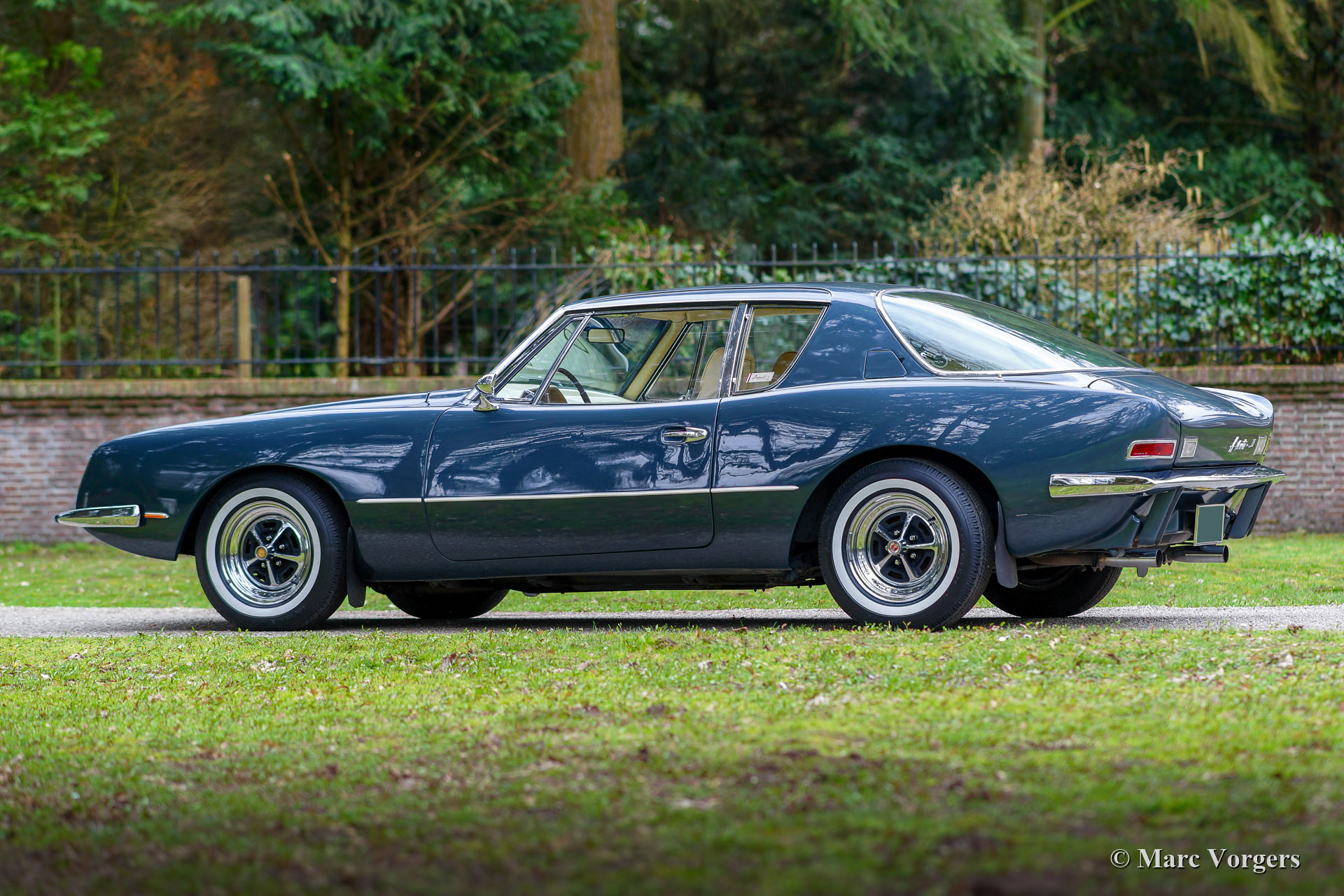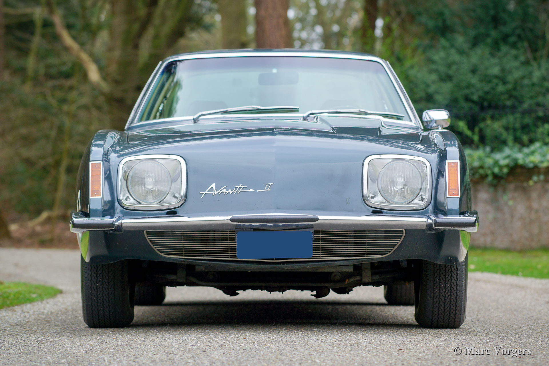 Studebaker Avanti II, année 1971. Couleur bleu métallisé associée à un intérieur en cuir beige et à un tapis beige. Cette magnifique Avanti II fut vendue neuve aux États-Unis. En 2014, l'automobile fut importée aux Pays-Bas. De nouveau la voiture n'a parcouru que 51.000 Miles ; cet Avanti II est dans un état super original ! La Studebaker Avanti a été conçue par l’équipe de conception du designer industriel de renommée mondiale, Raymond Loewy, et la voiture a été introduite en 1962. La carrosserie à l’aspect ultra-moderne fut fabriquée en plastique renforcé à la fibre de verre (GRP). La Studebaker Avanti a été commercialisée comme « America's only four-passenger high-performance personal car ». L'Avanti fut construit jusqu'en décembre 1963 à la fermeture de l'usine de Studebaker South Bend (Indiana, États-Unis). Le nom Avanti, l’outillage et l’usine South Bend furent vendus à deux concessionnaires Studebaker locaux, Nate Altman et Leo Newman, qui ont continué à produire l’Avanti, désormais désigné Avanti II. L'Avanti II présenté est équipé d'un moteur Chevrolet Corvette V8 de 5,3 litres développant 273 chevaux, couplé à une boîte de vitesses automatique et entraînant les roues arrière. Cette magnifique voiture montre tous les détails originaux. C'est un Avanti II super original en très bel état !