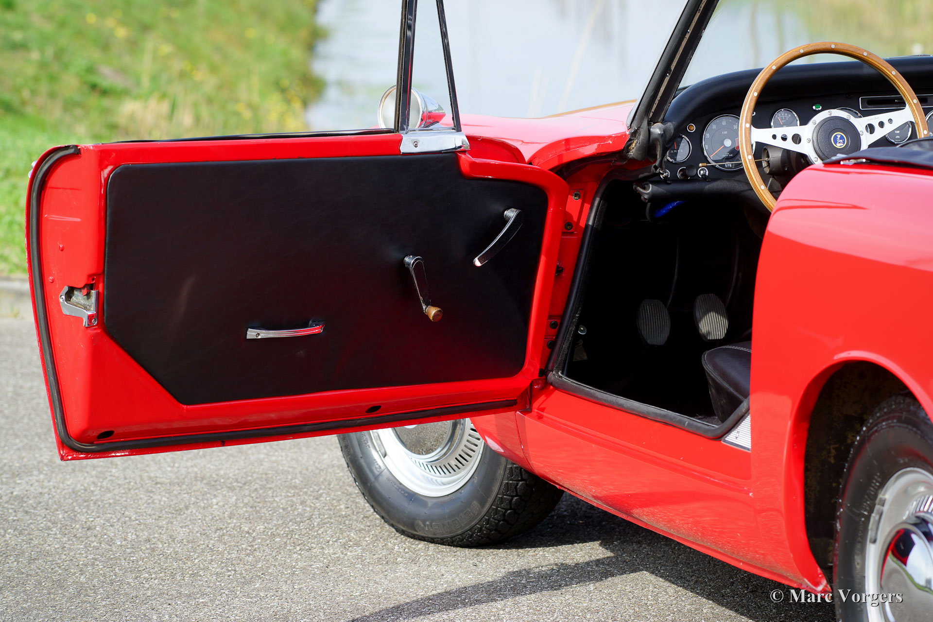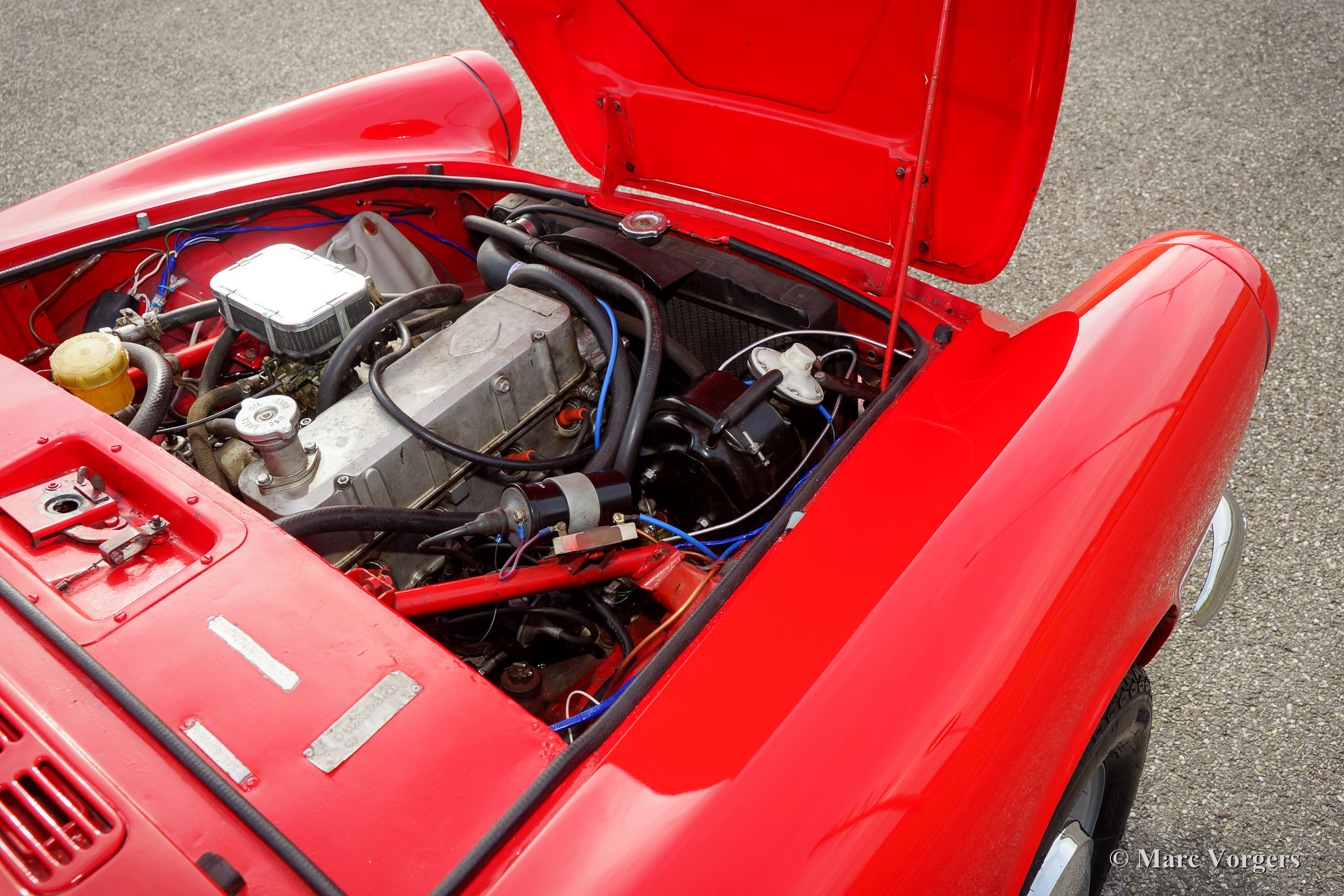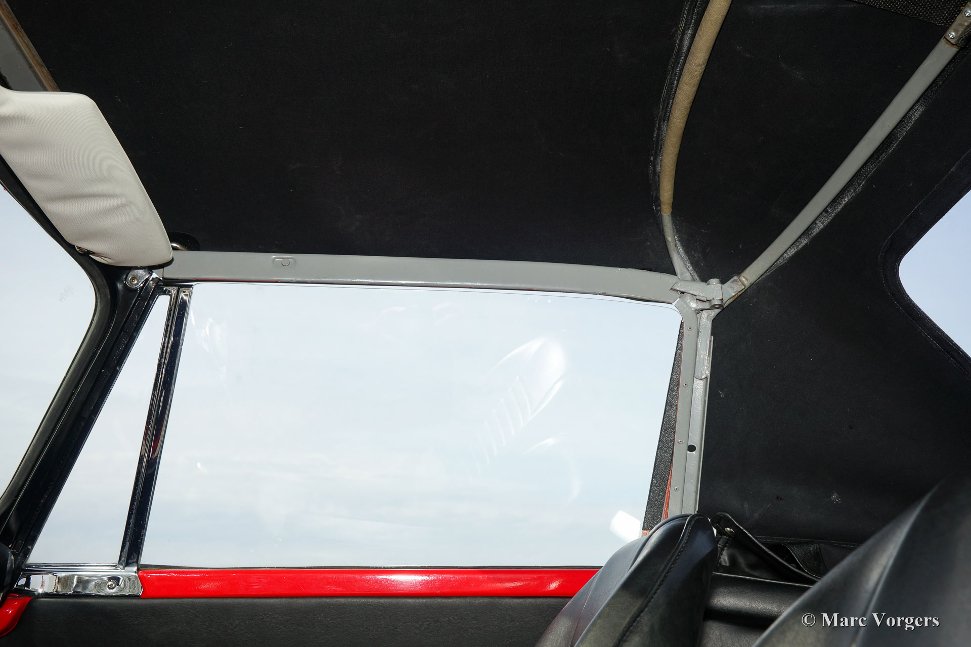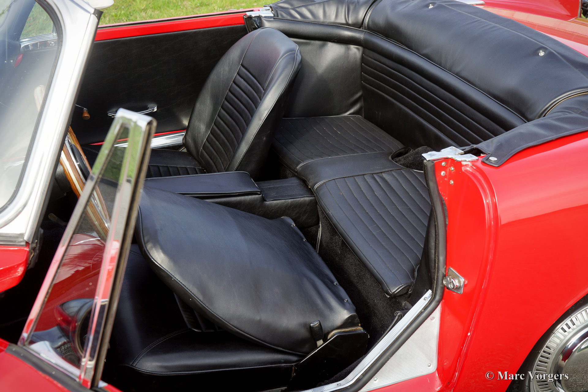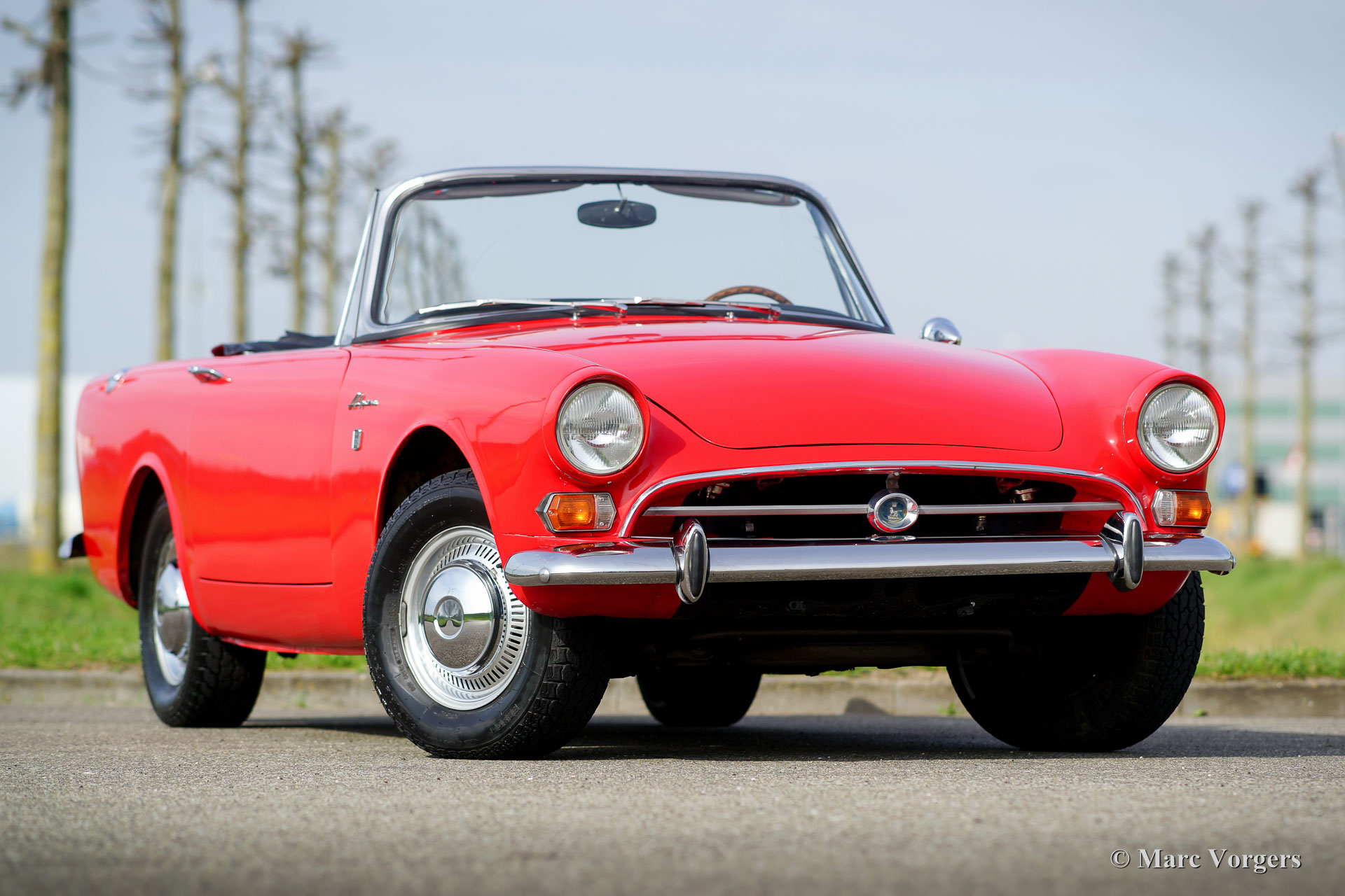Sunbeam Alpine 1725 Série V, année 1966. Couleur rouge avec un intérieur noir, tapis noir et une capote noire. Cette magnifique Sunbeam Alpine fut importée des Etats-Unis aux Pays-Bas en 2013. L'automobile est en excellent état et la voiture roule et pilote délicieusement ! Le Sunbeam Alpine montre des détails de conception fantastiques, influencés par les voitures américaines des années 1950. Les poignées de porte et surtout la mise en place des serrures est remarquable. Ce Sunbeam Alpine est équipé du moteur quatre cylindres de 1725 cc le plus puissant et d'un overdrive Laycock. Après l'importation des Etats-Unis, beaucoup fut amélioré : entre autres le métier à tisser, l'intérieur et le soft-top furent renouvelés. Le Sunbeam Alpine est un convertible britannique pratique avec un petit banc derrière les sièges avant (strictement pour les petits enfants ou les bagages), et un espace de coffre généreuse. Un fantastique Sunbeam Alpine en excellente condition !