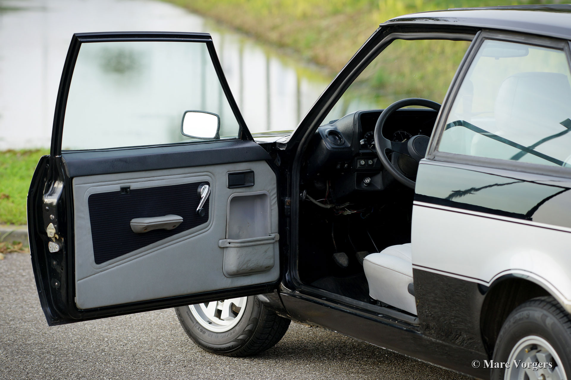 Talbot Sunbeam Lotus, année 1980. Couleur « Embassy Black » avec rayures gris argent associées à un intérieur en tissu gris / noir. C’est une rare Talbot Sunbeam Lotus en état très original, et très bien entretenue. Seules 2308 exemplaires de la Talbot Sunbeam Lotus furent construits de 1977 à 1980. Il s’agit d’une véritable voiture de collection, construite en 1979 et immatriculée pour la première fois en 1980. Elle fait partie d’une collection de voitures particulières aux Pays-Bas. La voiture est bien documentée avec les documents néerlandais et les certificats du Sunbeam Lotus Owners Club. La voiture a récemment été minutieusement inspectée et entretenue par SJ-Sportscars en Grande-Bretagne. Une nouvelle courroie trapézoïdale (de distribution) a été installée, le mécanisme de direction et l'alternateur furent renouvelés, et un nouvel échappement en acier inoxydable fut installé, y compris le collecteur. De plus, le moteur était parfaitement réglé. Le Talbot Sunbeam Lotus est équipé d’un puissant moteur Lotus de 2174 cm3 à quatre cylindres d’une puissance de 145 ch. La boîte de vitesses est une unité à 5 vitesses avec un agencement « dog leg » de course / rallye (première vitesse à l’endroit où vous vous attendez habituellement à trouver la deuxième vitesse). La voiture est équipée d'un entraînement de roue arrière ! Du fait de sa forme et sa taille, on pourrait s’attendre à ce que la Sunbeam Lotus soit un concurrent de la VW Golf GTI… Oubliez ça, la Sunbeam Lotus est une voiture de sport PLUS puissante et agressive qui était également utilisée dans les championnats de rallye. En 1981, le Talbot Sunbeam Lotus a étonné le monde en remportant le championnat du monde des rallyes en affrontant l’Audi Quattro, la Renault 5 Turbo, la Fiat 131 Abarth, la Ford Escort RS1800 et la Toyota Celica 2000GT !