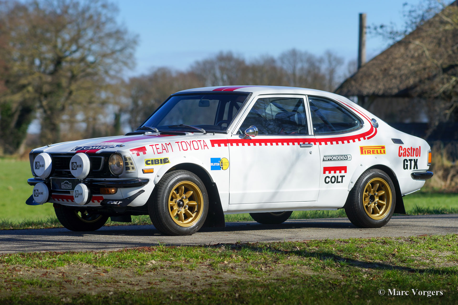 Voiture de rallye Toyota Corolla Coupé, année 1973. Couleur blanche associée à un intérieur de rallye noir. Cette fantastique Toyota Corolla Coupé est une réplique de la voiture de rallye originale Hannu Mikkola - Atso Aho Team Toyota Europe dans laquelle ils ont remporté le rallye des 1000 lacs en 1975 en Finlande ! La voiture fut restaurée et construite dans le passé par un spécialiste finlandais en hommage à Hannu Mikkola (malheureusement Mikkola décédé le 26 février 2021, 78 ans). La voiture a été exposée au musée du Rallye finlandais pendant un an et vous trouverez la signature de Hannu Mikkola sur l'aile avant gauche. La voiture est immatriculée aux Pays-Bas et elle est accompagnée de l'histoire et de trois magazines automobiles. Le magazine 1975 parle de la voiture d'origine Mikkola et les deux autres magazines automobiles, un Finlandais et un Néerlandais, ont des articles sur la réplique présentée. Le manuel du propriétaire original extrêmement rare est également présent. Cette impressionnante voiture de rallye Toyota Corolla est une reconstitution fidèle de la voiture de rallye d'origine. L'extérieur montre tous les détails et autocollants corrects qui ont été parfaitement recréés. La voiture est en excellent état et roule et pilote parfaitement. La voiture de rallye original était équipée d’un moteur Toyota 151E-16 Twin Cam ‘Levin’ de 195 ch. Cette voiture est propulsée par un moteur Toyota Twin Cam 2T-G comparable de la même période équipé de deux carburateurs Dell’Orto à double starter. Cette magnifique Toyota Corolla Coupé est une excellente proposition pour le collectionneur Toyota ou la personne qui veut participer à des épreuves de rallye historiques avec une voiture incroyablement spéciale et rarement vue !