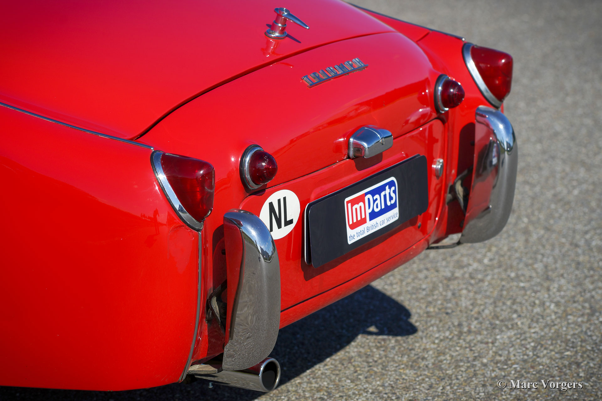 In the year 1957 the Triumph TR3a was presented. Again Triumph changed the grille (wider, covering the entire width of the car). Also the headlamps were placed a little backwards and door handles were fitted. Very short after the introduction of the TR 3a the Triumph TR 3b was introduced, the only change was the larger cylinder capacity of the engine.