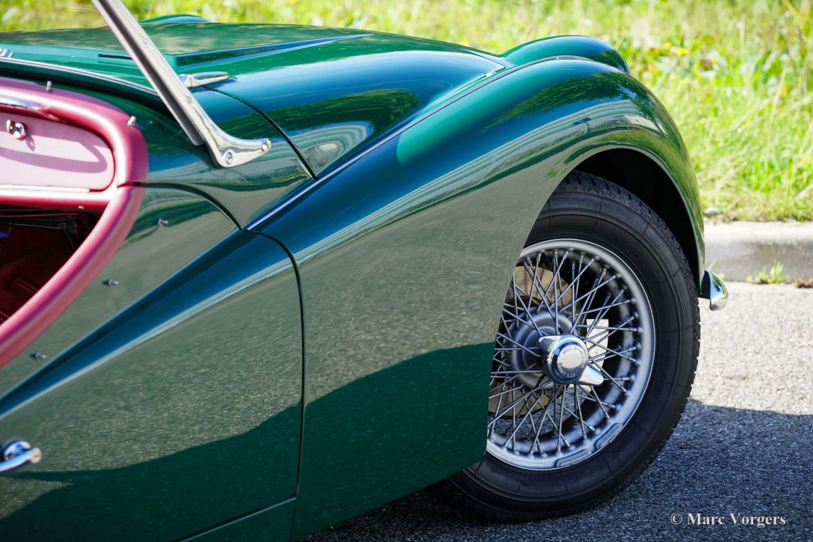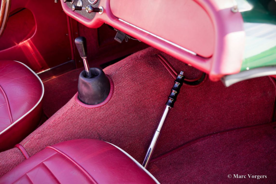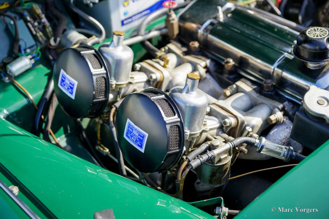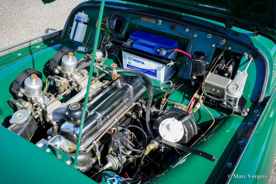 The Triumph TR 3 is a no nonsense sports car; very robust, simple and reliable, a true British sports car all over. The TR 3 was the first production car, off factory, equipped with disc brakes on the front-wheels. The engine was a Standard Vanguard based, cast-iron, long stroke, in-line four cylinder with a displacement of 1991cc. The TR 3 engine was equipped with two carburettors giving a power-output of almost 100 bhp.