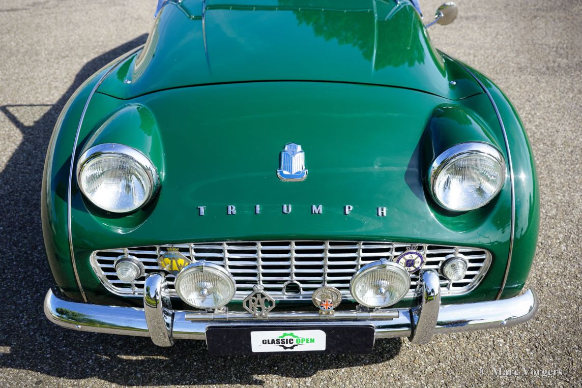 In the year 1957 the Triumph TR3a was presented. Again Triumph changed the grille (wider, covering the entire width of the car). Also the headlamps were placed a little backwards and door handles were fitted. Very short after the introduction of the TR 3a the Triumph TR 3b was introduced, the only change was the larger cylinder capacity of the engine.