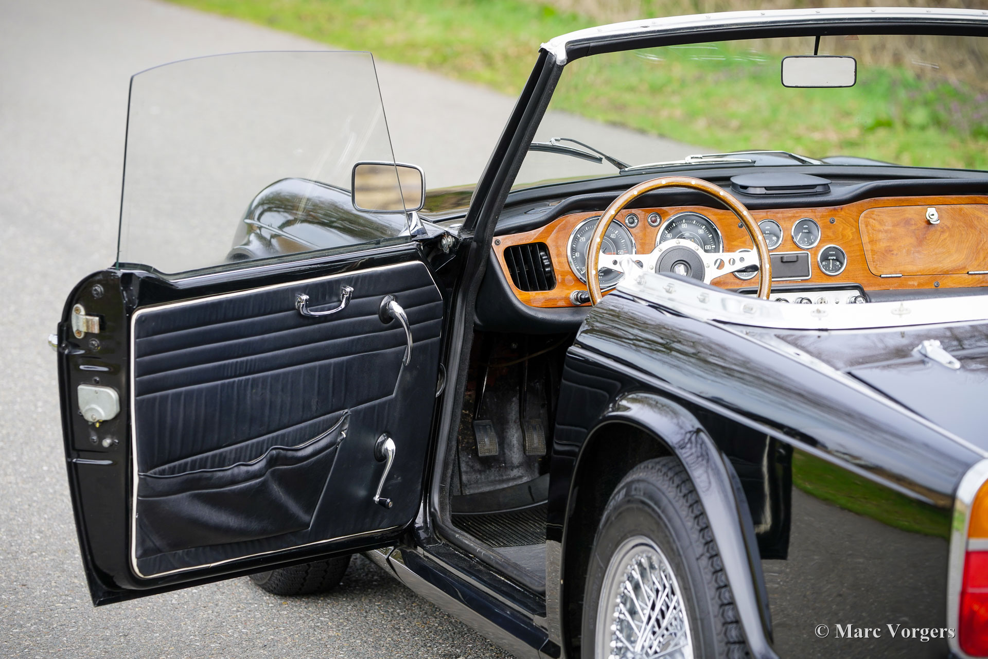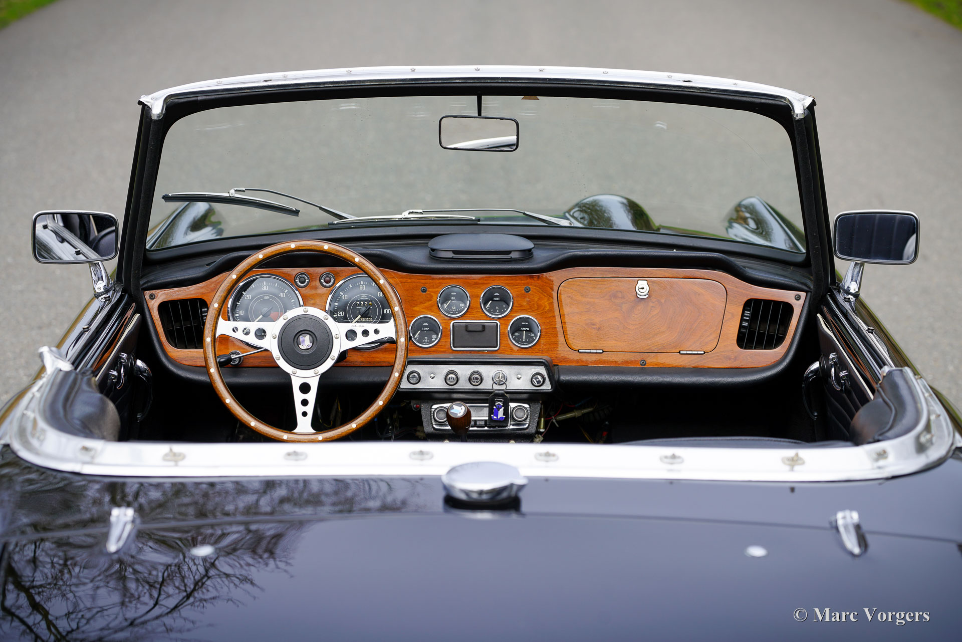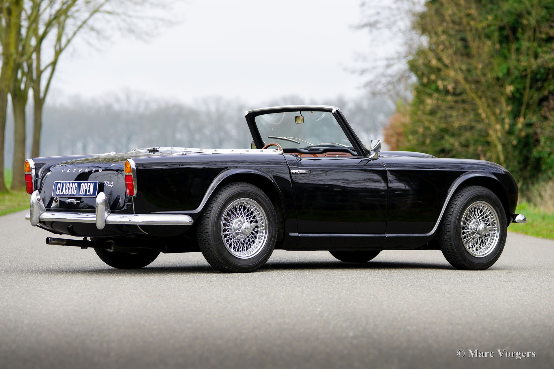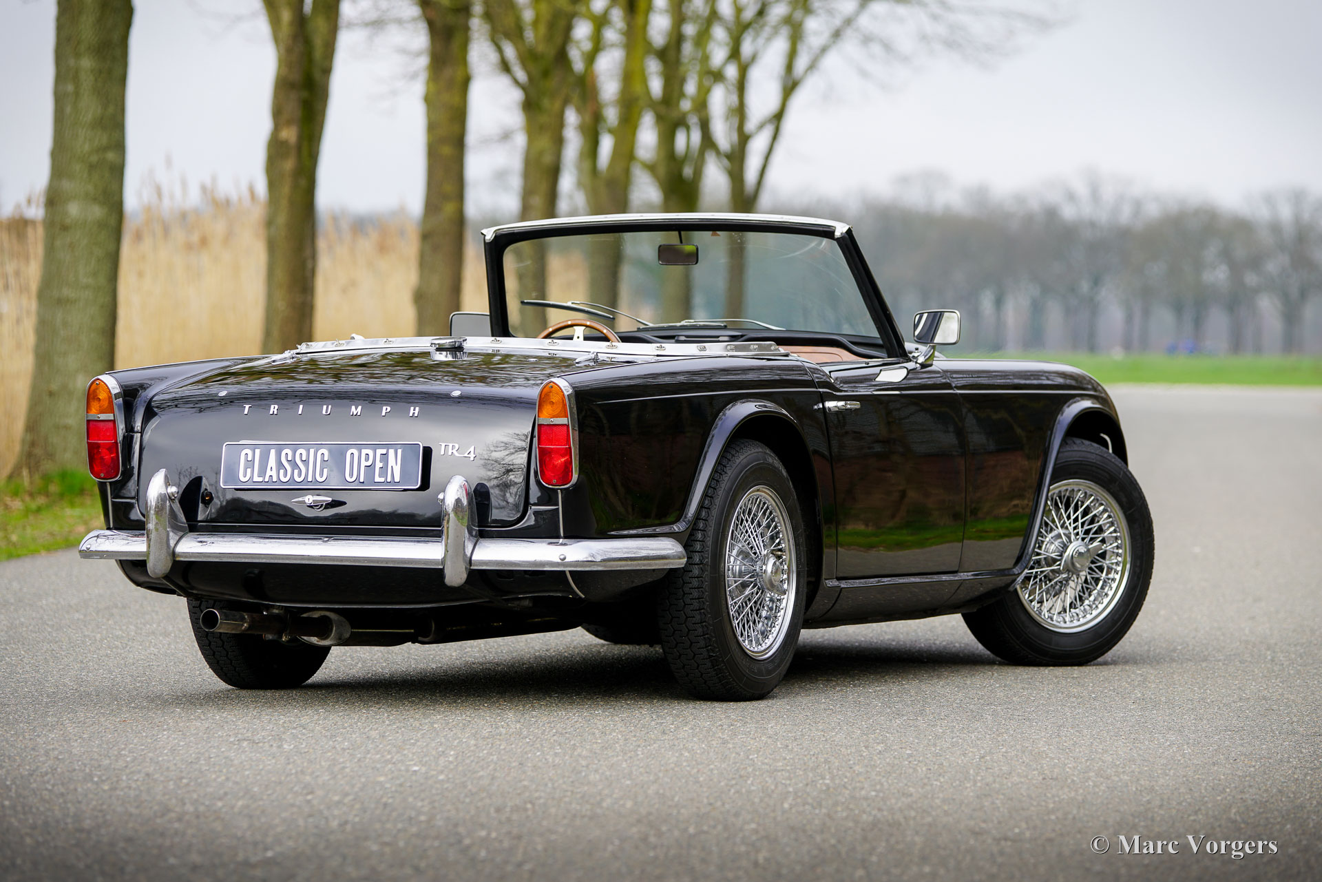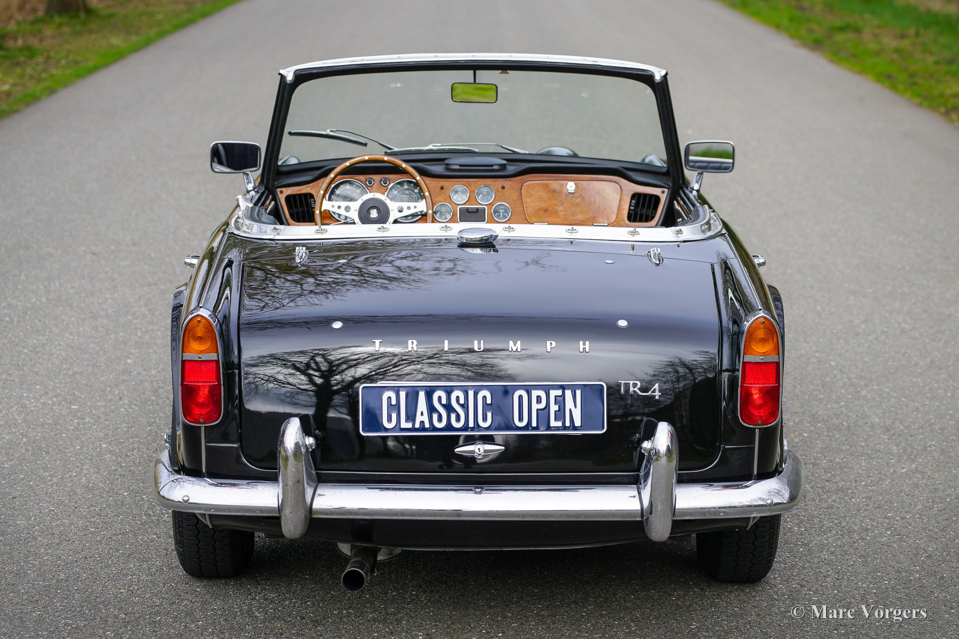 The Triumph TR 4 is a real British roadster; pure and honest. The TR 4 is built with a sturdy separate chassis with independent front suspension and a live rear axle. (IRS versions are equipped with independent rear suspension). The TR4 is equipped with disc brakes at the front and drum brakes at the rear. The bonnet shows a beautiful power bulge which gives space for the two carburettors. The Triumph TR 4 has a very beautiful wooden dashboard that is clear and functional and is equipped with large Smiths clocks. For the TR 4 a very nice "Surrey-top" is available as accessory. The Triumph "Surrey top inspired Porsche to built the Porsche "Targa" versions. The Triumph TR4 is as all the TR versions a real drivers car.