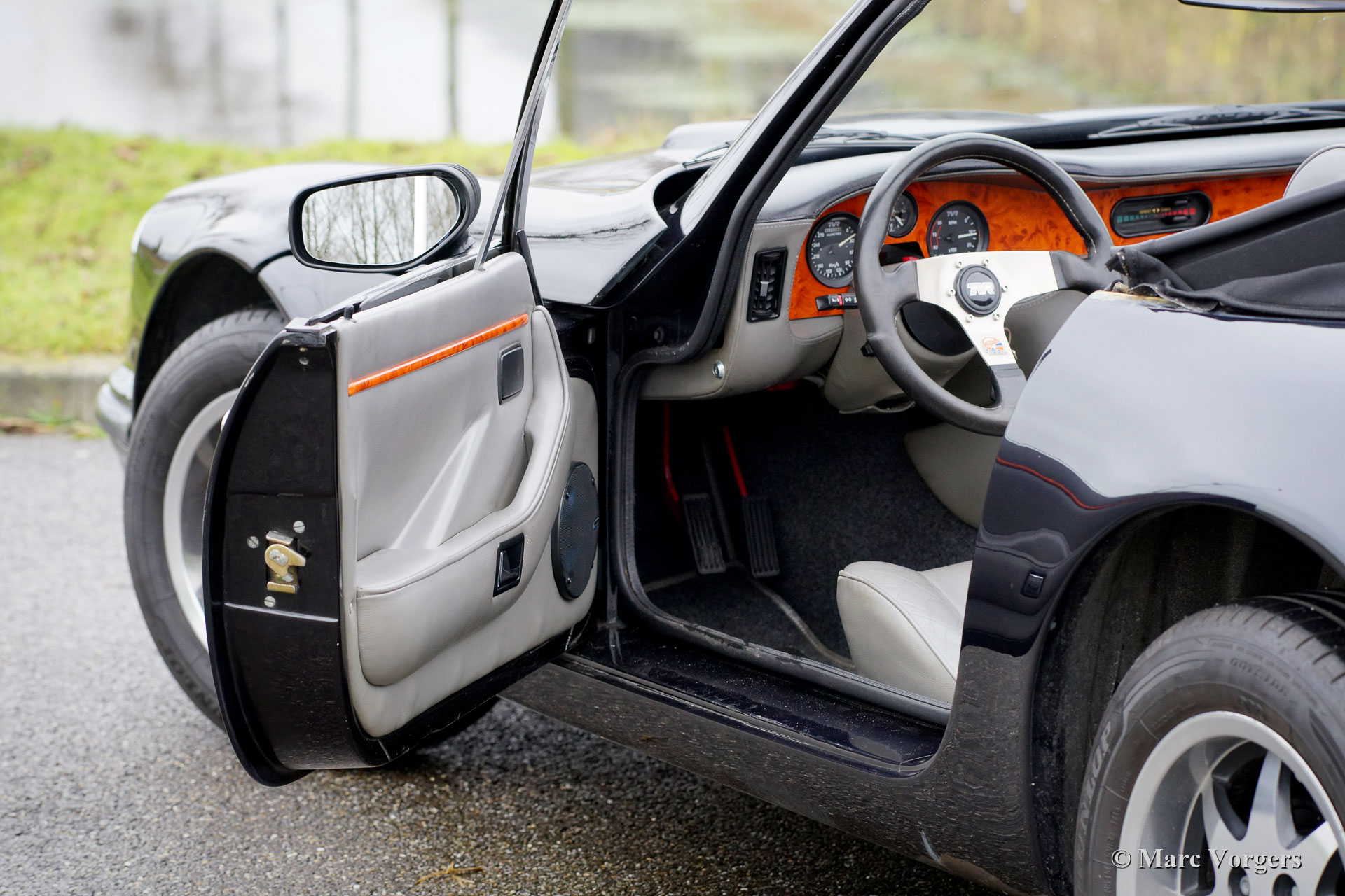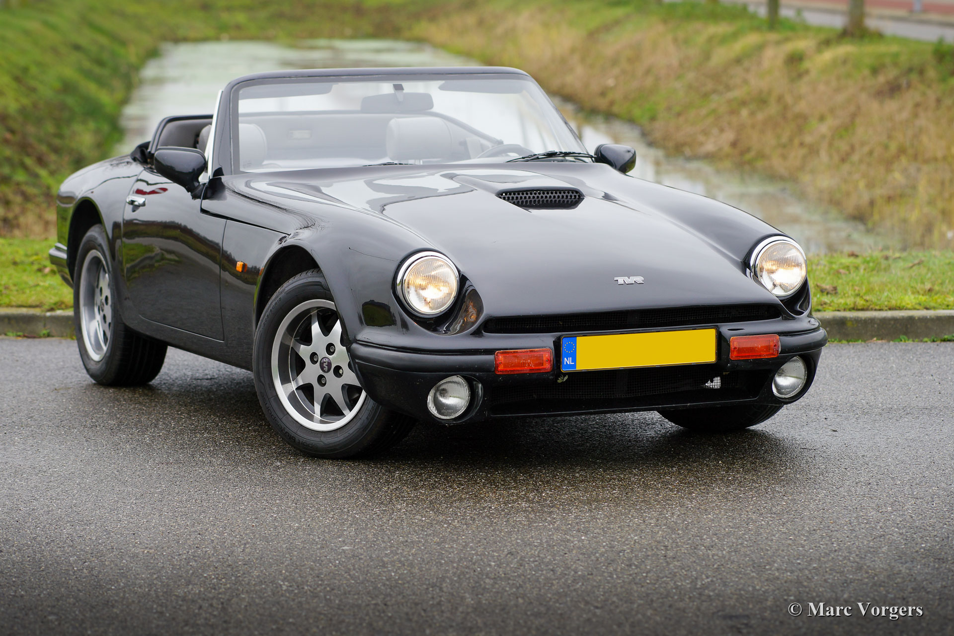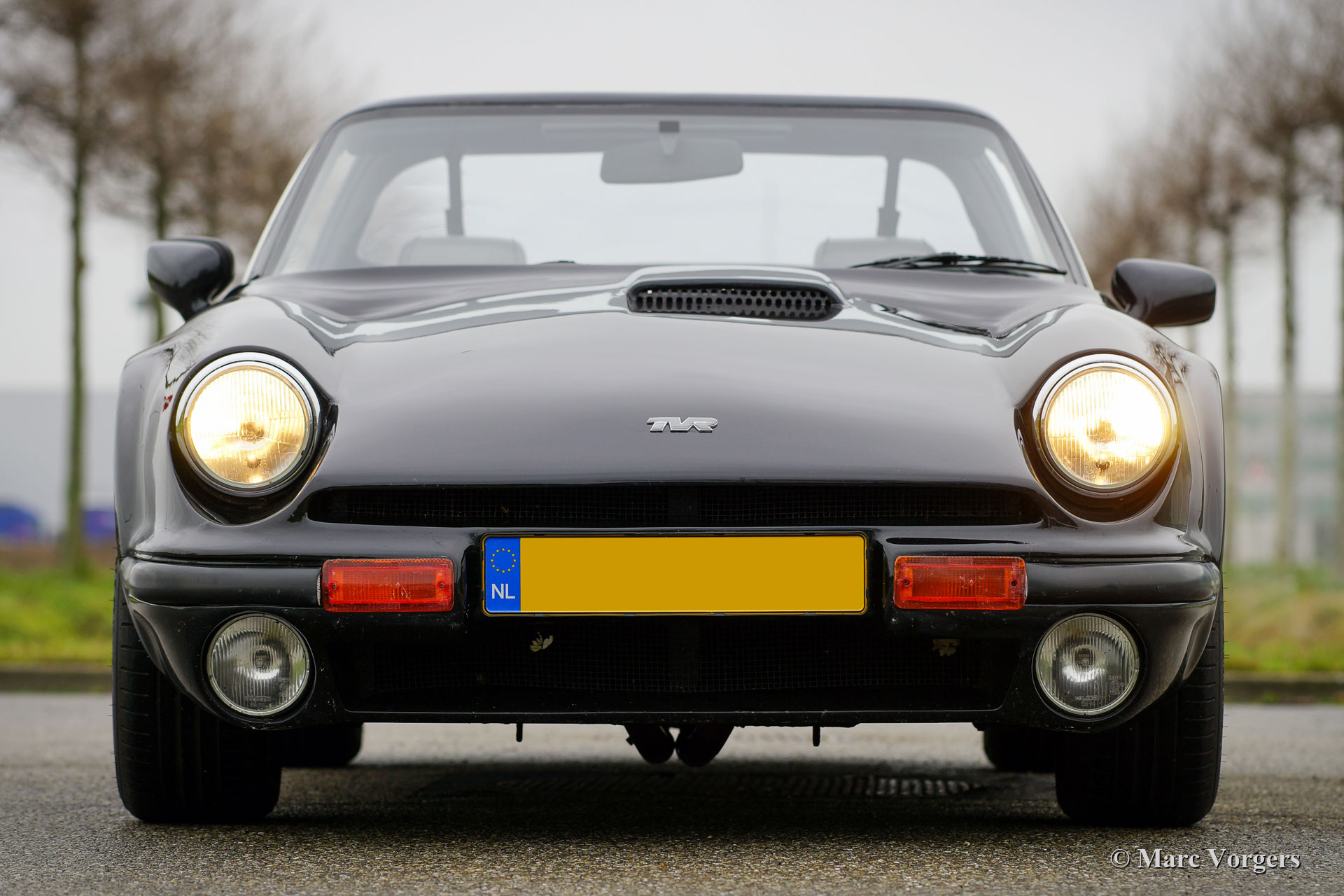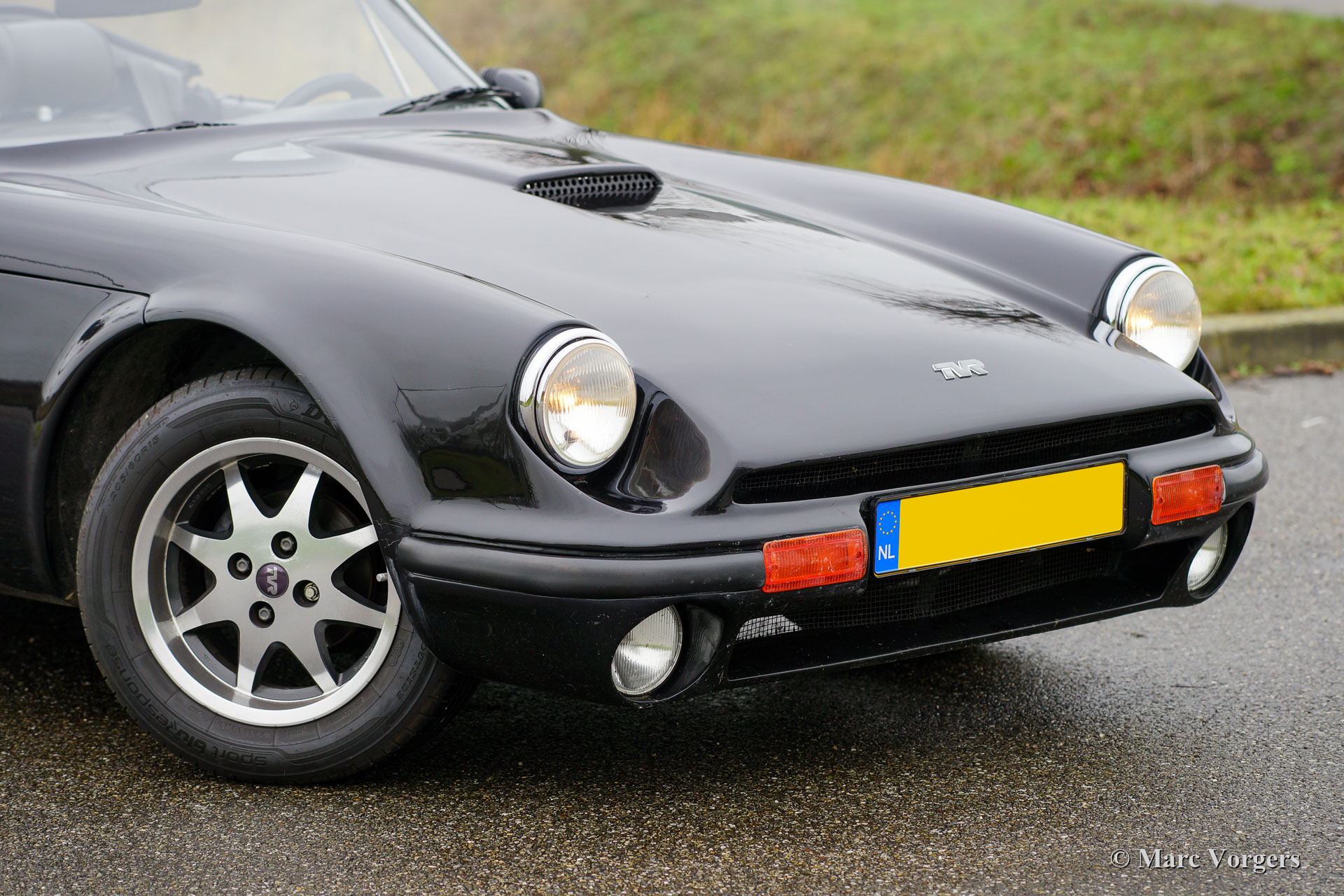 TVR S3, année 1991. Couleur noir combinée avec un intérieur en cuir gris et un toit « Targa » noir. Le TVR S3 est équipé du moteur Ford V6 de 2,9 litres qui délivre une puissance de 170 ch. La puissance est transmise aux roues arrière via une boîte de vitesses manuelle à 5 vitesses. Le son du moteur est grisant et addictif ! Seuls 112 exemplaires de ce modèle ont été construits de 1989 à 1993. La TVR a parcouru 116 000 kilomètres depuis la nouvelle et la voiture est en très bon état. Une caractéristique spéciale du TVR est le toit « Targa » avec la partie arrière rabattable. Le panneau de toit peut être rangé dans le coffre. Les voitures TVR sont entièrement fabriquées à la main et l'intérieur entièrement en cuir offre un grand espace. L'expérience de conduite à toit ouvert est superbe !