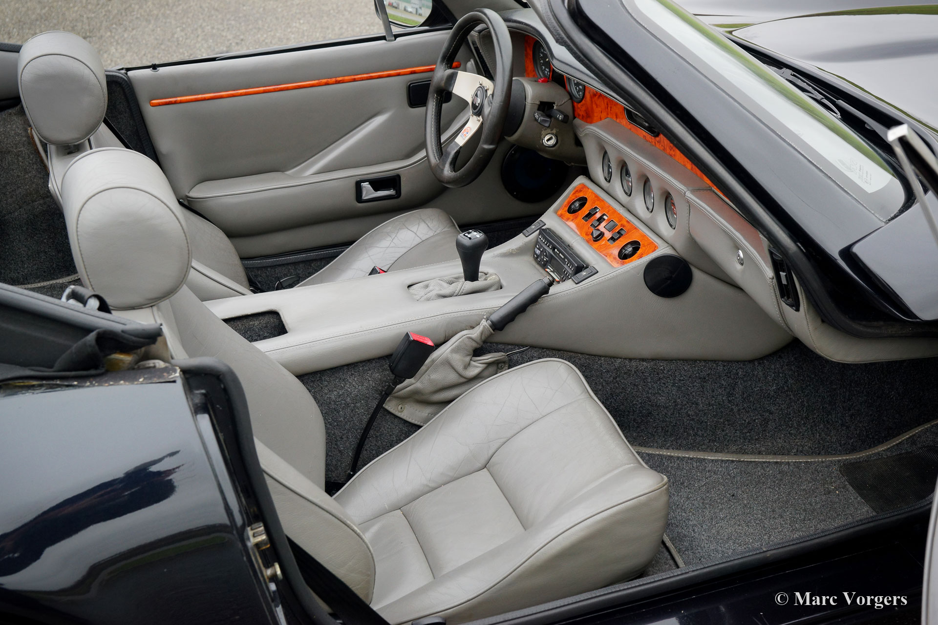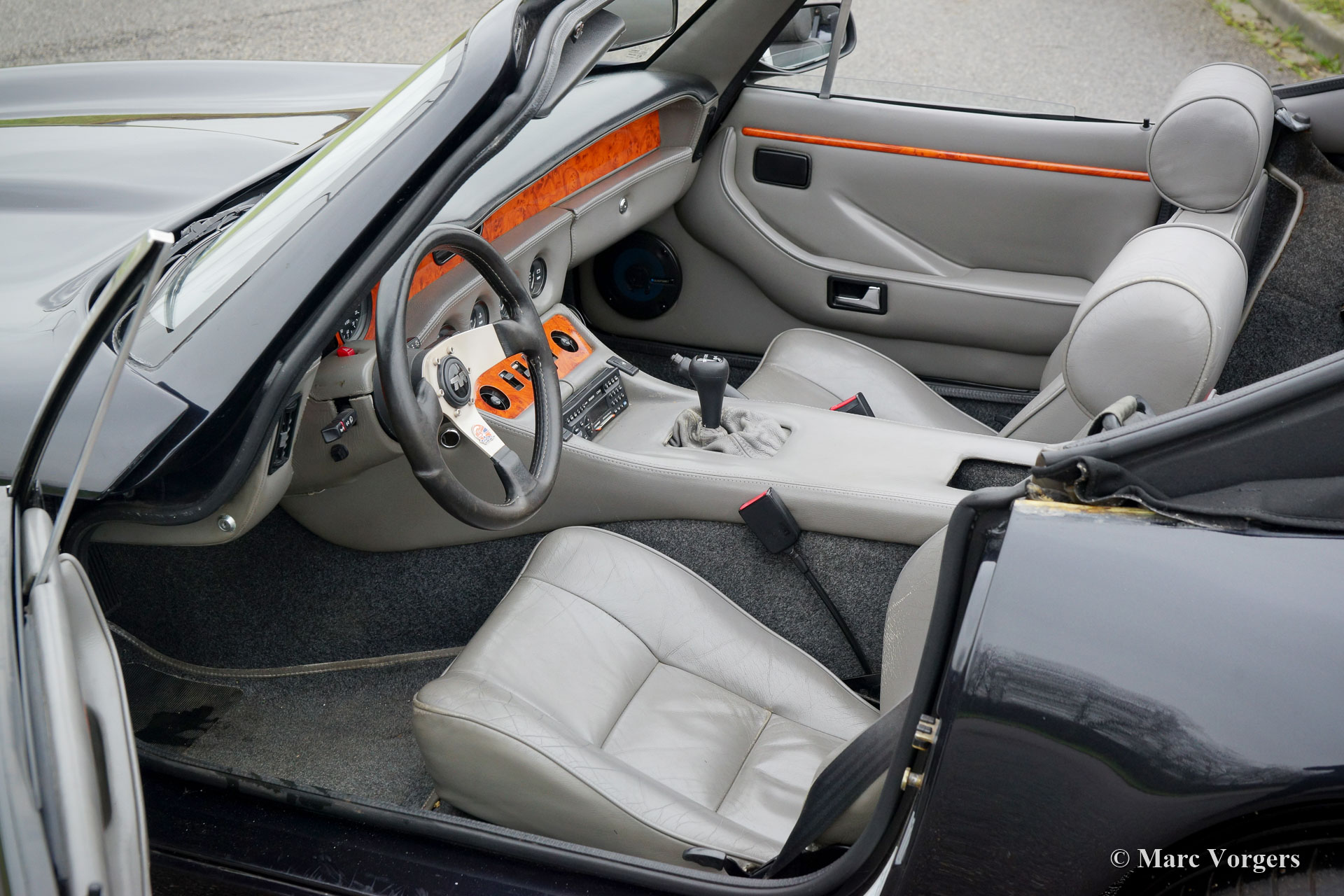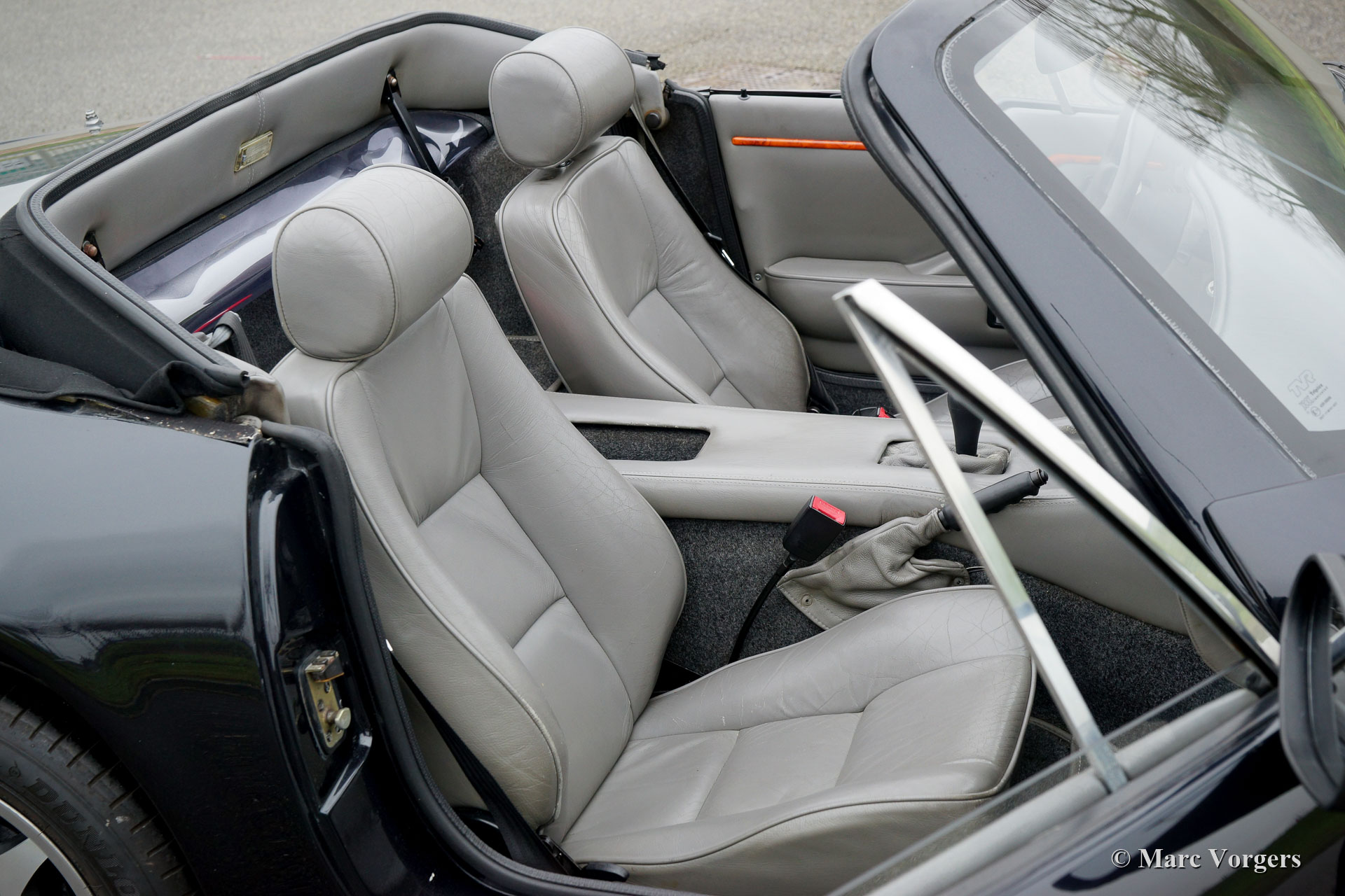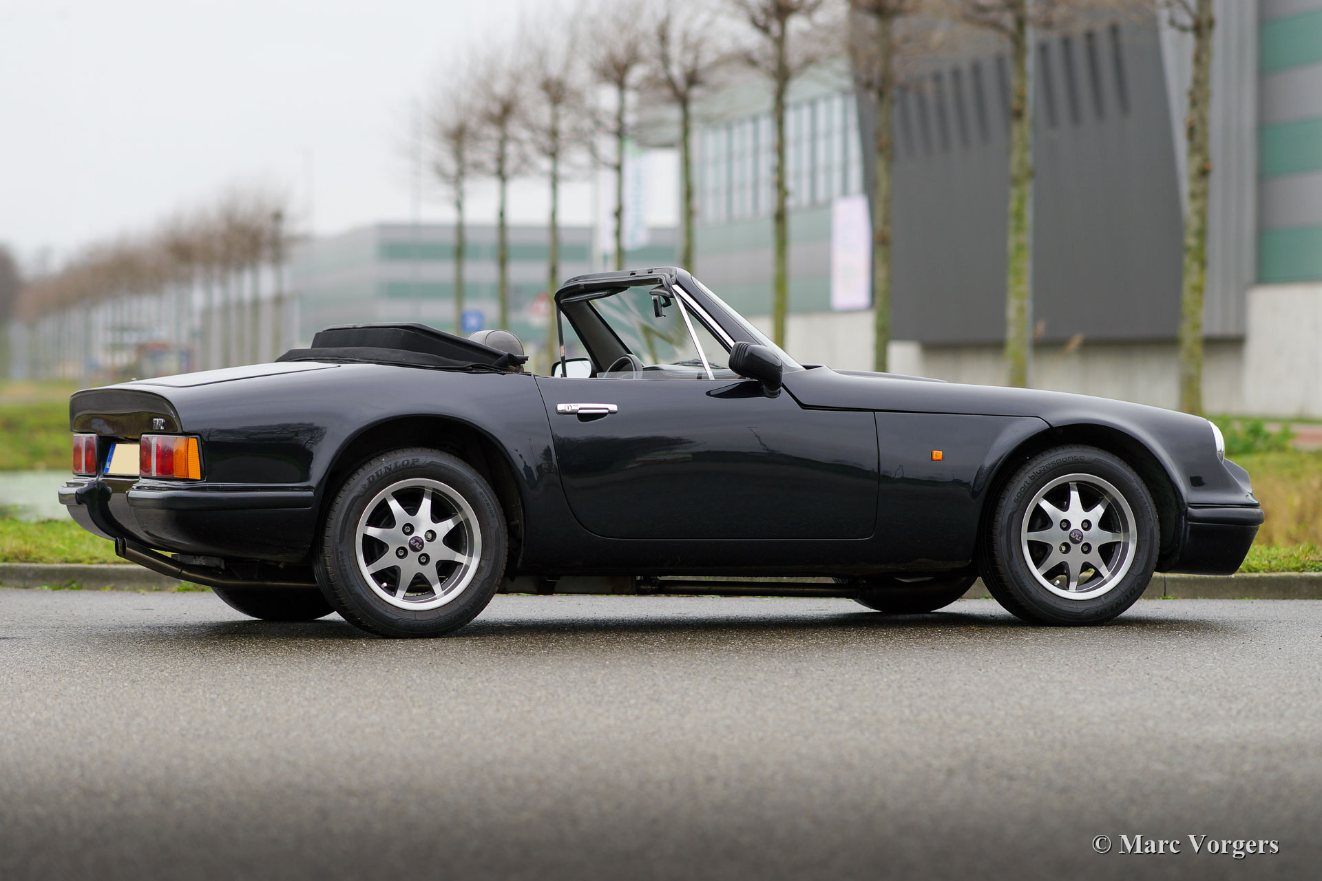 TVR S3, année 1991. Couleur noir combinée avec un intérieur en cuir gris et un toit « Targa » noir. Le TVR S3 est équipé du moteur Ford V6 de 2,9 litres qui délivre une puissance de 170 ch. La puissance est transmise aux roues arrière via une boîte de vitesses manuelle à 5 vitesses. Le son du moteur est grisant et addictif ! Seuls 112 exemplaires de ce modèle ont été construits de 1989 à 1993. La TVR a parcouru 116 000 kilomètres depuis la nouvelle et la voiture est en très bon état. Une caractéristique spéciale du TVR est le toit « Targa » avec la partie arrière rabattable. Le panneau de toit peut être rangé dans le coffre. Les voitures TVR sont entièrement fabriquées à la main et l'intérieur entièrement en cuir offre un grand espace. L'expérience de conduite à toit ouvert est superbe !