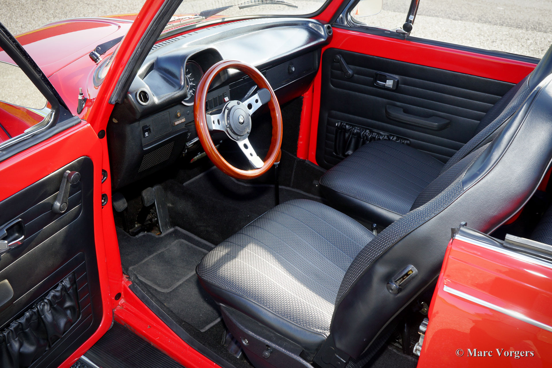 Volkswagen 'Coccinelle' 1303 cabriolet, année 1973. Couleur rouge avec un intérieur en similicuir noir et tapis noir. Capot noir et couvercle de la hotte noir. Cette belle VW ‘Coccinelle’ est en excellent état et la voiture conduit délicieusement ! Le Volkswagen est le cabriolet idéal pour une famille ou pour profiter de l'expérience ouverte avec les amis. Tous les passagers ont des raisons de sourire parce qu'ils sont entraînés dans le confort et, en attendant, ils reçoivent beaucoup de ‘pouces’ des spectateurs ! Cette belle VW ‘Coccinelle’ 1303 dispose d'un moteur plus puissant de 1493 cc qui donne à la voiture cet esprit supplémentaire ! Les jolies roues en alliage donnent également à la voiture une apparence plus sportive ; C'est un ‘Evergreen’ classique !