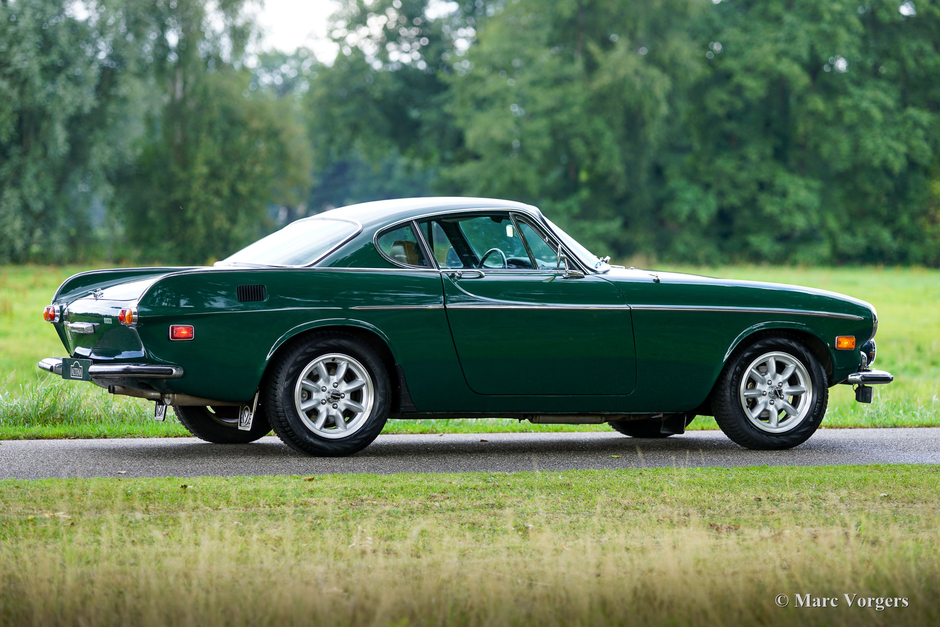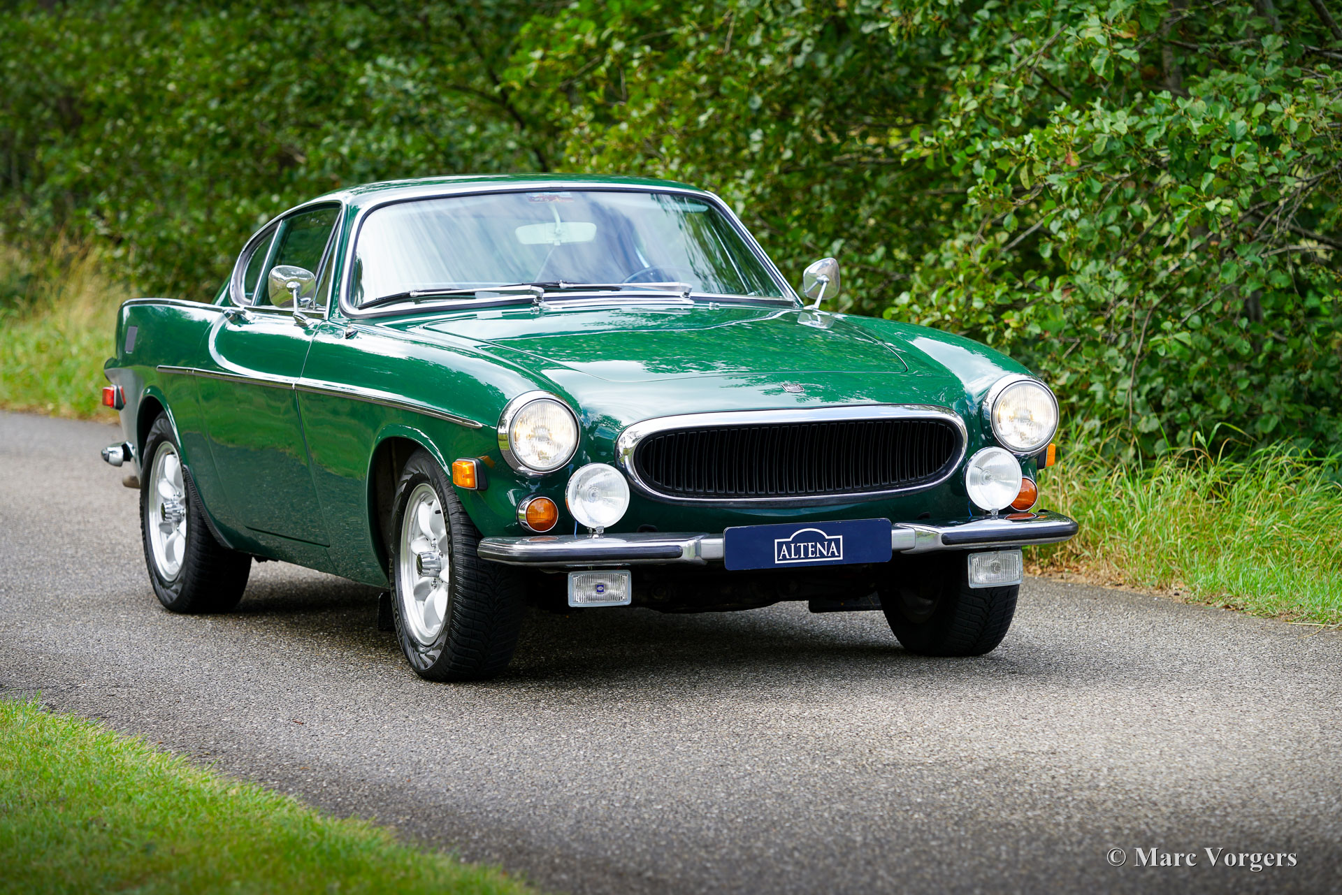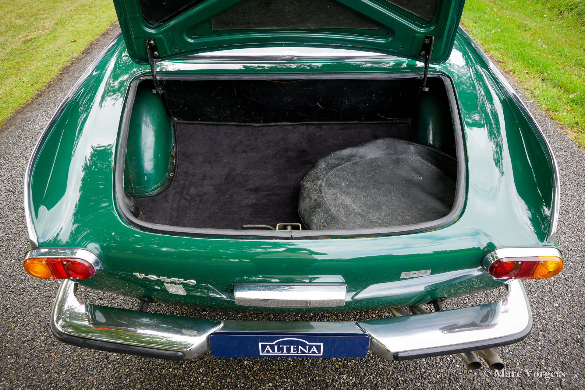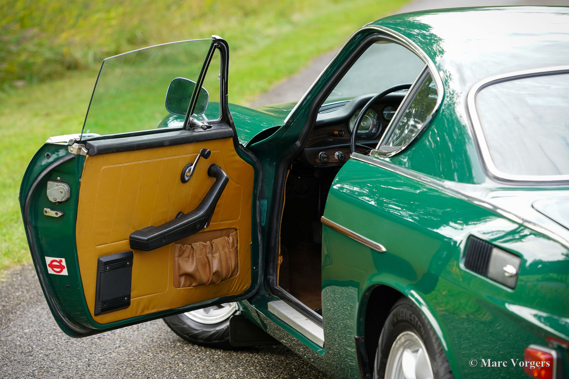Volvo 1800 E, année 1972. Numéro de châssis 1826354038889, numéro de moteur 52821496. Carrosserie vert foncé, intérieur similicuir beige (brun pâle) et moquette marronne. Cette magnifique Volvo 1800 E fut vendue neuve aux États-Unis ; la carte grise américaine d'origine est toujours présente. Cette magnifique 1800 E est équipée de l'injection d’essence et d'un overdrive ! Importée aux Pays-Bas en 2007, elle est depuis chérie par un propriétaire attentionné. Un historique et un dossier d'entretien complets offrent un aperçu chronologique des entretiens, réparations et améliorations effectués au fil des ans. Depuis 2007, un investissement de 38 000 € fut réalisé pour la maintenir à jour et effectuer des améliorations. Elle est équipée de superbes jantes alliage Panasport Racing chaussées de pneus Vredestein Snowtrac 3, d'un totalisateur journalier Brantz International 3 Pro, ainsi que de phares et de feux antibrouillard supplémentaires à l'avant. Système radio/CD Pioneer 4 x 50 watts, ceintures de sécurité à l'avant et à l'arrière, et coupe-batterie. Le volant d'origine à 3 branches est toujours installé ; un volant sport est inclus séparément. Cette magnifique Volvo 1800 E est en très bon état, présentant de légères traces d'usure et de vieillissement. Elle a été entretenue chez des restaurateurs renommés comme Piet Mozes à Heerenveen jusqu'en 2015, et chez Altena Classic Service jusqu'à récemment. C'est une voiture agréable à conduire, en très bon état, idéale pour de nombreux trajets (hebdomadaires), des escapades le week-end, et même pour des rallyes historiques ou des épreuves de régularité plus exigeantes !