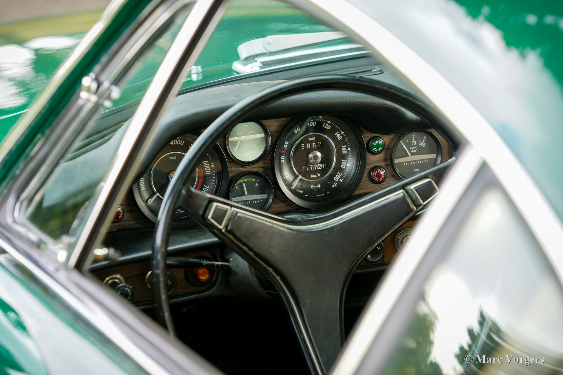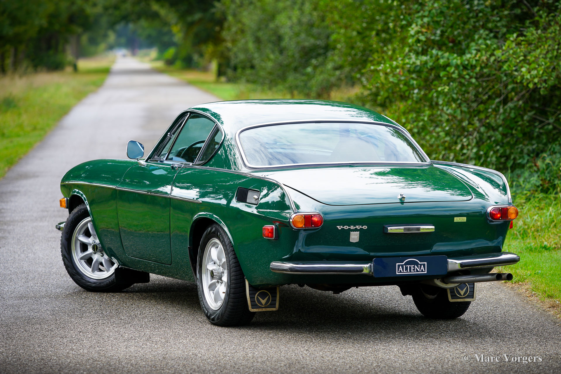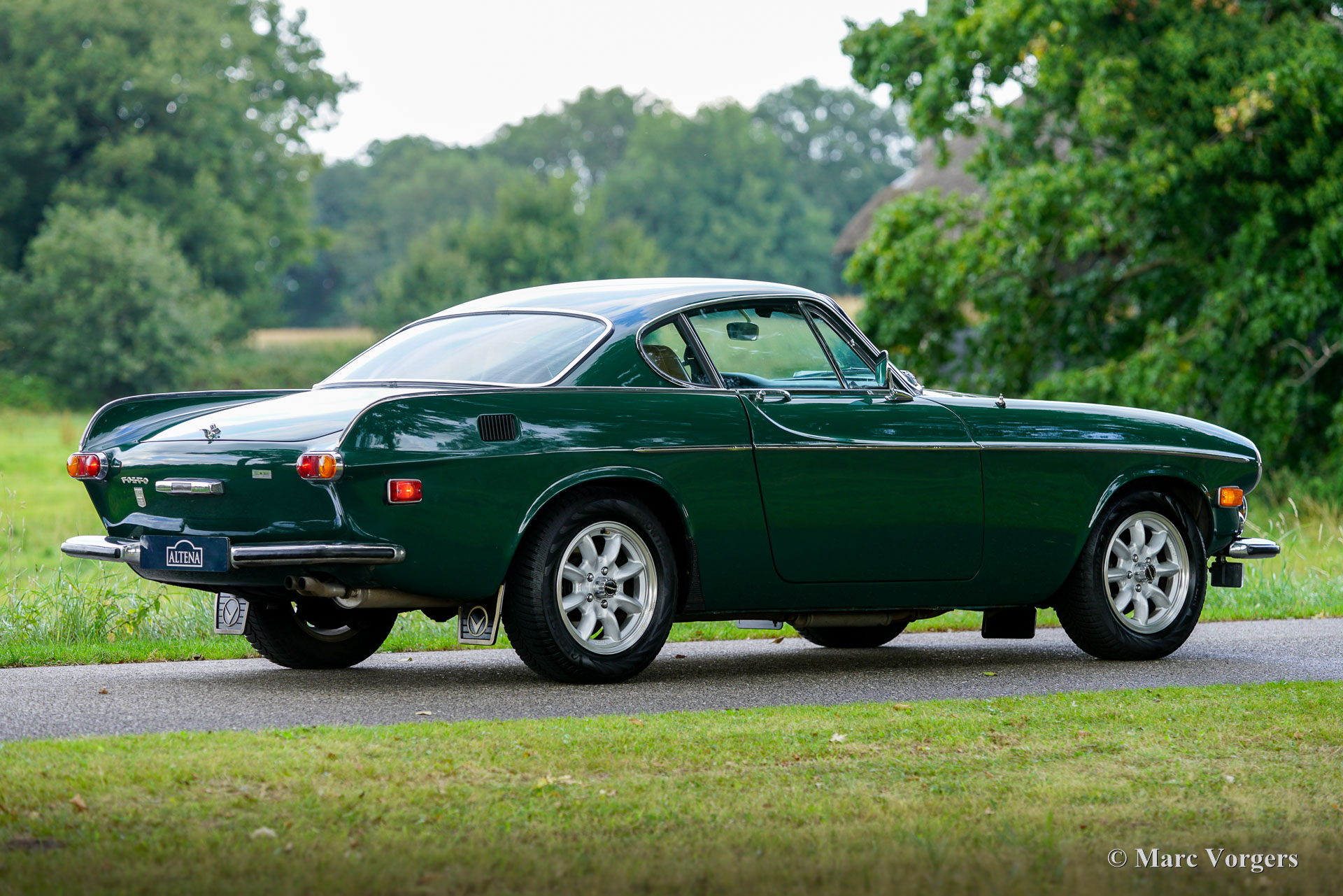 Volvo 1800 E, année 1972. Numéro de châssis 1826354038889, numéro de moteur 52821496. Carrosserie vert foncé, intérieur similicuir beige (brun pâle) et moquette marronne. Cette magnifique Volvo 1800 E fut vendue neuve aux États-Unis ; la carte grise américaine d'origine est toujours présente. Cette magnifique 1800 E est équipée de l'injection d’essence et d'un overdrive ! Importée aux Pays-Bas en 2007, elle est depuis chérie par un propriétaire attentionné. Un historique et un dossier d'entretien complets offrent un aperçu chronologique des entretiens, réparations et améliorations effectués au fil des ans. Depuis 2007, un investissement de 38 000 € fut réalisé pour la maintenir à jour et effectuer des améliorations. Elle est équipée de superbes jantes alliage Panasport Racing chaussées de pneus Vredestein Snowtrac 3, d'un totalisateur journalier Brantz International 3 Pro, ainsi que de phares et de feux antibrouillard supplémentaires à l'avant. Système radio/CD Pioneer 4 x 50 watts, ceintures de sécurité à l'avant et à l'arrière, et coupe-batterie. Le volant d'origine à 3 branches est toujours installé ; un volant sport est inclus séparément. Cette magnifique Volvo 1800 E est en très bon état, présentant de légères traces d'usure et de vieillissement. Elle a été entretenue chez des restaurateurs renommés comme Piet Mozes à Heerenveen jusqu'en 2015, et chez Altena Classic Service jusqu'à récemment. C'est une voiture agréable à conduire, en très bon état, idéale pour de nombreux trajets (hebdomadaires), des escapades le week-end, et même pour des rallyes historiques ou des épreuves de régularité plus exigeantes !