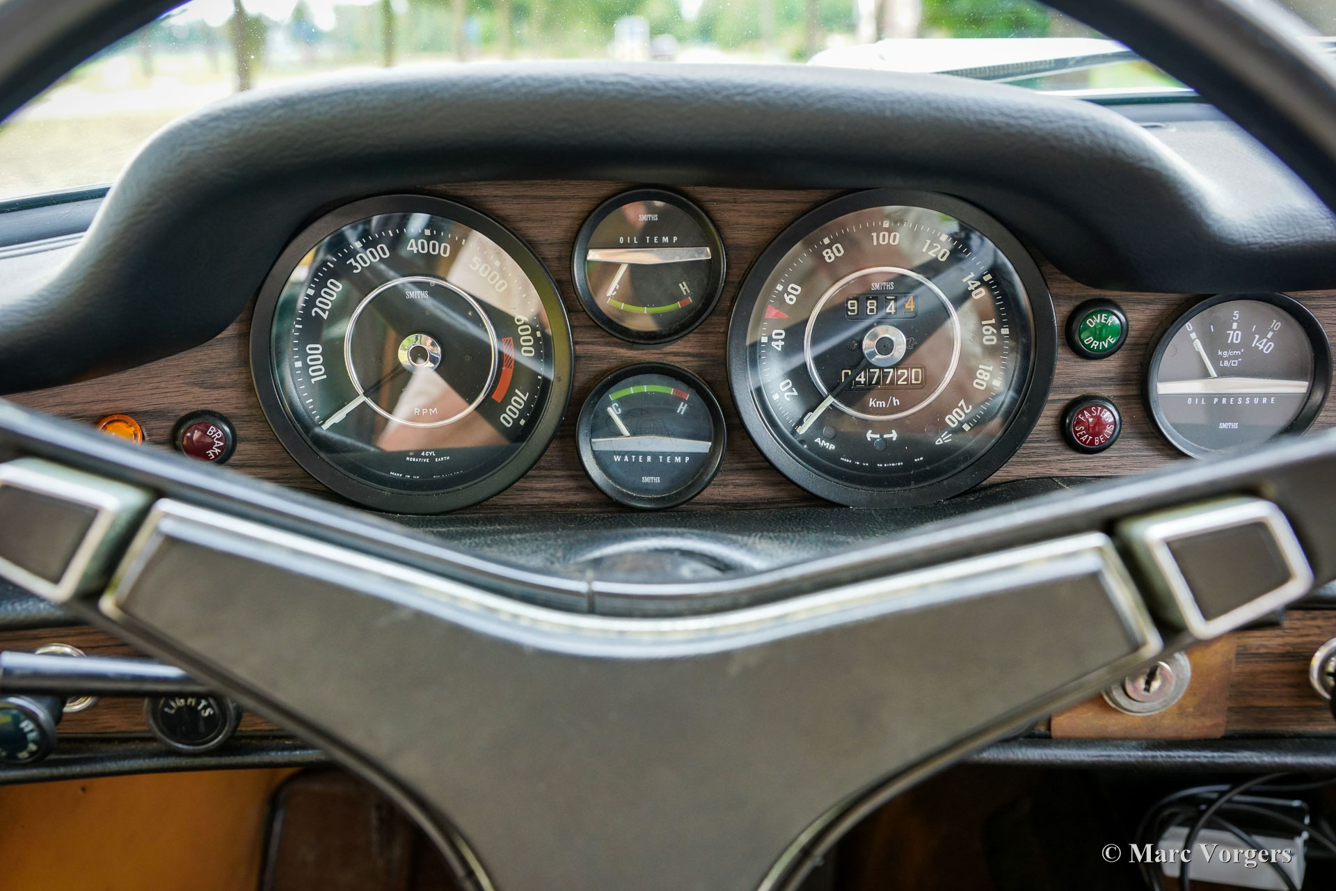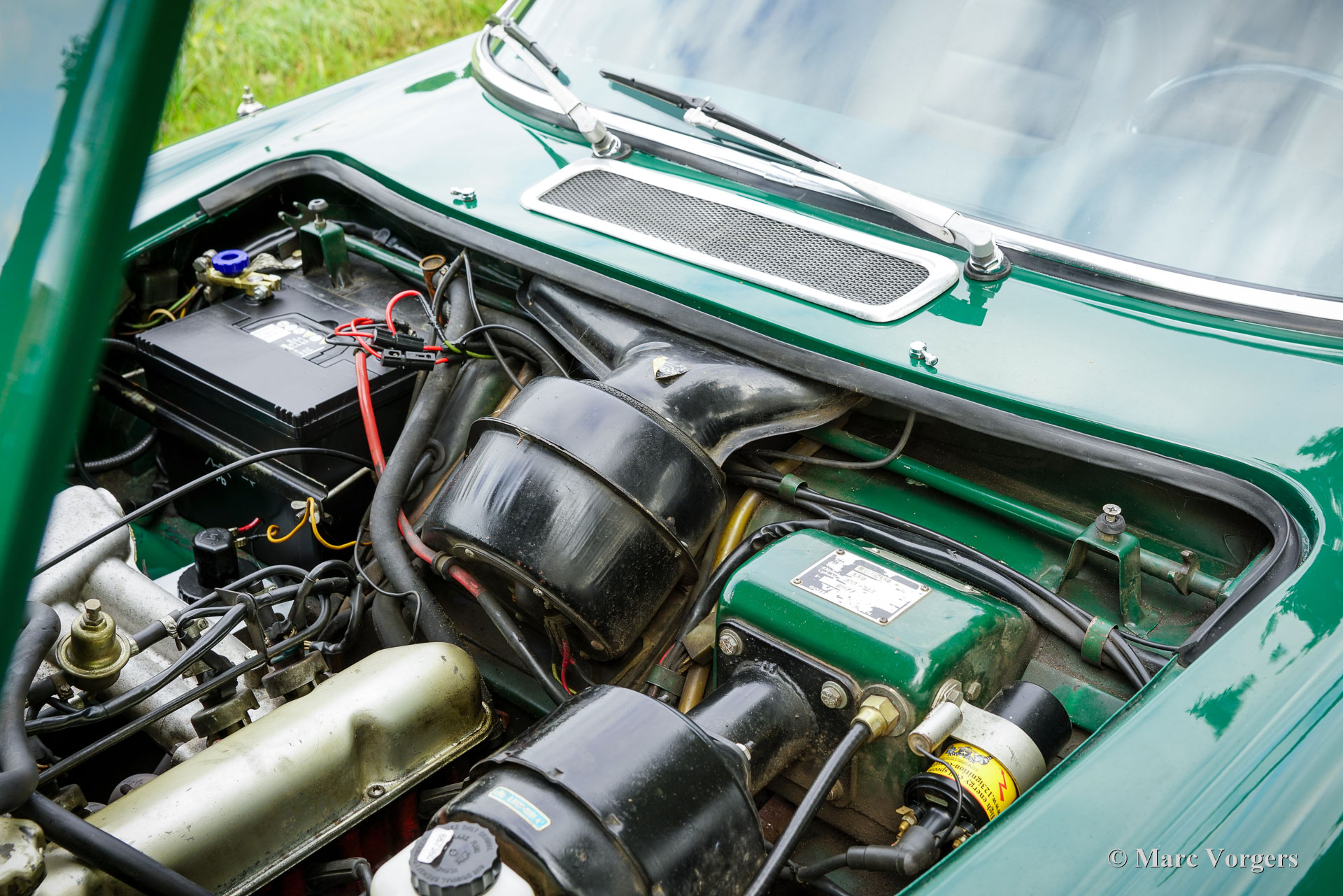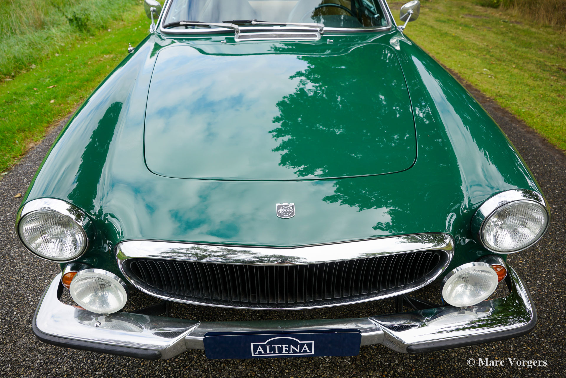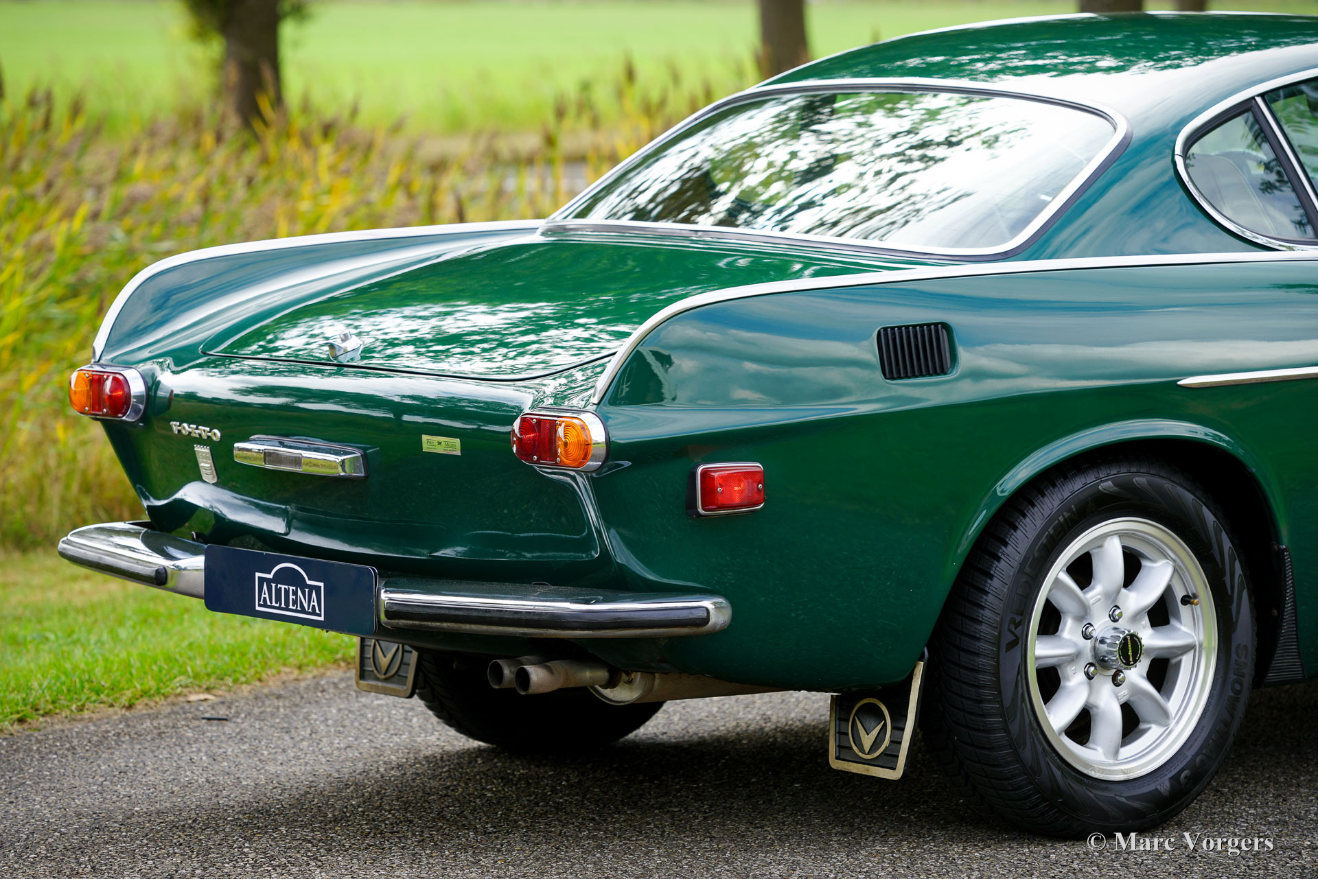 Volvo 1800 E, année 1972. Numéro de châssis 1826354038889, numéro de moteur 52821496. Carrosserie vert foncé, intérieur similicuir beige (brun pâle) et moquette marronne. Cette magnifique Volvo 1800 E fut vendue neuve aux États-Unis ; la carte grise américaine d'origine est toujours présente. Cette magnifique 1800 E est équipée de l'injection d’essence et d'un overdrive ! Importée aux Pays-Bas en 2007, elle est depuis chérie par un propriétaire attentionné. Un historique et un dossier d'entretien complets offrent un aperçu chronologique des entretiens, réparations et améliorations effectués au fil des ans. Depuis 2007, un investissement de 38 000 € fut réalisé pour la maintenir à jour et effectuer des améliorations. Elle est équipée de superbes jantes alliage Panasport Racing chaussées de pneus Vredestein Snowtrac 3, d'un totalisateur journalier Brantz International 3 Pro, ainsi que de phares et de feux antibrouillard supplémentaires à l'avant. Système radio/CD Pioneer 4 x 50 watts, ceintures de sécurité à l'avant et à l'arrière, et coupe-batterie. Le volant d'origine à 3 branches est toujours installé ; un volant sport est inclus séparément. Cette magnifique Volvo 1800 E est en très bon état, présentant de légères traces d'usure et de vieillissement. Elle a été entretenue chez des restaurateurs renommés comme Piet Mozes à Heerenveen jusqu'en 2015, et chez Altena Classic Service jusqu'à récemment. C'est une voiture agréable à conduire, en très bon état, idéale pour de nombreux trajets (hebdomadaires), des escapades le week-end, et même pour des rallyes historiques ou des épreuves de régularité plus exigeantes !