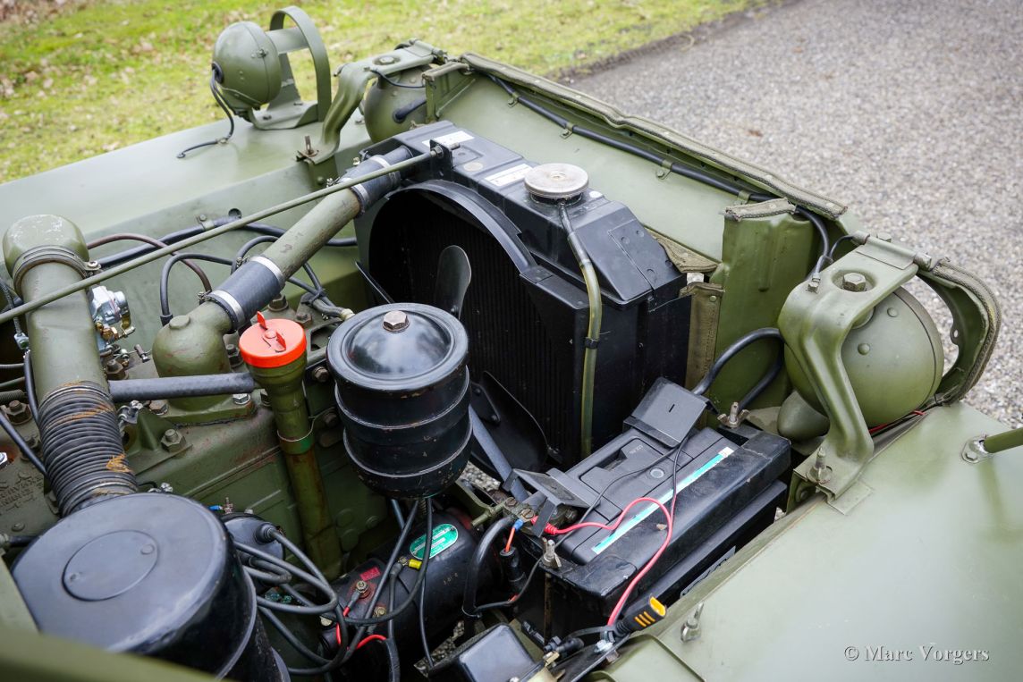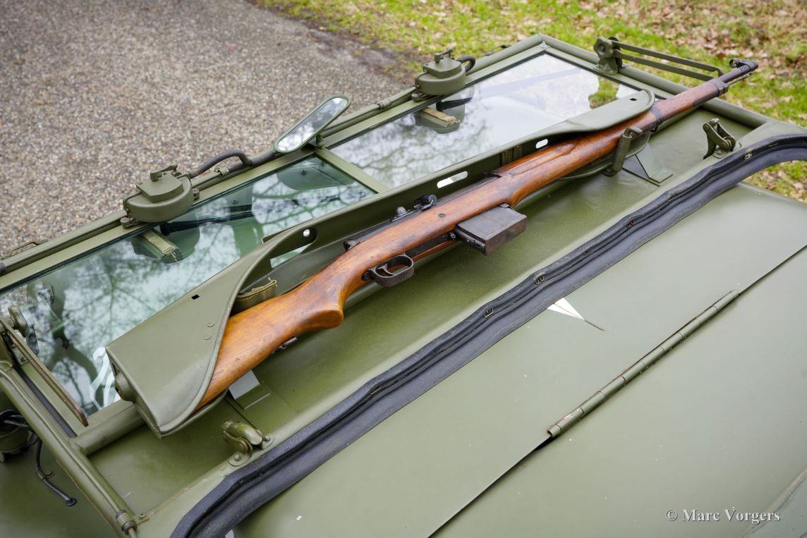 Jeep Willys MB, année 1944. Couleur vert armée, sellerie en toile vert clair/beige et moquette noire amovible. Ce modèle original de 1944 est en excellent état et complet ! Il présente des détails exceptionnels (dont un fusil en position réglementaire) et roule parfaitement ! Importée de Californie en Allemagne en 2002, cette Jeep a fait l'objet d'une restauration complète en Allemagne. L'année dernière, elle fut révisée et remise aux normes par Altena Classic Service. Le coût total de cette travailles s'est élevé à 7 500 €. Les papiers nécessaires à son immatriculation sont fournis. Un exemplaire en parfait état !